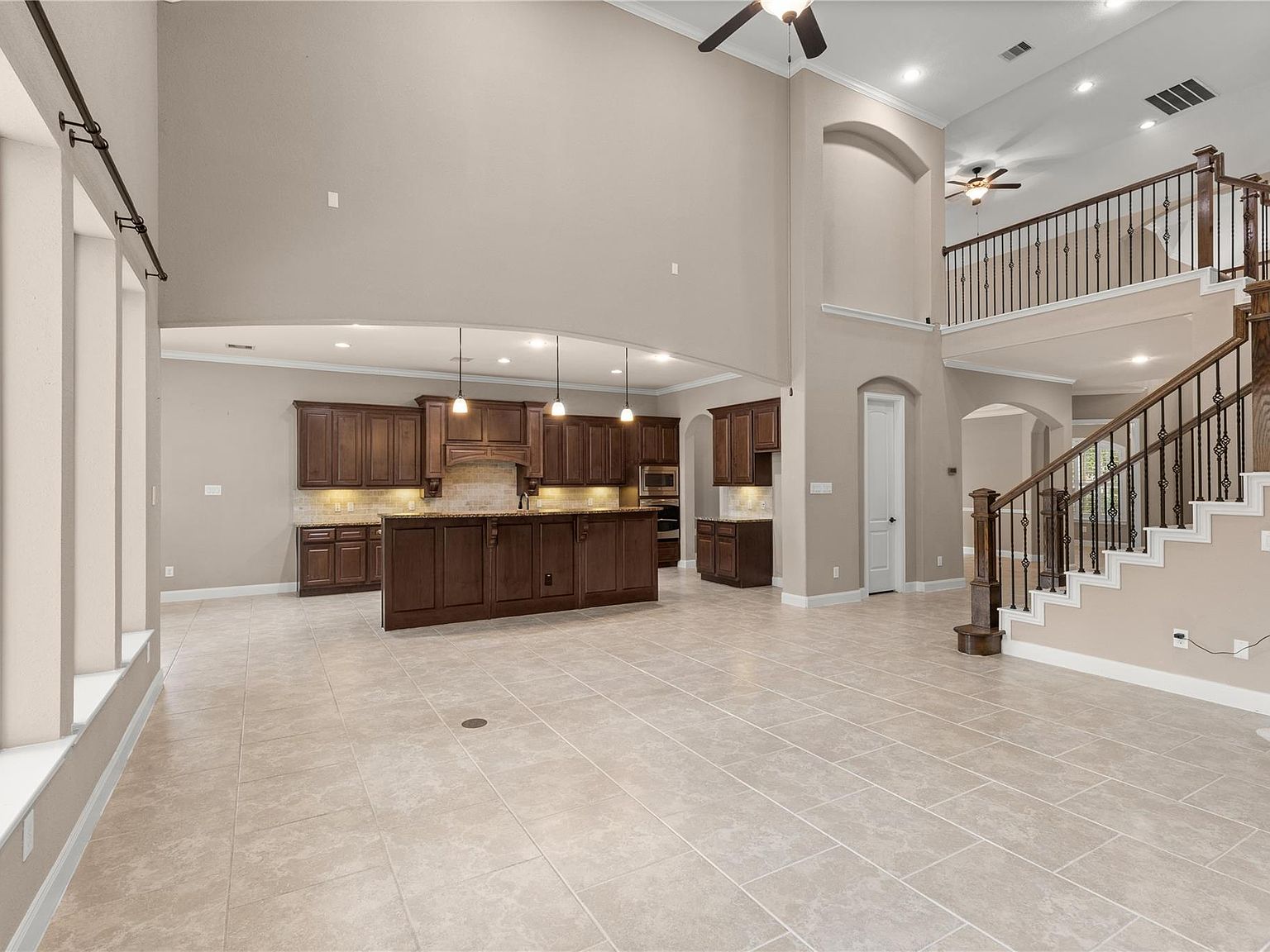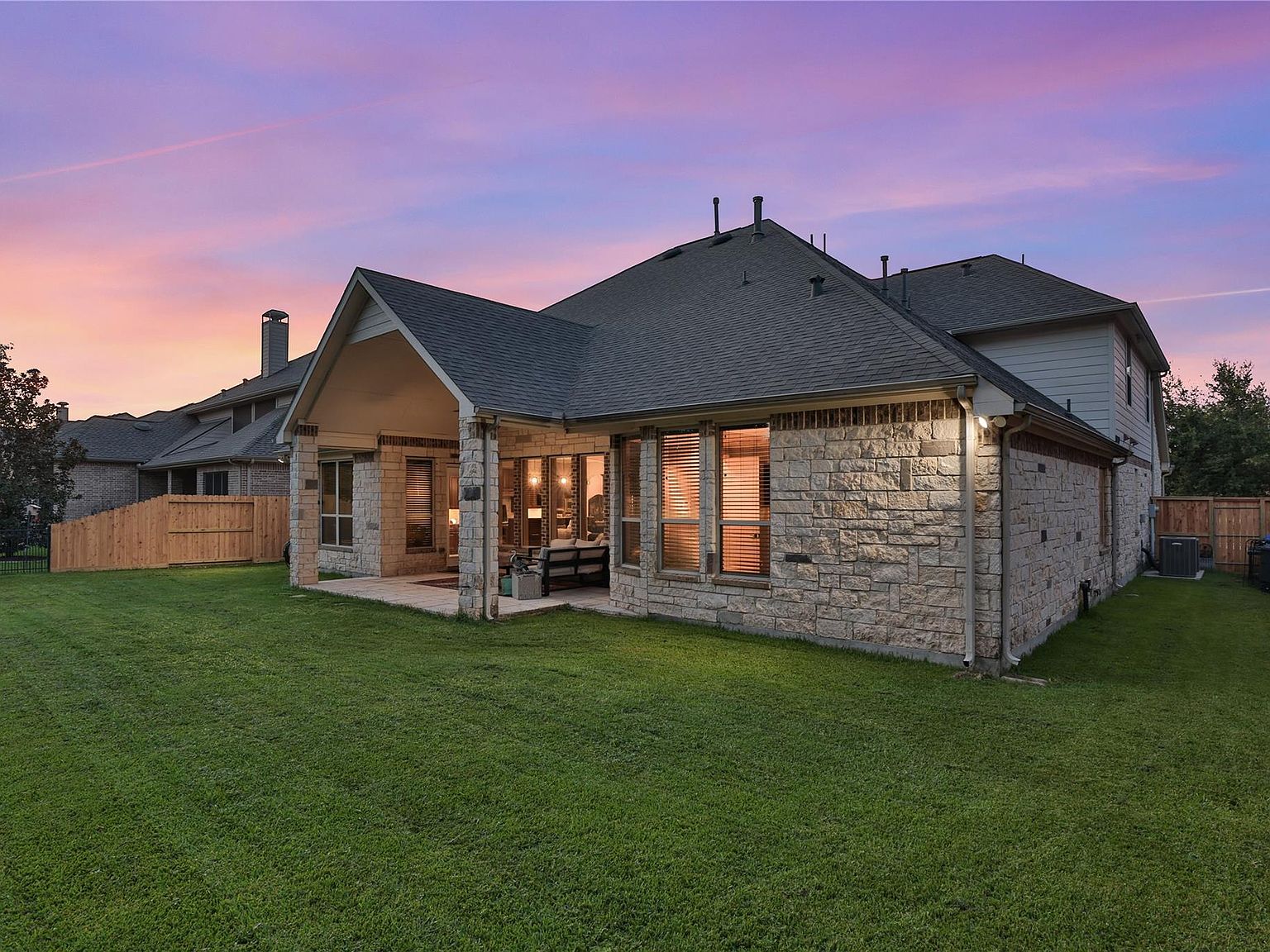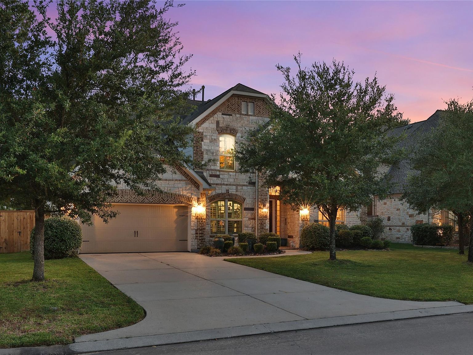This exquisite property boasts views of the 4th Fairway of the Oakhurst Golf Club. Two primary bedrooms with ensuite bathrooms are located on the main floor, including a luxurious main bedroom with a spa-like bathroom and walk-in closet. The living room features high ceilings, while the chef's kitchen is perfect for hosting guests. A study/home office and formal dining room are also on the main floor. Upstairs, you'll find a media room, game room, and three additional bedrooms. The outdoor patio overlooks the golf course, providing a peaceful space for relaxation. Don't miss out on this 4500 square foot home in a family-friendly golf course community, conveniently near 59, shops, and restaurants.