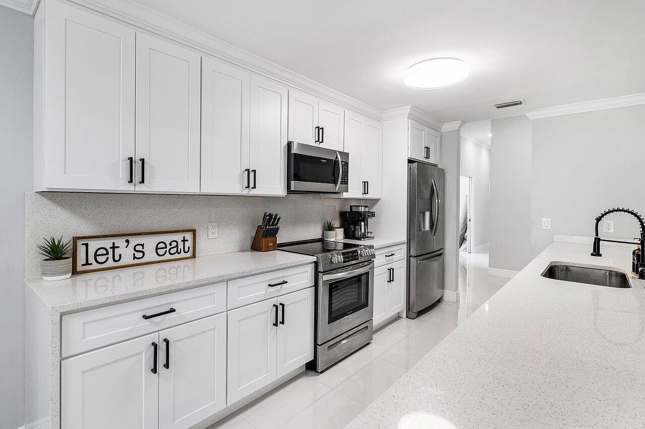 STUNNING 3 BEDROOM 2 BATH 2 CAR GARAGE HOME, DREAM KITCHEN W/ WHITE SHAKER CABINETS, QUARTZ COUNTERTOPS & STAINLESS STEEL APPLIANCES. BATHS W/ WHITE SHAKER CABINETS, QUARTZ COUNTERTOPS AND CONTEMPORARY SHOWERS. BEAUTIFUL 2 FEET ITALIAN PORCELIN FLOORS THROUGHOUT. ALL THESE AMAZING UPGRADES WERE DONE IN 2021. ALSO THE ROOF & A/C SYSTEM WERE INSTALLED IN 2021. CROWN MOLDING THROUGHOUT. POOL ONLY 3 LOTS AWAY AND LARGE COMMUNITY POOL AT THE CLUBHOUSE. YOU TRULY MUST SEE THIS PROPERTY TO FULLY APPRECIATE IT, HURRY!!!