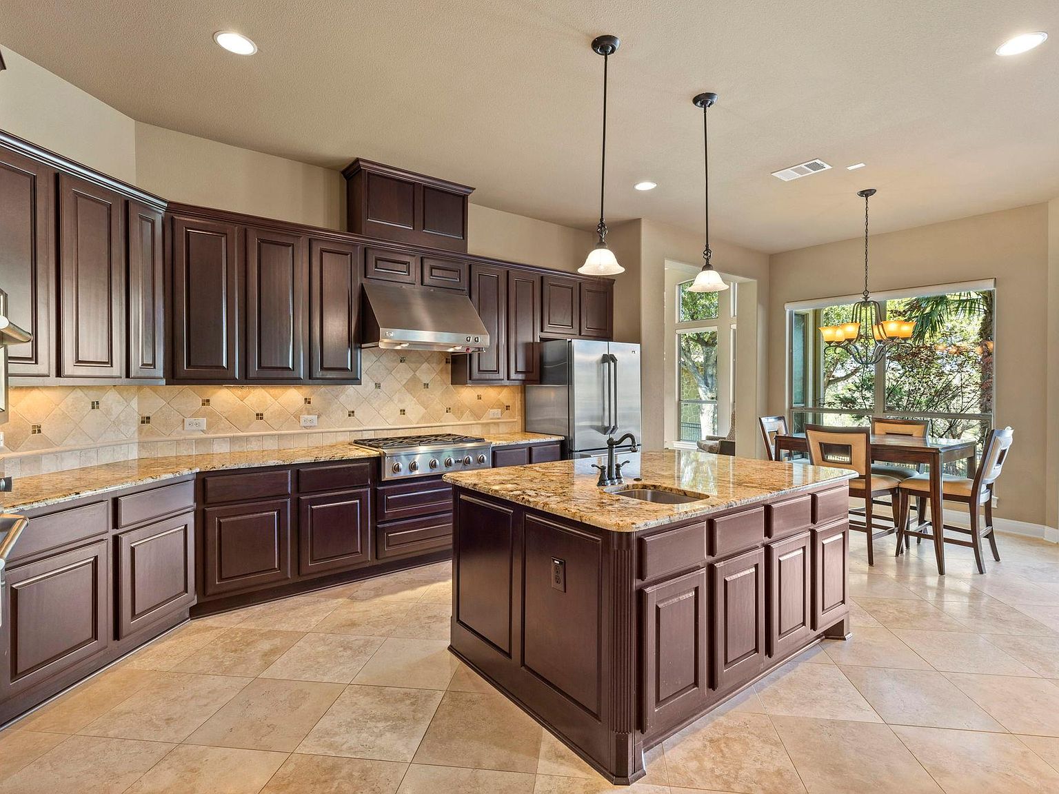 Step through the private gates of the exclusive UT Golf Club in Steiner Ranch and arrive at your new sanctuary. This meticulously crafted 4-bedroom, 3.5-bath, home office, sunroom, game room, media room and three car tandem garage haven spans 4,379 sq ft on a private 0.41-acre lot, blending timeless elegance with modern luxury. Curb appeal captivates with manicured landscaping and a welcoming facade that promises sophistication. Inside, an open-concept layout floods with natural light, seamlessly connecting everyday living to seamless entertainment. The chef's kitchen steals the show: double ovens, a sleek wine chiller, expansive cabinetry, granite counters, and a massive island ideal for casual breakfasts or entertaining. Adjacent, a sun-drenched sunroom and fireside living room open to verdant views, creating effortless flow for gatherings large and small. Retreat to the oversized primary suite, your private escape with a serene sitting area, dual vanities, soaking tub, and oversized shower in the spa-inspired bath. Outdoors, the magic continues on the covered patio, gazing over a private backyard pre-plumbed for your dream pool and spa—turn it into your ultimate retreat. Steiner Ranch delivers world-class amenities: award-winning Leander ISD schools, 20+ miles of hike-and-bike trails, resort pools, tennis/pickleball courts, a dog park, and exclusive Lake Austin waterfront access for boating and sunsets. For the golf aficionado or social set, the on-site UT Golf Club elevates it all: a championship 18-hole Tom Fazio course, pro-level tennis, pool, upscale dining, and a packed events calendar fostering lifelong connections. Top-rated Leander ISD schools. Walking distance to UT Golf Club. This isn't merely a home—it's your gateway to an lifestyle, where luxury meets leisure in Austin's premier gated enclave. Don't wait—schedule your exclusive showing today and step into the extraordinary! Contact Chris Krueger at Engel & Völkers Austin for details.