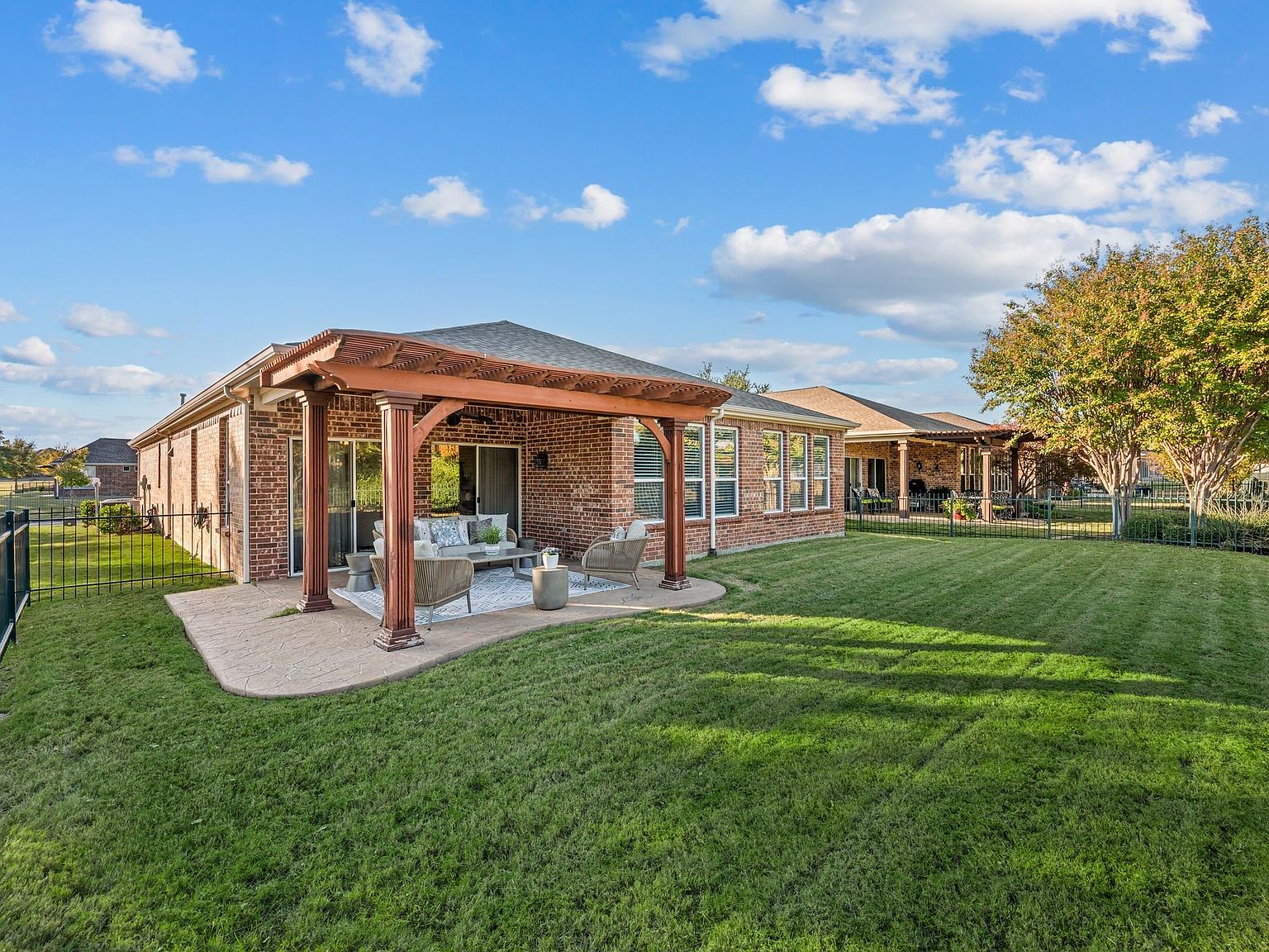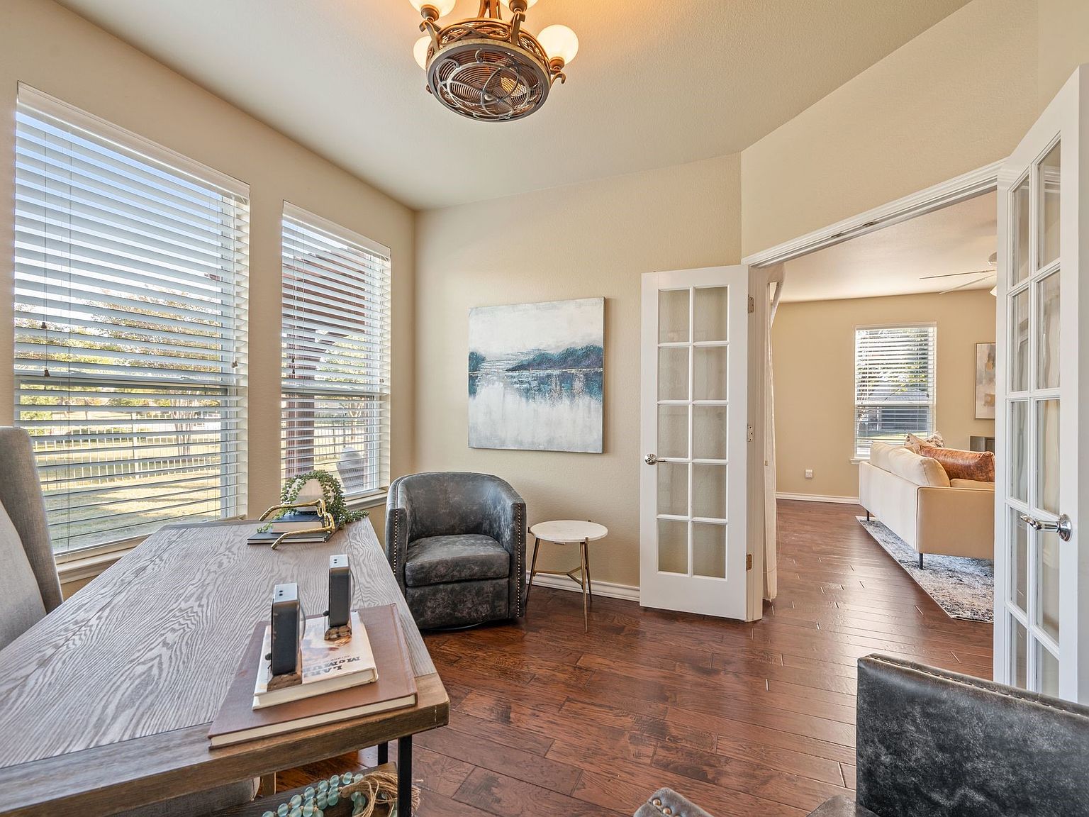 Don’t miss this rare opportunity to live steps away from the main Amenity Center at 55+ community, Frisco Lakes by Del Webb! Perfectly situated on a corner lot, this property offers an unbeatable combination of comfort, design, and ideal location. Step inside and be greeted by granite countertops, hard wood floors, stainless steel appliances, and double glass sliding doors to an extended outdoor covered patio. Beautiful hardwood flooring flows seamlessly throughout the living spaces, creating warmth and elegance. The large family room is bathed in natural light and the office is at the back of this home offering privacy and a landscaped view. This floorplan was designed for both entertaining and everyday living, with an open flow that makes the home feel bright, spacious, and welcoming. Enjoy the unbeatable location just steps from the ballroom where many Frisco Lakes events happen along with easy access to pools, gym, bocce, tennis, hot tubs, and social rooms. This home has an assumable 2.8% interest rate, which means if buyer puts 200k down, buyer is able to assume the current mortage, around 260k, at only $1218 per month. This translates to saving over $400 per month at current interest rate.