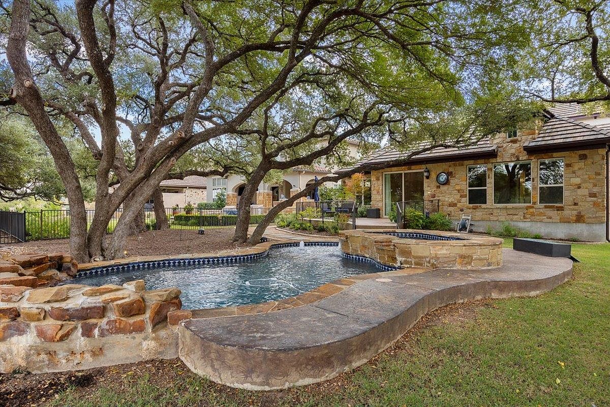 Stunning Home in Cimarron Hills. Golf Course Views, Liberty Hill ISD, Cul-de-Sac & Major Price Reduction! Welcome to this beautifully upgraded home in the exclusive golf course community of Cimarron Hills. Nestled on a private cul-de-sac lot with serene views of the 13th green, this property combines luxury, comfort, and exceptional value. With $140,000 in upgrades already completed and a $350,000 price reduction, this home is a rare opportunity, a steal at its current offering. Step inside to discover timeless elegance with wood beams, a cozy fireplace, and rich hardwood floors that create warmth and character throughout. The kitchen and dining areas are designed for both function and beauty, featuring granite countertops, Viking appliances, hardwood flooring, and a built-in dining room buffet, the perfect setting for everyday meals or entertaining guests. Primary suite: located on the main level, this large retreat overlooks the golf course and features a spacious bathroom with a walk-in shower, dual vanities, and a generous walk-in closet. A true sanctuary that blends comfort and luxury. Main house: in addition to the master, there is a second downstairs bedroom, one upstairs bedroom, three expansive living areas, a dedicated office, and a great room seamlessly connected to the kitchen and dining spaces. Detached casita: a private fourth bedroom with a full bath and kitchenette, perfect for guests, in-laws, or multi-generational living. The backyard is a true retreat. Enjoy a sparkling pool and spa overlooking the 13th green, offering both relaxation and breathtaking views of the fairway. Whether lounging poolside, hosting gatherings, or taking in the peaceful sunsets, this outdoor space is designed for resort-style living.