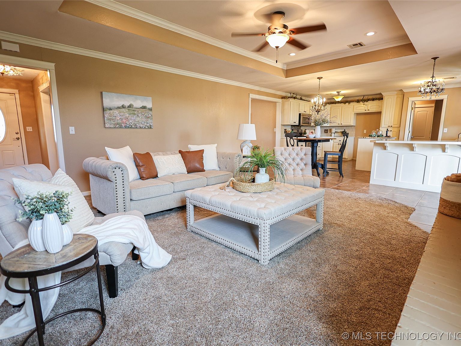 Welcome to Lakeview Drive! This 3 bed, 3 bath home sits right on the Sulphur Hills Golf Course with views of the lake. Large kitchen that flows into the living and dining room. The layout gives multiple options for furniture placement…. you could go with an oversized dining table or leave room for an additional seating area. Additional features include gas fireplace with mantle, granite island, and hardwood floors in some areas. Access the backyard deck from the living area or primary bedroom. Beautiful fenced backyard with a storage building and above ground storm shelter.