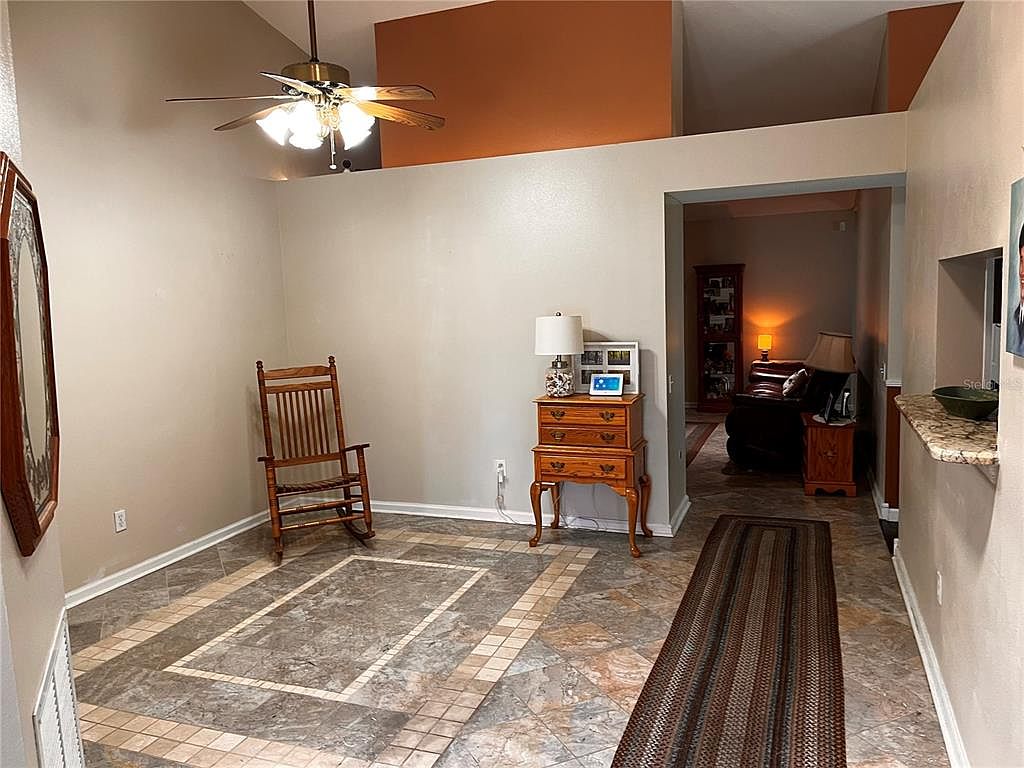 Reduced-Seller motivated, bring offers!. Golf Community 10 mins from MCO! 45 mins to the beach! 20 mins to Disney and 1 hour to Tampa!. 3 bedroom possibly 4 or 5 as part of patio enclosed for a large media room. Murphy bed is a great asset that comes with this home. Beautiful decor and upgrades galore. Cabernet hardwood floors in kitchen and living room. Large eat in kitchen with granite countertops, stainless steel refrigerator and a brand new GE stove. Perfect office area situated in front of home with lots of natural light throughout. 2 full bathrooms with Upgraded Master shower -walk right in to this massive solid surface shower with multiple heads and plenty of room to enjoy this very modern amenity. Large patio has a large hot tub! This is included with home. Large 2 car garage. Termite bond, sprinkler system. Security system, lovely home in a highly sought after golf community. Garage has personal workshop built in along with cabinets.