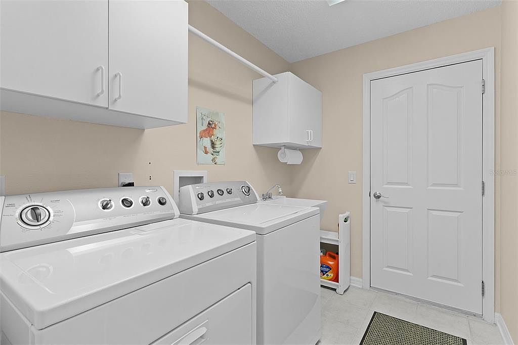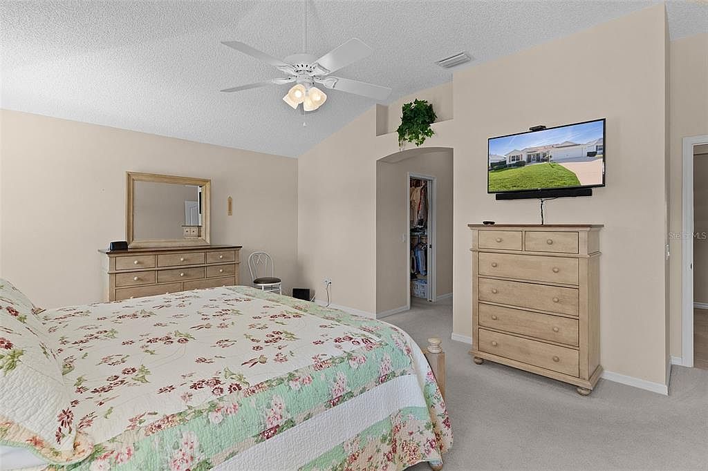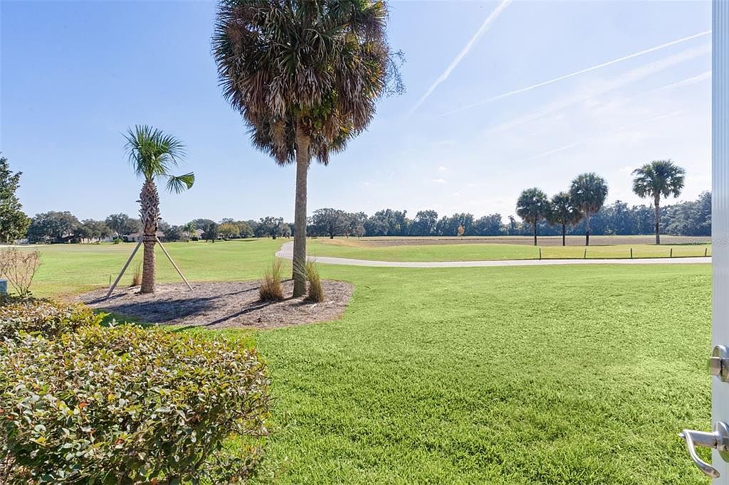 ~LOW BOND~ ~PANORAMIC GOLF COURSE VIEW – 6TH HOLE OF CHURCHILL DOWNS~ ~2023 ROOF~ ~2016 RHEEM HVAC~ ~2016 RHEEM HOT WATER HEATER~ ~TURNKEY OR FURNITURE PACKAGE AVAILABLE SEPARATELY~ Welcome to the Village of BELVEDERE, where this beautifully maintained CAMELLIA (Gardenia type) model delivers a serene GOLF COURSE backdrop and an OPEN FLOOR PLAN designed for both comfort and style. Step inside to a light-filled entry with ceramic tile flooring and HIGH, VAULTED CEILINGS throughout the main living areas. The spacious living room features LUXURY VINYL PLANK FLOORING, while the kitchen shines with ceramic tiles, GRANITE countertops, lower cabinet rollouts, a SOLAR TUBE to enhance natural lighting, a ceiling fan, and a charming eat-in area. The primary bedroom offers comfort and space with carpet, a ceiling fan, high vaulted ceilings, and 2 WALK-IN CLOSETS. The en-suite bath includes ceramic tiles, a TILED WALK-IN SHOWER, double sinks with GRANITE countertops, a linen closet, and a ceiling fan for added comfort. The front carpeted guest room is ideal as a guest space, office or hobby room. The 2nd guest room, also carpeted, includes a ceiling fan and a built-in closet. Both guest rooms are next to the guest bath featuring ceramic tile, a tiled tub/shower combo, GRANITE countertops, and a linen closet. The INSIDE LAUNDRY ROOM adds convenience with ceramic tiles, a laundry tub, shelving, cabinets, and WHIRLPOOL appliances. Step out to the ENCLOSED LANAI, finished with ceramic tile, blinds, and 2 ceiling fans, making it a perfect year-round space to enjoy PEACEFUL GOLF COURSE VIEWS. A 2-car garage with an OVERHEAD GARAGE DOOR SCREEN along with pull-down attic stairs completes the home, offering great storage and functionality. Close to the Pimlico Rec Center, Lynnhaven Rec Center and the Churchill Street Rec Center and minutes from the Southern Trace Shopping Center with shopping, dining and medical. A perfect location to begin your Villages lifestyle!