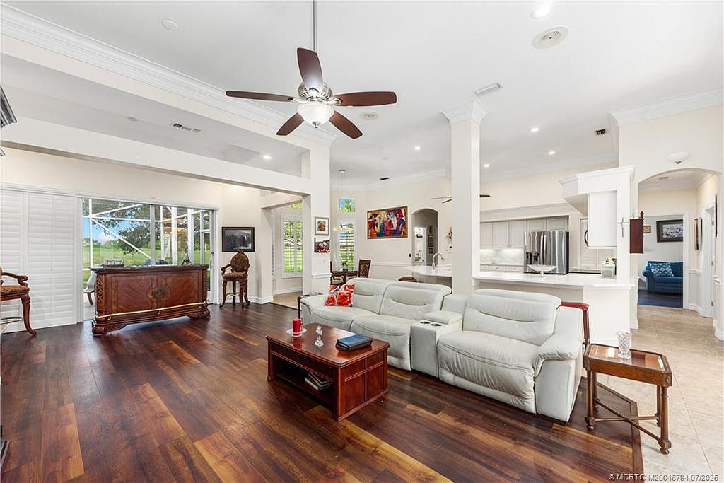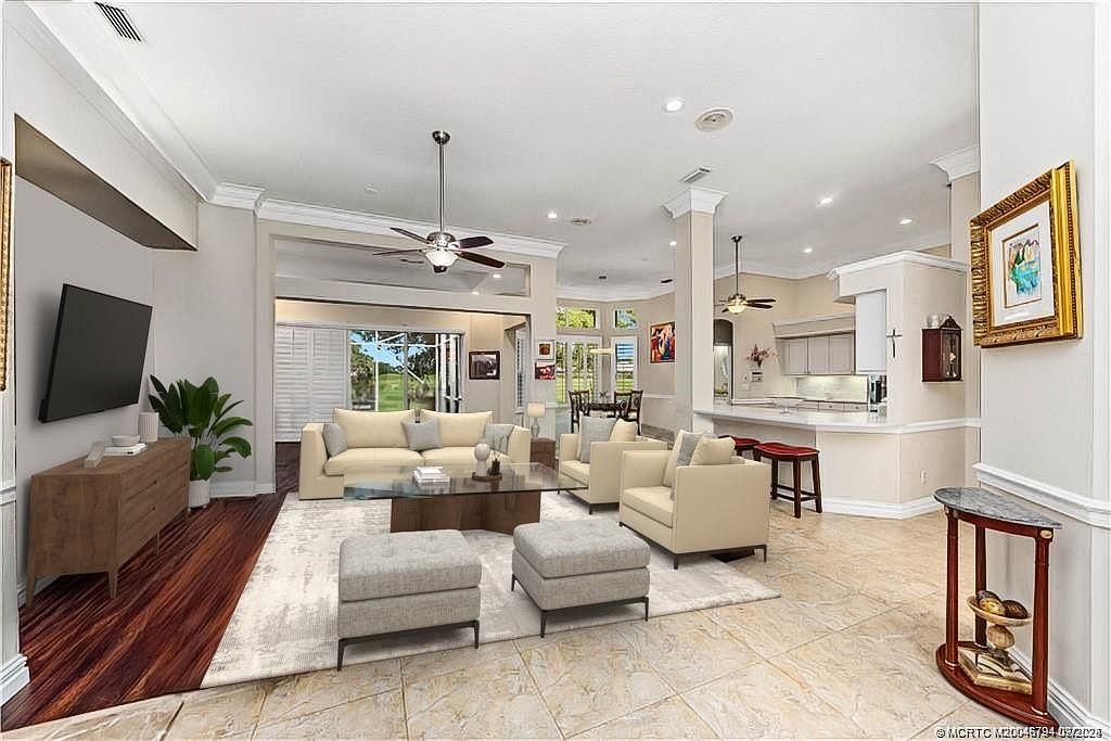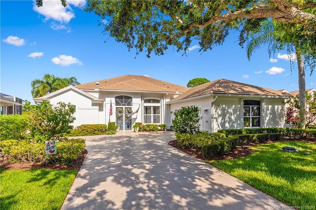 Enjoy sweeping golf course views from this 3 bedroom CBS home in the highly sought after Monarch Country Club. The bright kitchen features white cabinetry, quartz countertops, and plenty of workspace. An open floor plan enhances the home’s flow, creating a comfortable and inviting space. The spacious master suite includes a bonus sitting area with a closet perfect for a reading nook or yoga studio. A large screened in patio with an electronic retractable awning and an additional concrete patio create great outdoor living spaces. Additional features include: a whole house generator, plantation shutters, crown molding, accordion shutters, and a 2017 roof replacement. The HOA covers 24-hour security, yard maintenance, irrigation, roof cleaning, exterior painting, cable TV, and internet. Golf and social memberships are available but not required. This home offers easy access to I-95 and the Florida Turnpike and is just minutes from top rated schools, shopping, dining, parks, & beaches