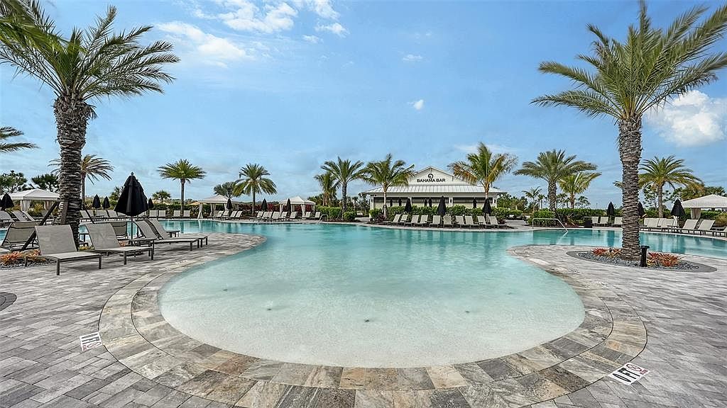 Upon entering this Pallazio open floor plan through exquisite glass double front doors, you are immediately greeted by breathtaking golf and lake views. This residence is a lavish display of award-winning design, featuring custom finishes and masterful craftsmanship throughout. The seamless indoor-outdoor Florida lifestyle is embraced through double pocket slider doors that lead to an extended covered lanai, an enchanting heated pool with Lutron color-changing lights and waterfall pots, a clear view cage with stunning golf and water views, and an outdoor kitchen complete with grill and range hood, sink, storage cabinets and stone countertops. Inside, the spacious family room overlooks an open kitchen and dining area adorned with custom lighting. The kitchen is a chef’s dream, boasting exquisite wood cabinetry with pullout shelves, an extended island with quartz countertops and additional front cabinets, top-of-the-line appliances, an extended bar with glass cabinetry, a walk-in pantry, gas cooktop, under-cabinet lighting, designer glass backsplash and a water filtration system under the sink. The primary suite is an oasis of comfort, featuring an extended sitting area with bay windows, tile floors, motorized shades, stunning golf and lake views, and a luxurious bath with an oversized glass walk-in shower, double vanities with quartz countertops, and a spacious closet with custom built-ins. The guest rooms are generously sized, each with en-suite baths and framed glass mirrors. A den/office with glass French doors, motorized shades, and built-in shelving completes the interior, leaving no detail overlooked. Additional highlights include impact windows in the front and hurricane shutters, custom lighting in every room, a built-in Closet Tec system in all closets, storage racks in the extended three-car tandem garage, gutters around the entire house and landscape lighting throughout. This golf membership home offers access to world-class amenities, including a resort-style pool with a Bahama bar, an onsite restaurant, wellness and fitness centers, sports courts for tennis and pickleball, and an incredible golf course with a practice range. This is luxury living at its finest.