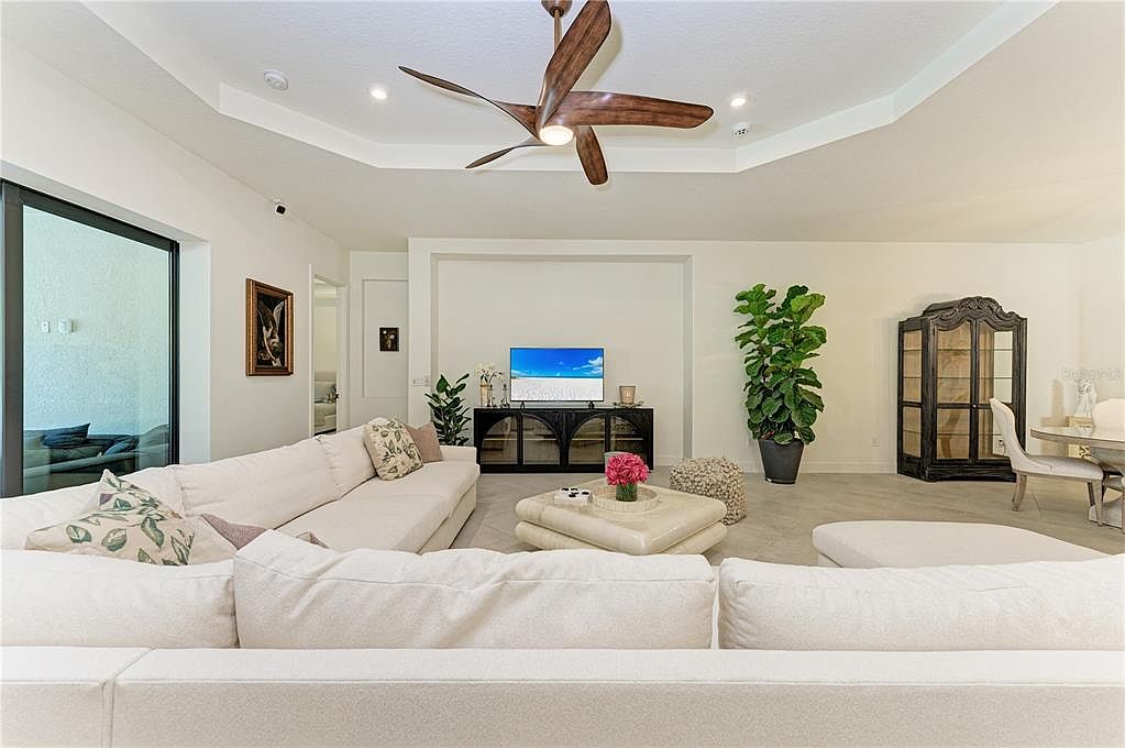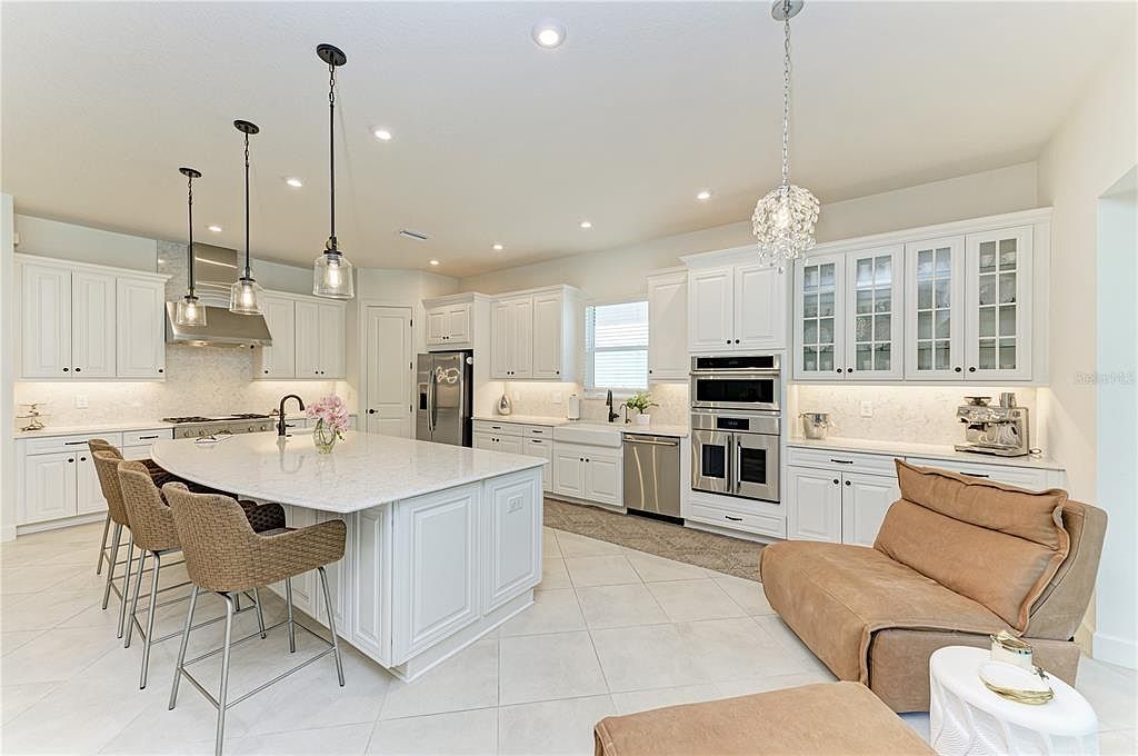 Imagine waking each morning to the soft glow of the sun rising over a tranquil preserve, coffee in hand as the sounds of nature begin the day. This exceptional home, perfectly positioned on one of the most desirable preserve-view lots in Esplanade at Azario, captures the essence of relaxed luxury where every detail invites comfort and connection. Inside, the expanded open layout flows effortlessly from one inviting space to the next, with three spacious bedrooms, three designer baths, and a versatile den that easily transforms into a private study, cozy reading nook, or welcoming guest suite. The chef’s kitchen is a showpiece—gleaming quartz countertops and backsplash and matching backsplash, high-end GE appliances, a natural gas range, and built-in water filtration all come together to create a space that’s as functional as it is beautiful, perfect for intimate dinners or lively gatherings with friends. Throughout the home, thoughtful touches such as smart home technology, custom security system, impact glass, and custom electronic hurricane screens provide both sophistication and peace of mind. Step outside and the feeling of calm deepens—your private backyard retreat unfolds with an oversized heated saltwater pool and spa, believed to be one of the largest in Azario, framed by lush tropical landscaping. The extended lanai is designed for effortless living, with cooling fans, pre-plumbing for a summer kitchen, and a cozy propane fire pit that invites long, laughter-filled evenings under the stars. While this home does not include a golf membership, you’ll still enjoy access to Azario’s incredible amenities—the resort-style pool and Bahama Bar, fitness and wellness center, spa, tennis, pickleball, culinary center, and vibrant social gatherings that make this community so special. Furnishings are available for separate purchase. This home is ready to welcome you to a life of beauty, ease, and belonging—a place where every day feels like a getaway and coming home feels like the best part of it all.