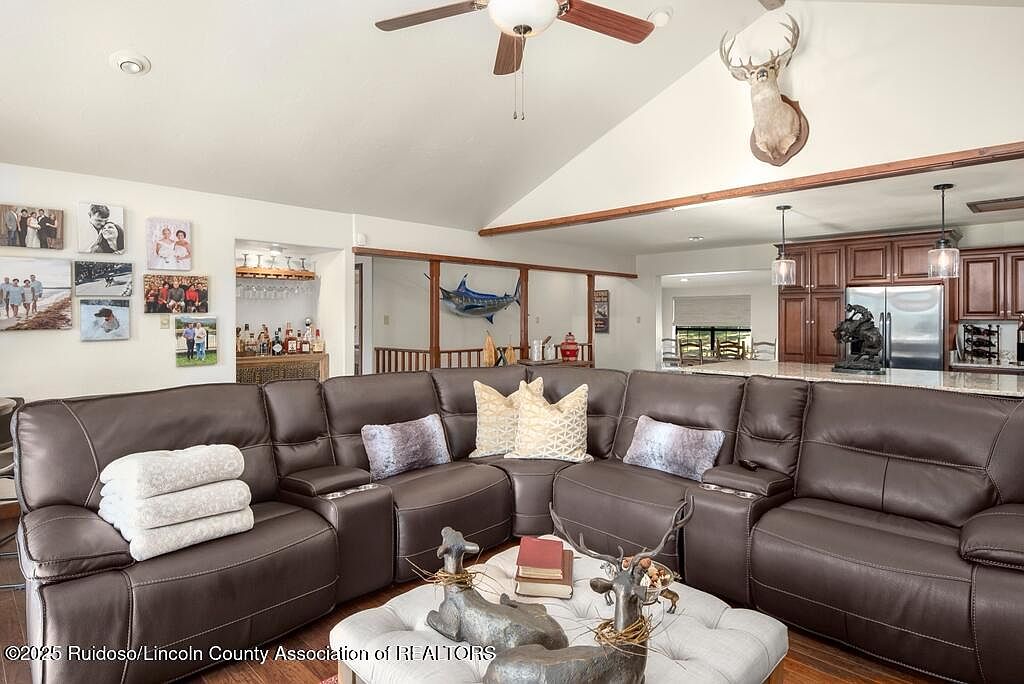 Mountain living in a beautiful, updated home. Enjoy your large deck for you and your guests. Large rock fireplace in the living room and a tile fireplace in the dining room. Open floor plan with large granite countertop in the wide-open kitchen with upgraded appliances. Three large bedrooms with their own baths. Lots of storage under the house. Paved circular driveway across the street from the 14th fairway. Garage too.