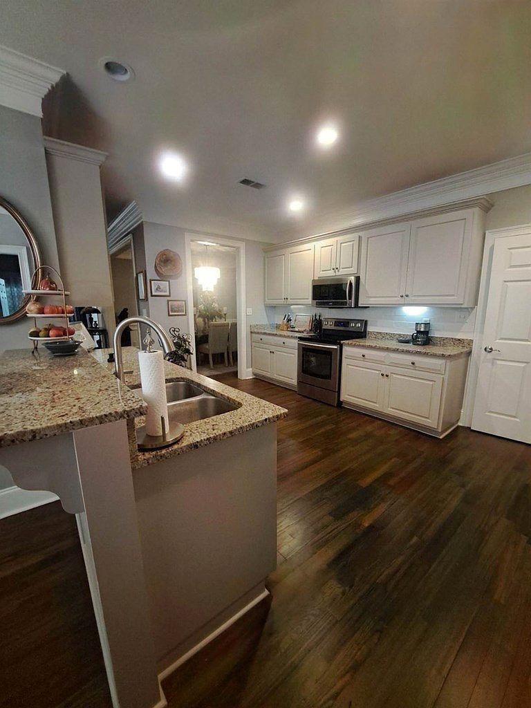 Located in sought after Stonebridge Country Club and Golf Community, this immaculate Patio Home is move-in ready! There were so many UPGRADES in 2024; the guest bath completely REMODELED including a fresh sparkling tub, kitchen upgrades include installing beautiful backsplash, undermount cabinet lighting, sink fixtures and hardware. The whole interior of the house has refinished HARDWOOD floors and fresh paint, ceiling fans installed, replaced lighting and hardware throughout! SOARING ceilings showcase this open and spacious floor plan with magnificent crown moulding throughout and you will not believe the oodles of storage! AND you will love the SCREENED IN PORCH, complete with a darling swing, that opens up to your view of Stonebridge's driving range! The fireplace has gas logs to keep you comfy cozy in the winter! And yes, all of this and you have a large 2 car garage.