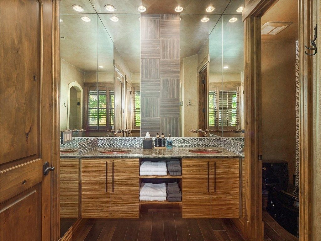 Crafted with custom built-in cabinets, wide plank alder flooring on the main floor, heated stone and wood inlay flooring on the lower level, and floor-to-ceiling tile, clay, and facet paint features, this home is a masterpiece. Mechanical and HVAC systems include in-floor radiant heat with 19 zones, three high-efficiency boilers, an XL water heater with an on-demand reserve, and fire suppression system. Outdoor amenities are equally impressive, of landscaped grounds featuring a private stone courtyard, cozy rocking chairs around a steel fire pit, weeping wall, and stone-built hot tub area.