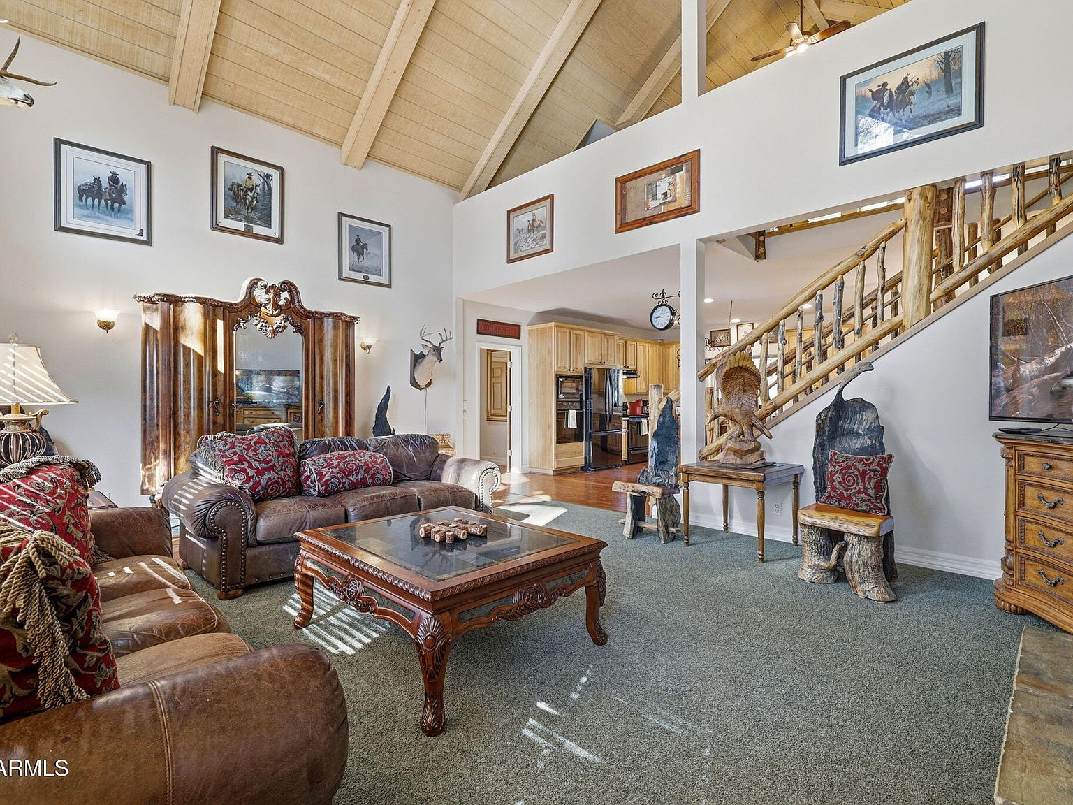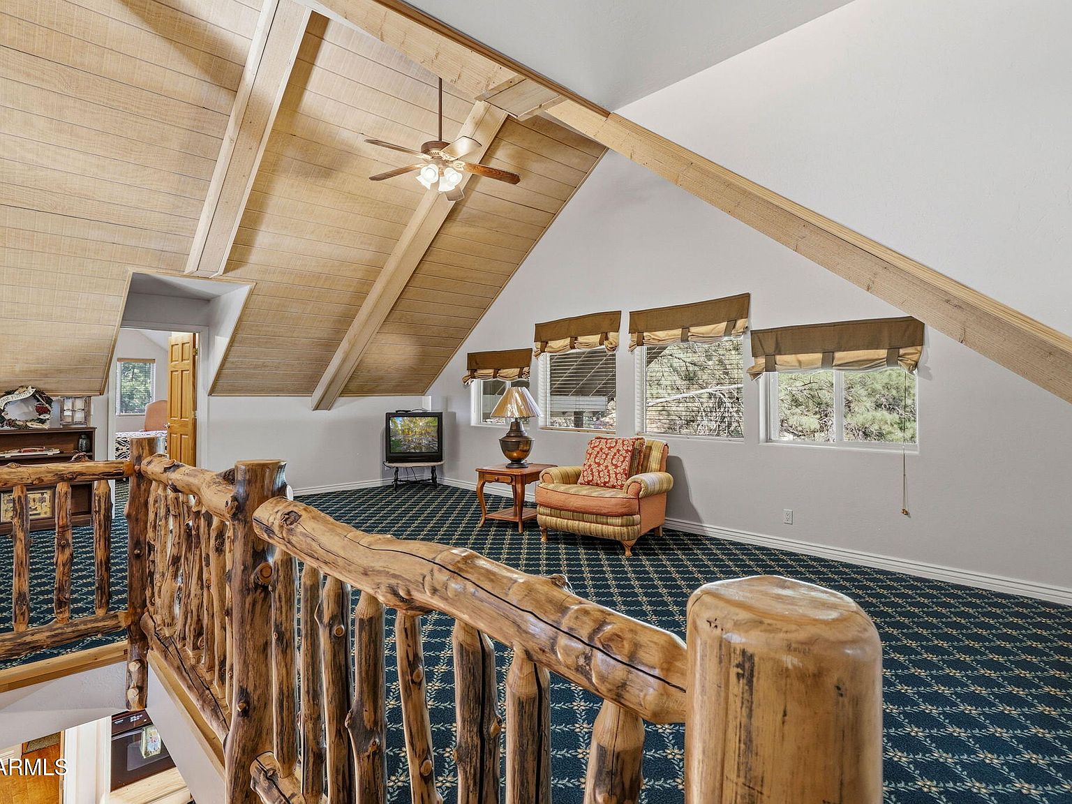 Experience mountain luxury and serene golf course living in this spacious 5-bedroom, 6-bathroom home located on the 18th tee-box in the highly sought-after Pinetop Lakes Golf + Country Club community. Each bedroom features its own private en-suite bathroom, providing exceptional comfort and privacy for family members and guests alike. Step inside to discover soaring T+G vaulted ceilings and an open, sun-filled living area anchored by a stunning stone fireplace, perfect for cozy gatherings. The thoughtfully designed floor plan offers both a main-level living room and an additional upstairs space ideal for entertaining, relaxing, or hosting guests. The inviting kitchen boasts ample counter space, a convenient pantry, and an adjoining dining area that flows seamlessly to the outdoors... A sliding glass door opens to an expansive covered patio framed by a dramatic two-story roofline, the perfect spot to take in lush golf course views, soak up the mountain sunshine, or unwind in the cool evening air. Additional highlights include a spacious laundry room with bonus space for a home office, craft area, or extra storage, plus a two-car garage for added convenience. Whether you're looking for a primary residence, a seasonal getaway, or a strong investment opportunity, this home fits the bill. Pinetop Lakes Golf & Country Club is an 18-hole executive style golf course, open to the public- while still offering membership options including: driving range, practice greens, social events, dining, tennis & pickleball courts.