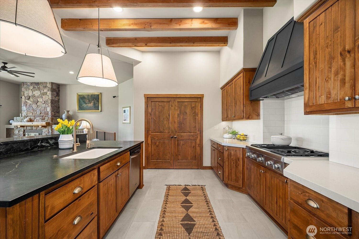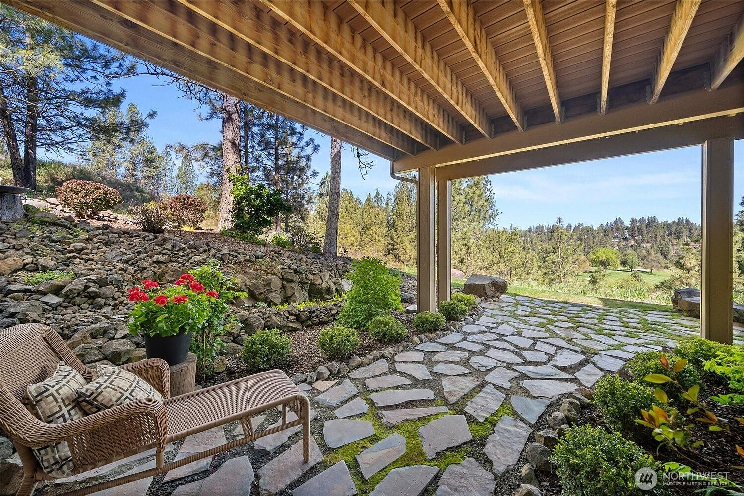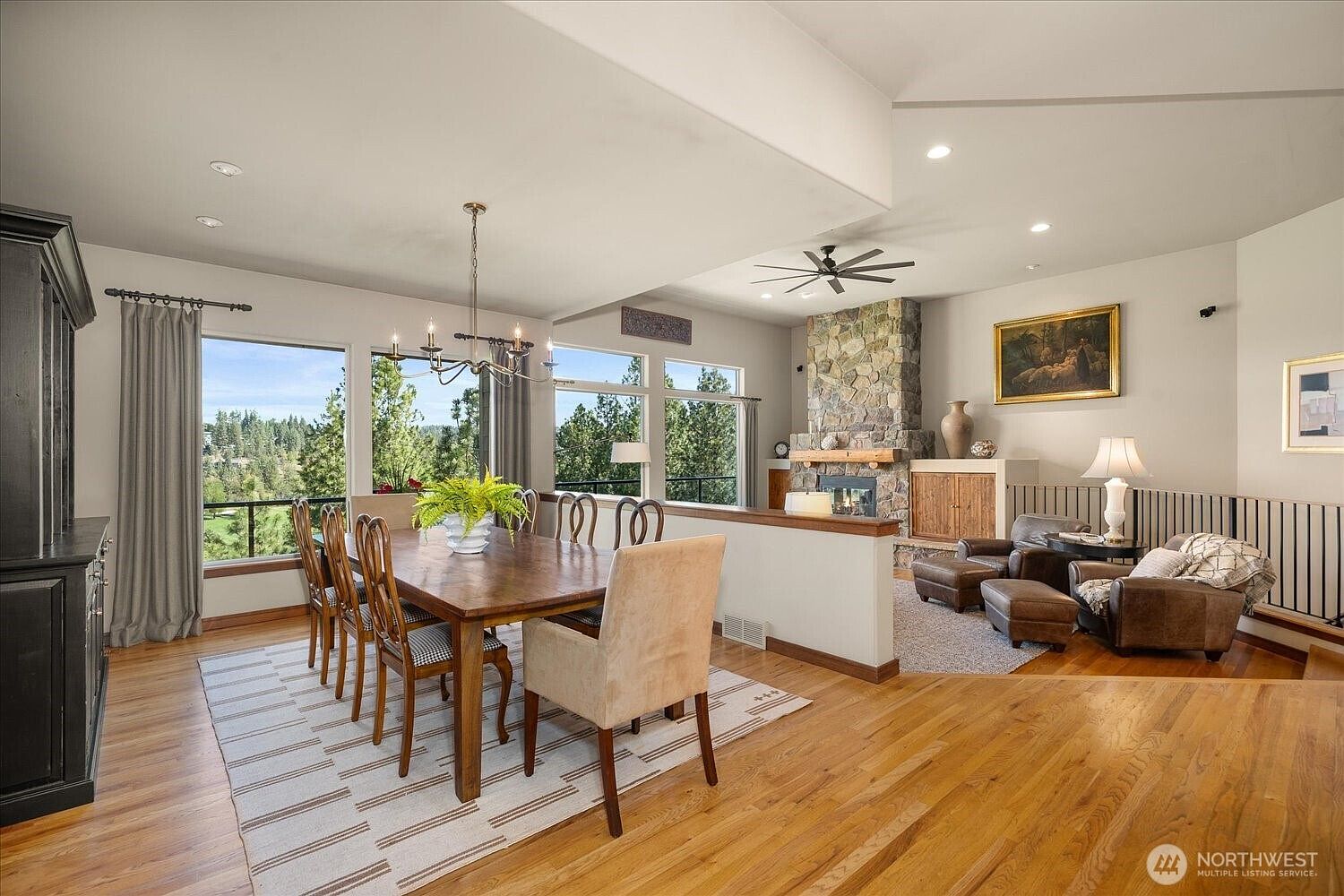 Perched above Latah Valley’s Signature Hole 5, this custom residence showcases refined craftsmanship & uninterrupted views from every room. With 4 beds, 2.5 baths & 4,590 sq ft, it offers space, serenity & distinction. The designer kitchen boasts soapstone counters, beamed ceiling, pantry & large island. A floor-to-ceiling fireplace anchors the living room, opening to a covered deck overlooking the fairway. The primary suite offers private deck access, a spa-like bath, walk-in shower & vestibule entry. Downstairs: media/game room, gym, & wet bar. The 4+ car garage (1,396 sq ft) includes storage & workshop space. Located at the Ridge at Hangman—just 15 minutes to downtown Spokane and the airport.