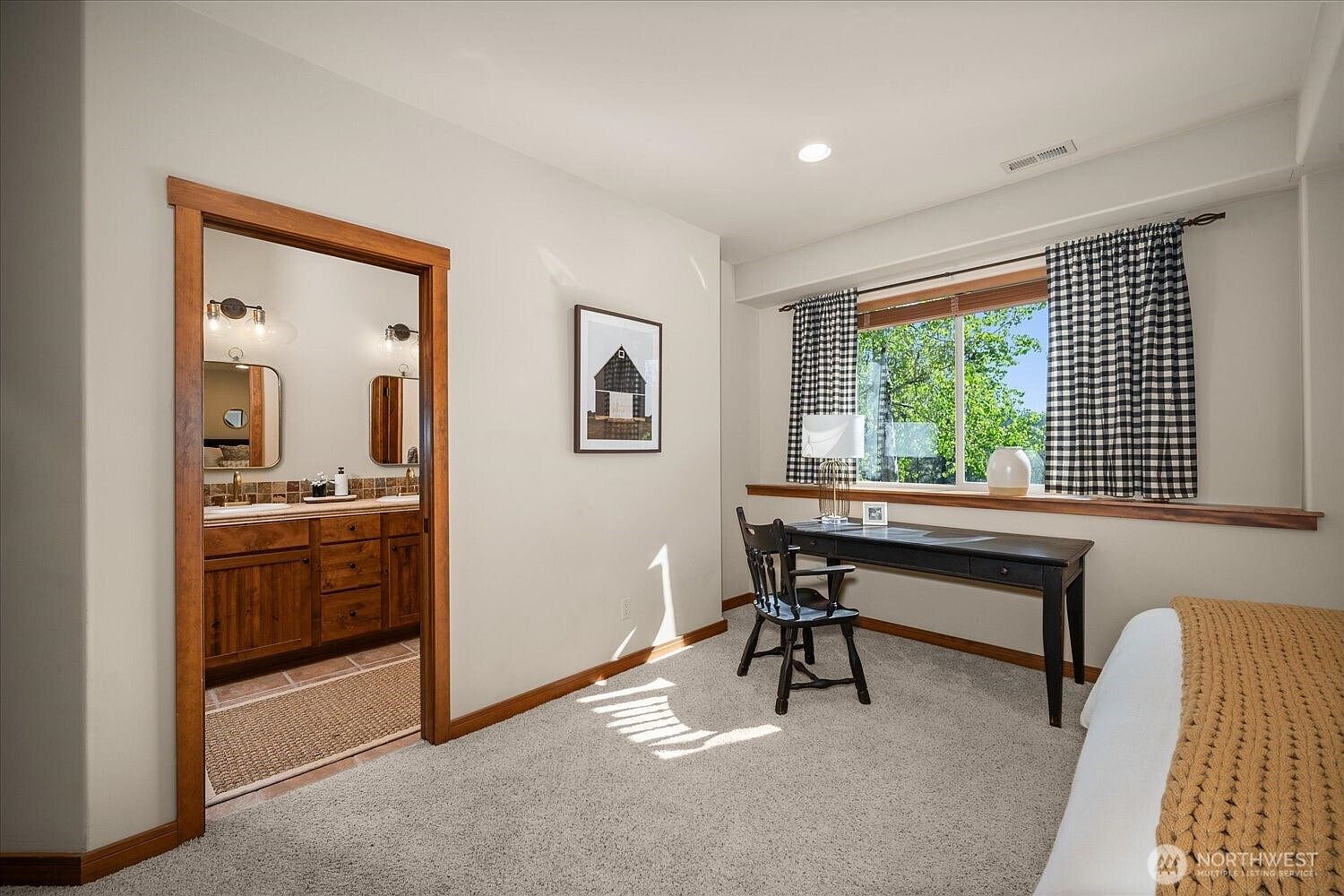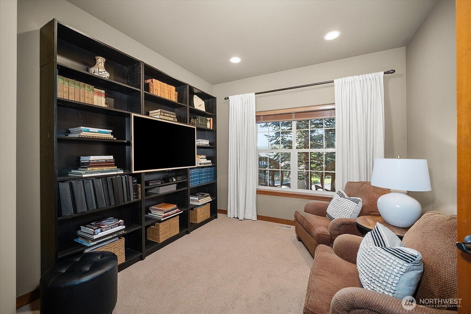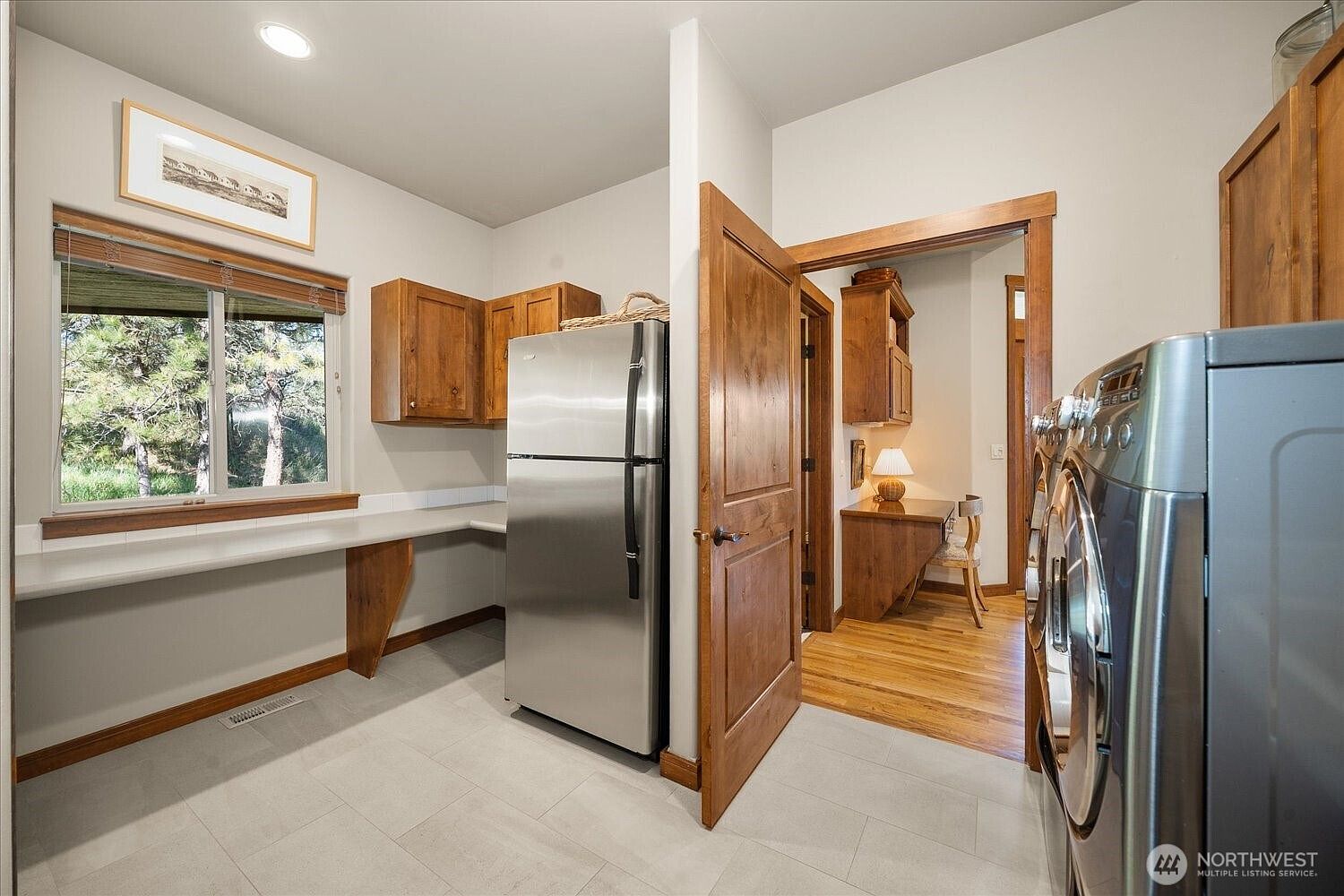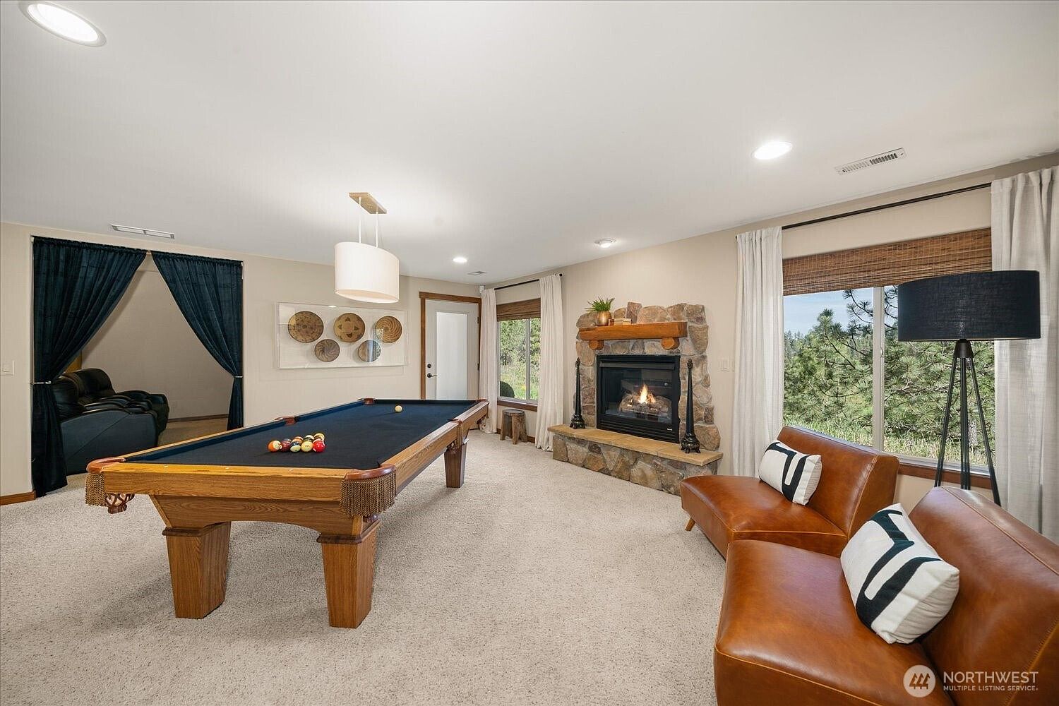Perched above Latah Valley’s Signature Hole 5, this custom residence showcases refined craftsmanship & uninterrupted views from every room. With 4 beds, 2.5 baths & 4,590 sq ft, it offers space, serenity & distinction. The designer kitchen boasts soapstone counters, beamed ceiling, pantry & large island. A floor-to-ceiling fireplace anchors the living room, opening to a covered deck overlooking the fairway. The primary suite offers private deck access, a spa-like bath, walk-in shower & vestibule entry. Downstairs: media/game room, gym, & wet bar. The 4+ car garage (1,396 sq ft) includes storage & workshop space. Located at the Ridge at Hangman—just 15 minutes to downtown Spokane and the airport.