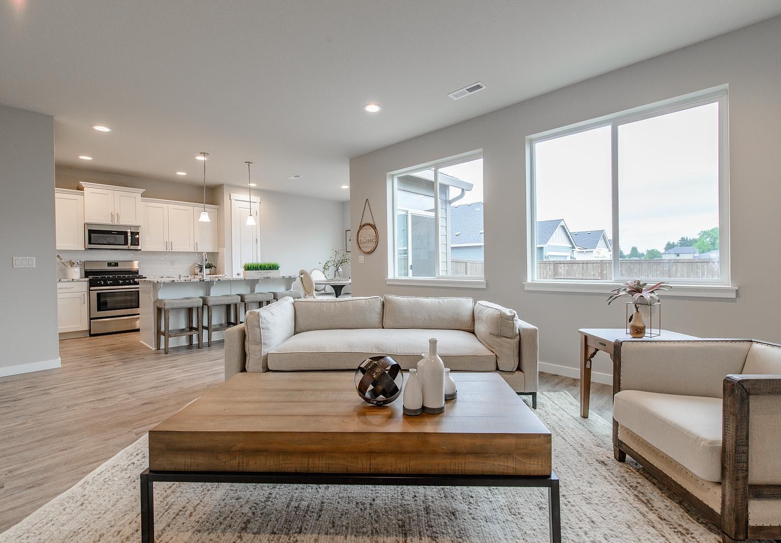 With entry access from the garage or covered porch, the great room opens up to the kitchen, complete with slab counters, stainless steel gas appliances, kitchen island and pantry. The dining area sits off to the side, making family meals a cherished occasion, while boasting plenty of space in the great room for celebrating all of life's special moments. The incredible standard features keep this home in step with current trends. Holt Homes standards will give you confidence that your home is the best value, at the best price.*
