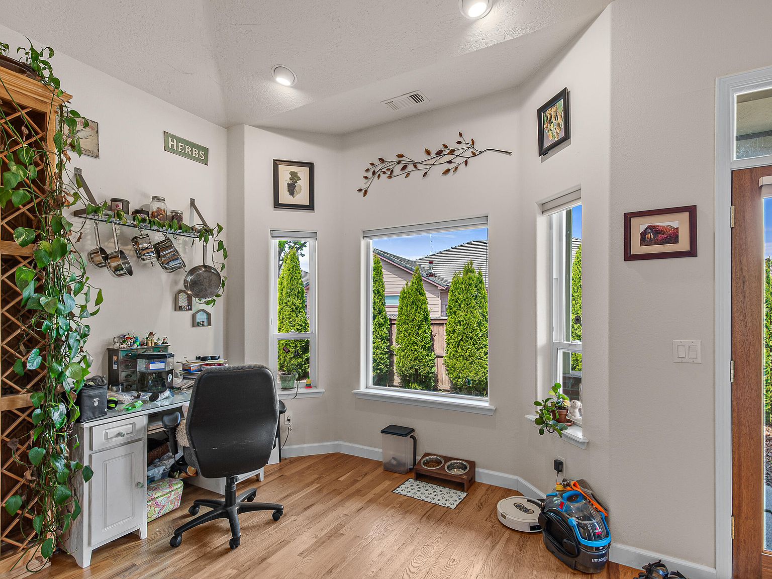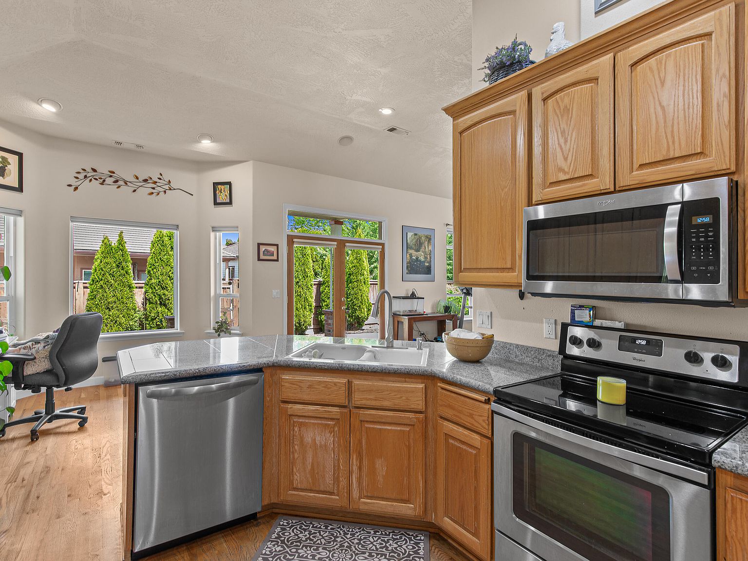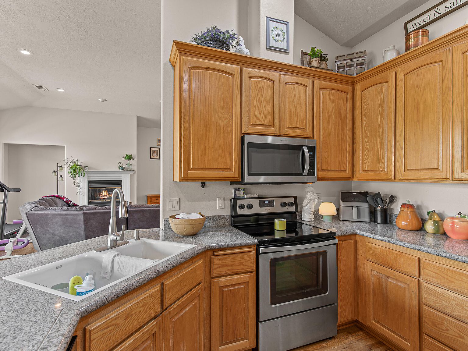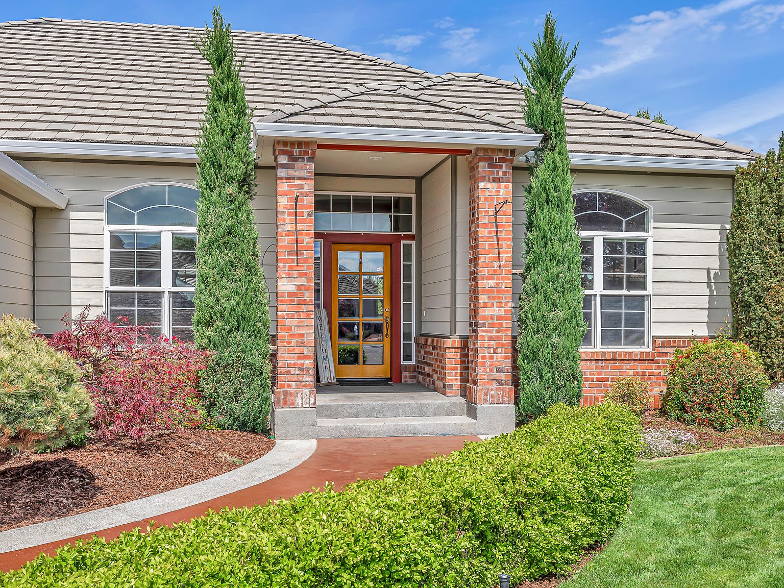 Established secure neighborhood within the Pine lakes subdivision. beautiful surrounding homes all have tile roofs, high-end facades and well maintained landscapes. Quiet cul-de-sac entry to 3 car garage with stained concrete entrance path leading to this grand entry Home. Features include grand foyer w/high arches, adjoining dining & family, open concept with beautiful lighting. Great room with over 11' coffering and gas Lennox fireplace w/custom tile hearth, light and bright with large doors to the covered patio. Split floor plan with large en-suite, coffered 11' ceilings, built-in tub/spa separate step-in shower, double sinks, lrg. 6x12 walk-in closet & access to the private backyard. Outside leads to pathway to; 12 x 14 cedar gazebo, led lighting ceiling fan, propane firepit surrounded by custom concrete and stone to complement outdoor living at its finest, including BBQ grill. All this and more awaits.