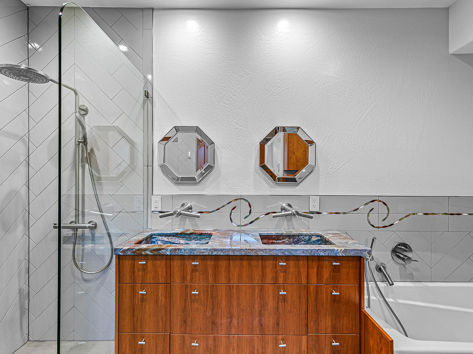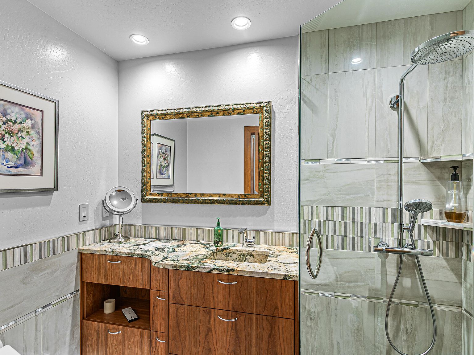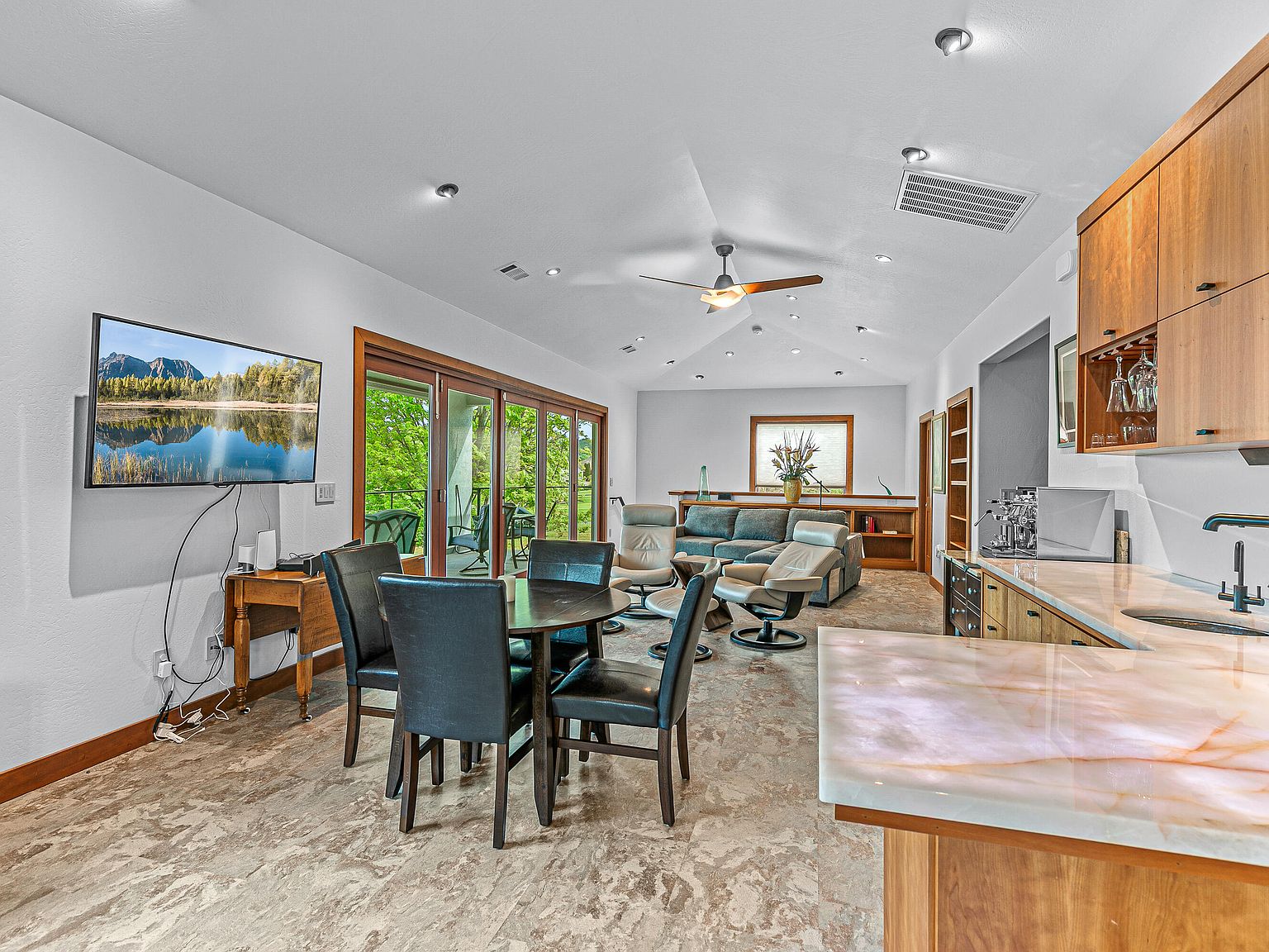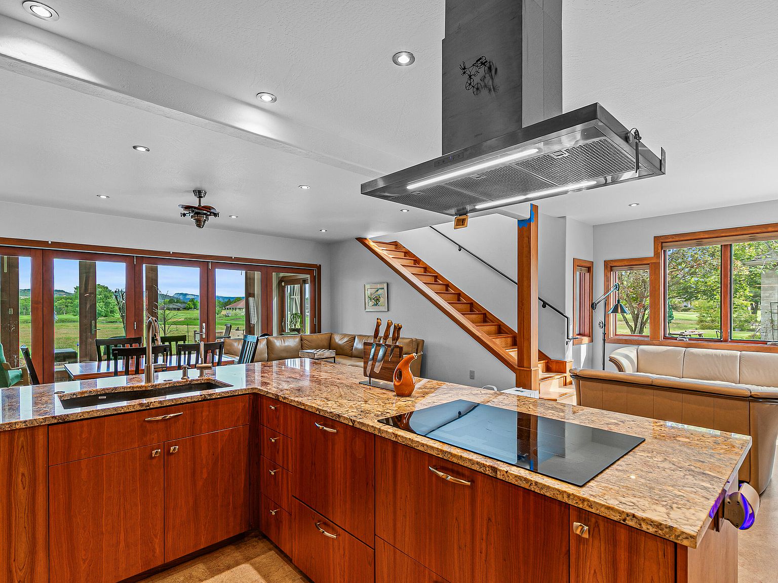 Unlike any other home, this one of a kind, golf course front, eccentric beauty boasts features not found elsewhere. Completely remodeled and expanded in 2016, amenities such as European faucets, LED lit Cristallo Quartzite countertop, and elevator for easy 2nd story access have been added to make this a very unique home. Many other features include expansive, retractable, glass doors that bring outside living right into your home; Cork flooring, Jeld-Wen windows and doors, concealed office, hidden 900 bottle walk-in wine cooler, LED voice activated smart lighting, island kitchen with maple and cherry cabinets, designer pulls, two drawer dish washer, induction cooktop, and Bosch convection ovens. The granite counters are premium Brazilian stone with invisible seams. Newly installed fully paid off solar power cuts costs. This home was designed for those with discriminating tastes and enjoys expansive views of 6 greens, 5 tee boxes and 8 fairways with the Table Rocks in the background.