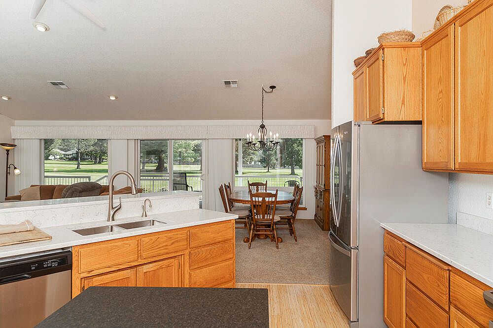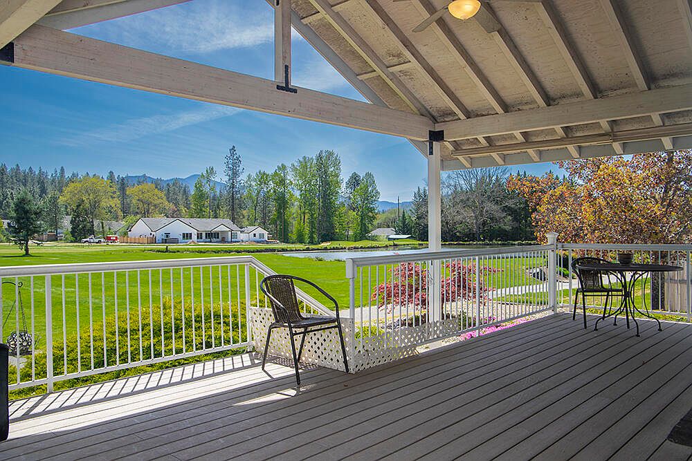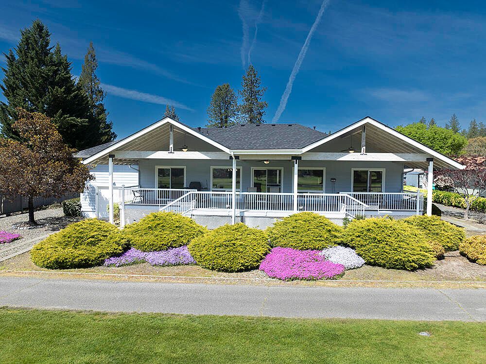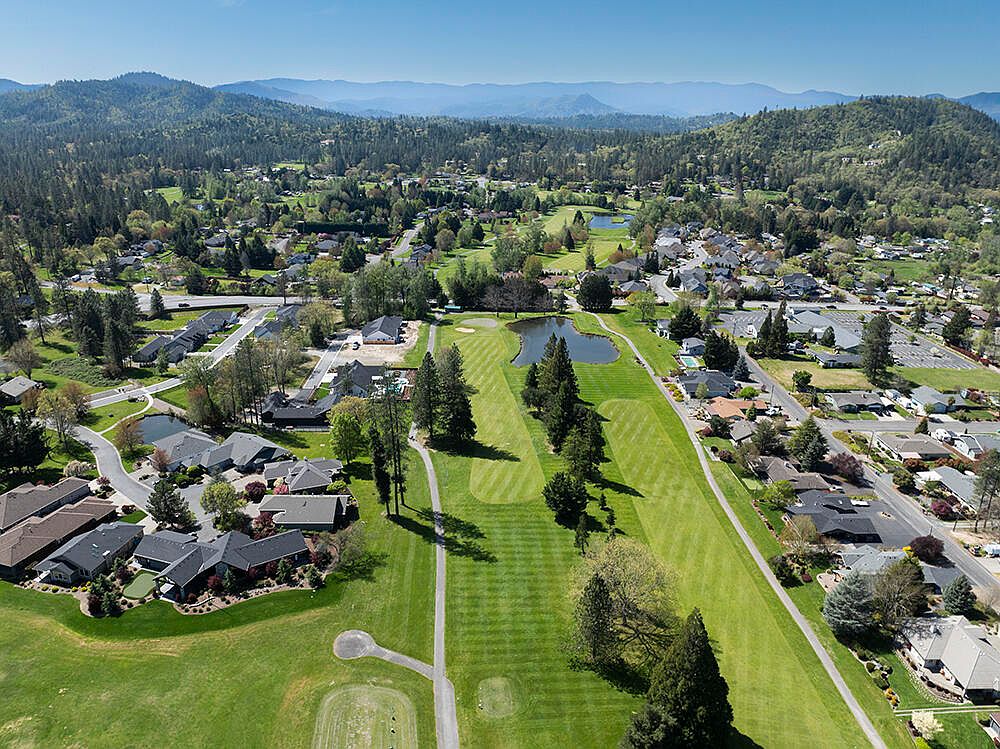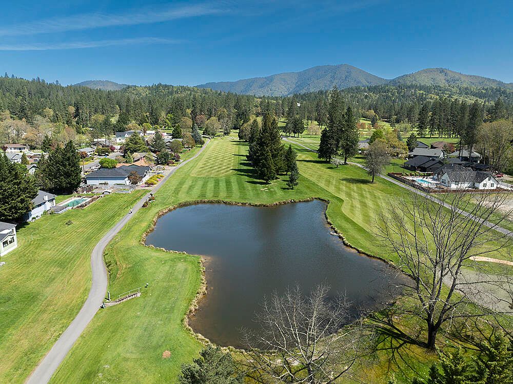 First time on the market! An attractive open floor plan awaits you at this single-level home on the 8th Fairway of the Grants Pass Golf Club, Some features include natural gas stove & water heater, breakfast bar, quartz counters, small island in kitchen; tile entry; split floor plan; vaulted ceiling; ceiling fans; sliders from the living room, primary suite & guest bedroom provide access to the large covered deck ideal for entertaining or simply enjoying the activity on the course. The primary suite has 2 closets including walk-in, & its private bath has both tub & step-in shower, 2 vanities & skylite. The front bedroom has a built-in window seat w/extra storage. Roof & heat pump replaced in the last 2 years. 2-car attached garage, plus full RV garage w/golf cart door on the course side for ease of access. Circle drive plus extra parking on both sides. Convenient access to shopping, restaurants, etc. Call today for your personal tour, & welcome home!