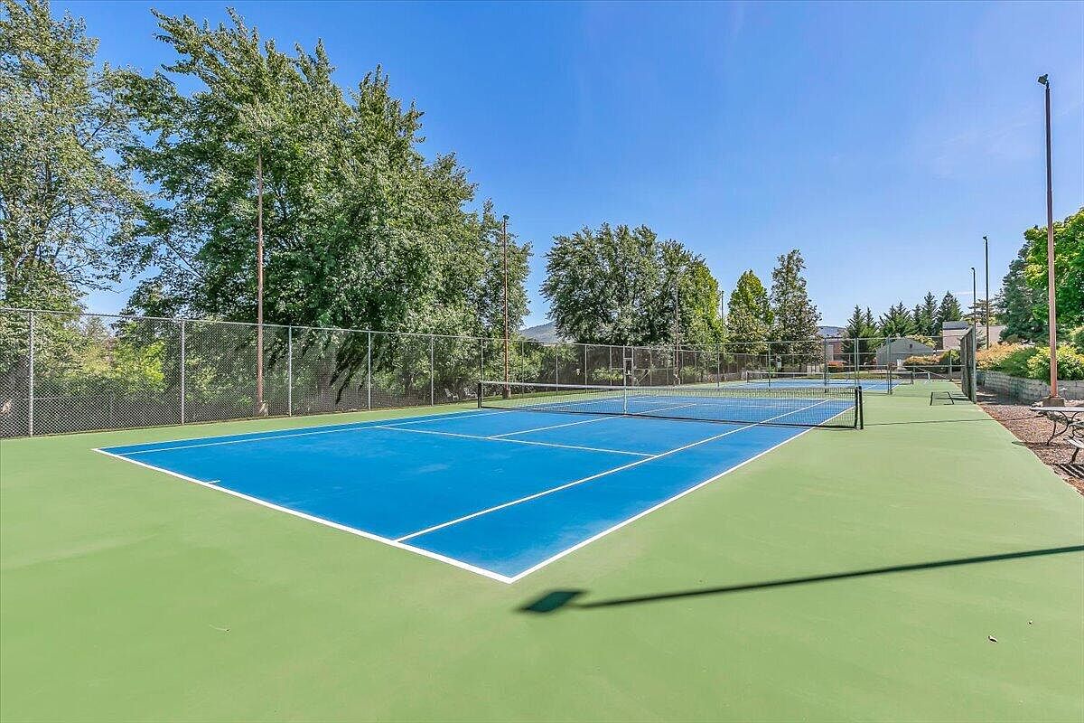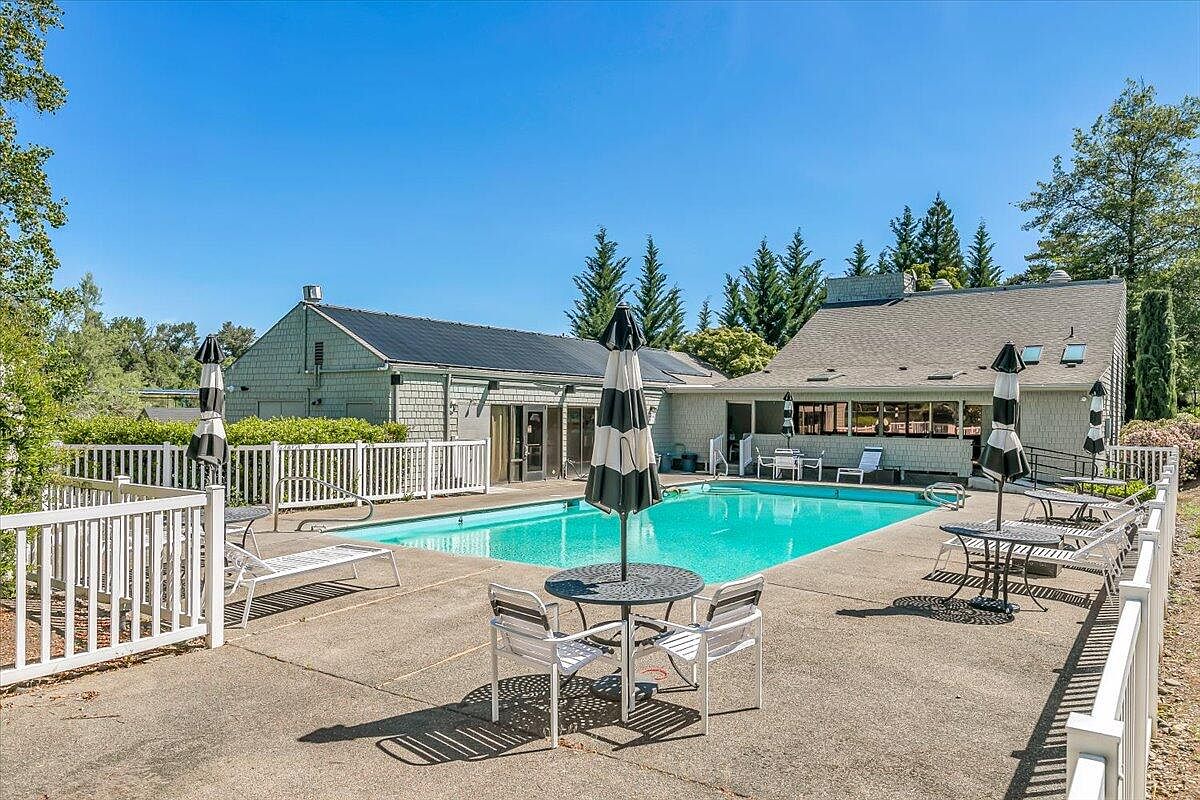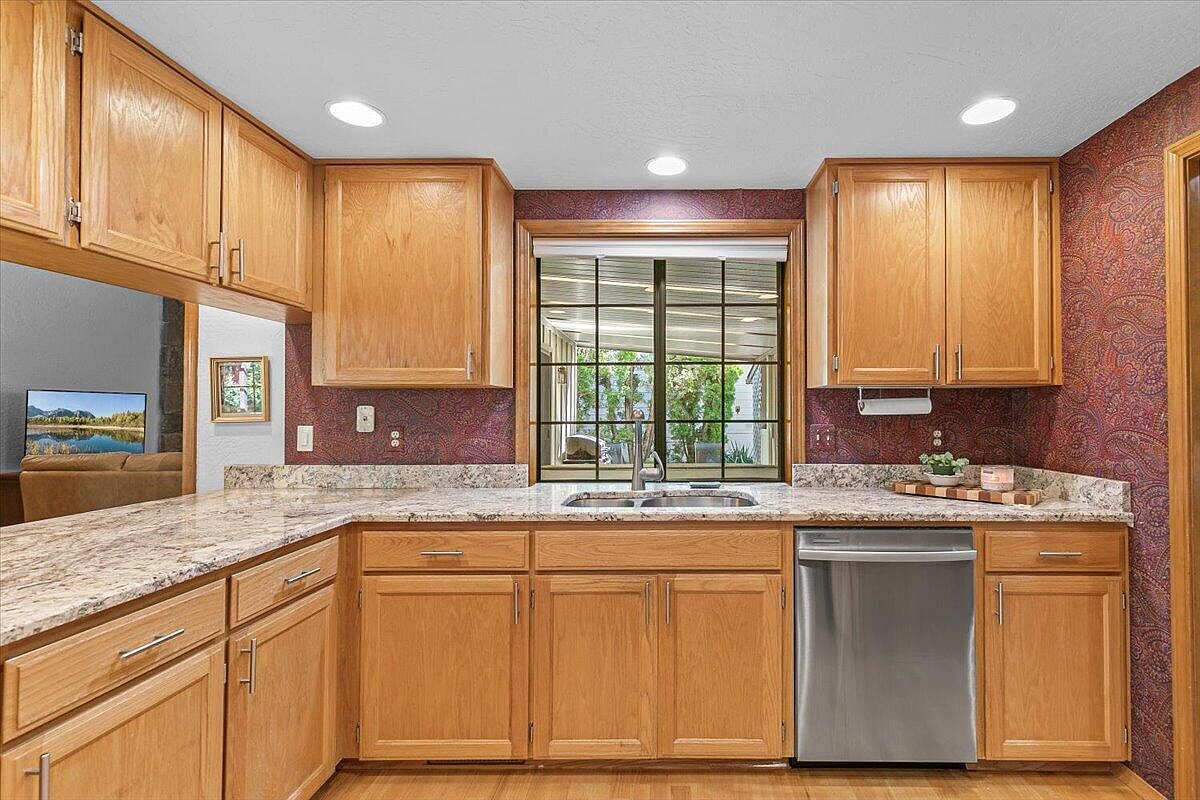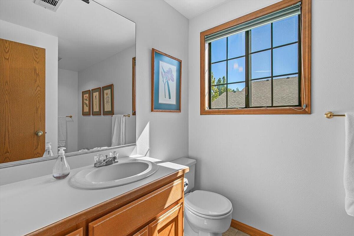 This beautifully maintained home is truly move-in ready—pride of ownership is evident throughout. Thoughtful updates and features include: stunning wood floors, fresh interior paint, updated light fixtures, formal living room with a cozy gas fireplace, vaulted family room with woodstove and access to a covered patio complete with hot tub, granite countertops in a spacious kitchen and stainless-steel appliances, formal dining room & new roof. The home offers flexible living with 2 primary suites—one upstairs and one downstairs—each with its own private bath. A third bedroom on the main level functions perfectly as a guest room or home office. Enjoy outdoor living with 2 private decks, surrounded by lush, mature landscaping. Additional highlights include an attached 2 car garage & access to top-tier community amenities: two swimming pools, a clubhouse, and tennis courts/ pickleball courts. Don't miss your chance to tour this gem in Sun Oaks—schedule your showing today!