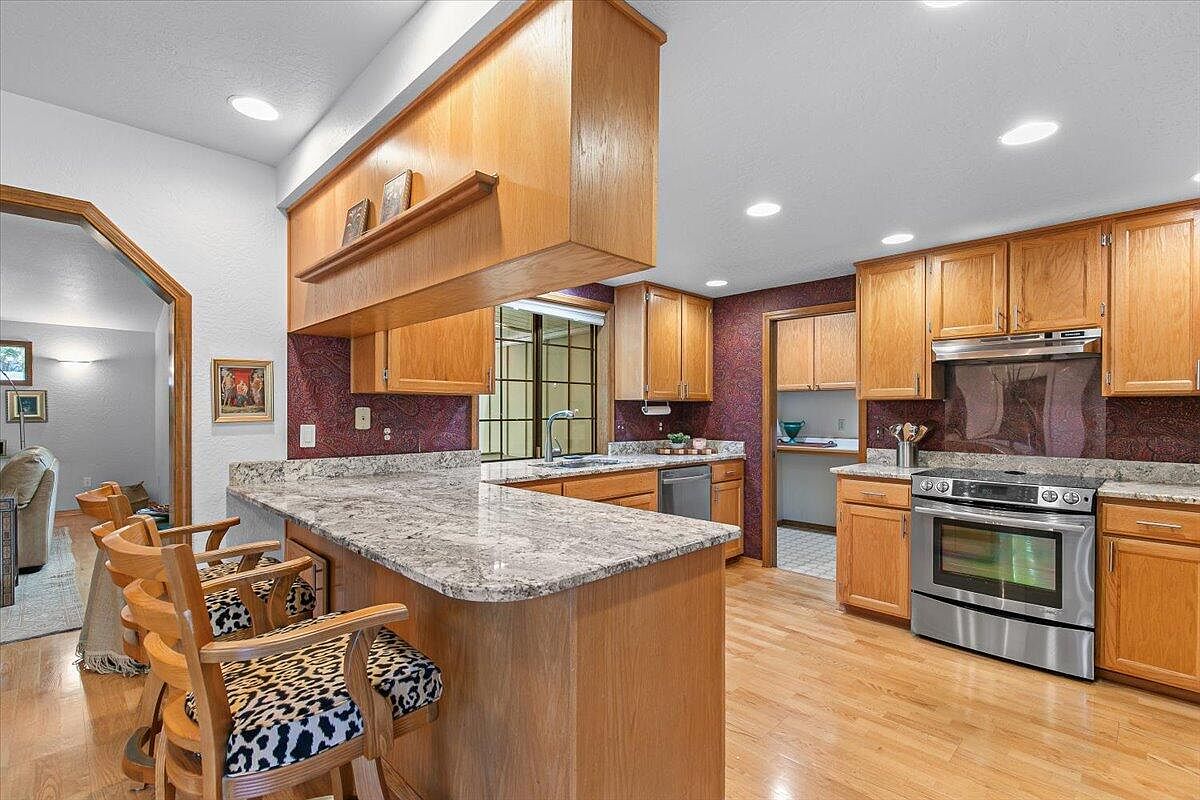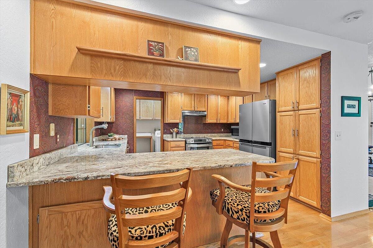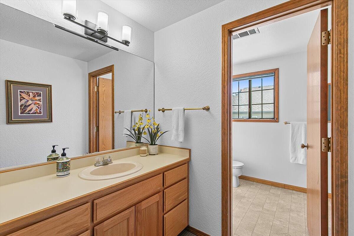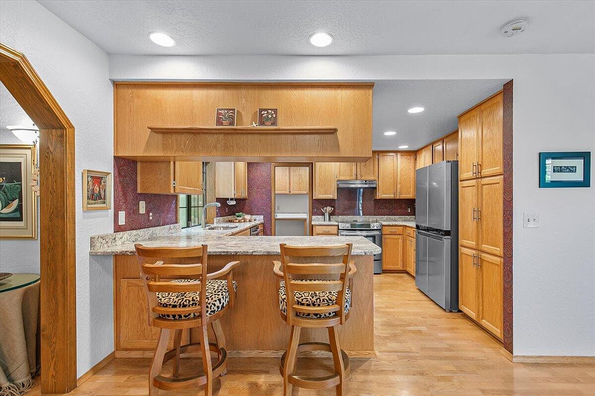 This beautifully maintained home is truly move-in ready—pride of ownership is evident throughout. Thoughtful updates and features include: stunning wood floors, fresh interior paint, updated light fixtures, formal living room with a cozy gas fireplace, vaulted family room with woodstove and access to a covered patio complete with hot tub, granite countertops in a spacious kitchen and stainless-steel appliances, formal dining room & new roof. The home offers flexible living with 2 primary suites—one upstairs and one downstairs—each with its own private bath. A third bedroom on the main level functions perfectly as a guest room or home office. Enjoy outdoor living with 2 private decks, surrounded by lush, mature landscaping. Additional highlights include an attached 2 car garage & access to top-tier community amenities: two swimming pools, a clubhouse, and tennis courts/ pickleball courts. Don't miss your chance to tour this gem in Sun Oaks—schedule your showing today!