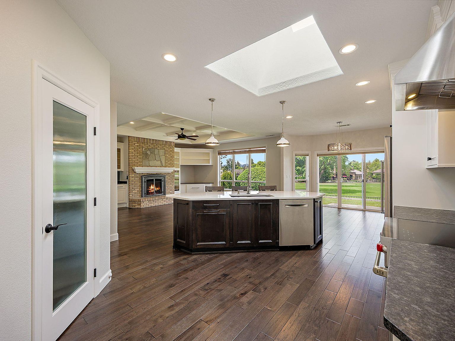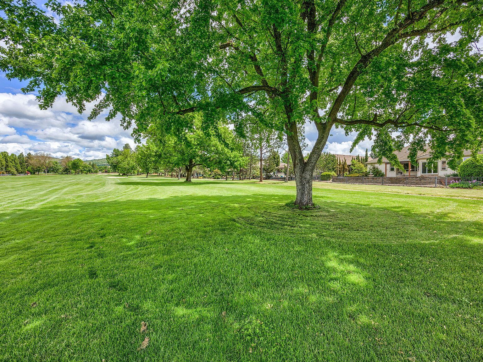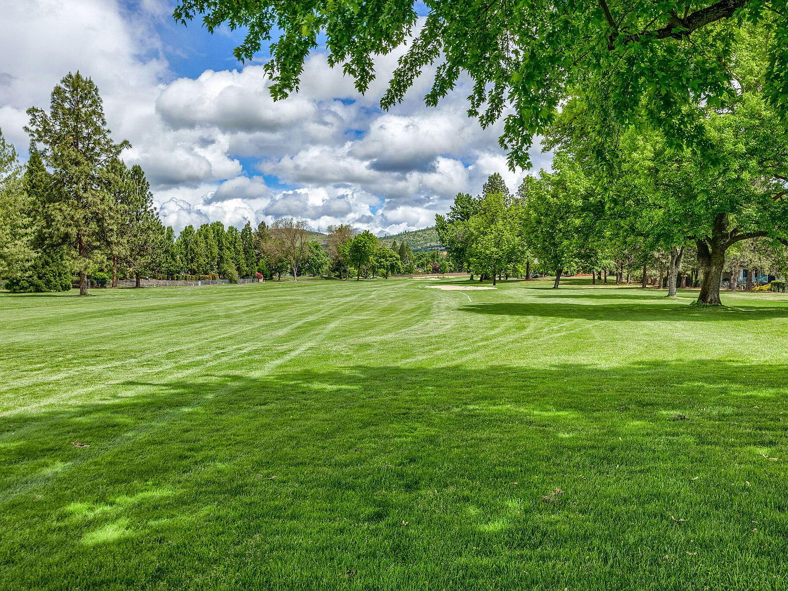 Golf course property! Rare Opportunity to live on the 8th Fairway of Rogue Valley CC. High-end, custom-built Pagnini home with single-level, split floor plan. 3 beds, 2.5 baths, office, dining, living room w/ natural gas fireplace, family room open to kitchen w/ natural gas fireplace, Indoor Laundry w/sink & storage. Modern design w/ soaring ceilings & skylights for natural light. Gourmet kitchen w/ island, Wolf gas range/induction oven, built-in fridge, Bosch dishwasher, walk-in pantry, soft-close cabinets w/ upper/lower lighting. Tastefully Updated w/ leathered granite & quartz counters, crown molding, coffered ceilings, wood floors. Primary suite features dual-head shower, soaking tub, double sinks & walk-in closet. Backyard ideal for entertaining w/ covered patio, sun shade, mounted TV, ceiling fan, built-in bench seating & golf course views. Prime East Medford location near shopping, restaurants, hospital & medical offices.