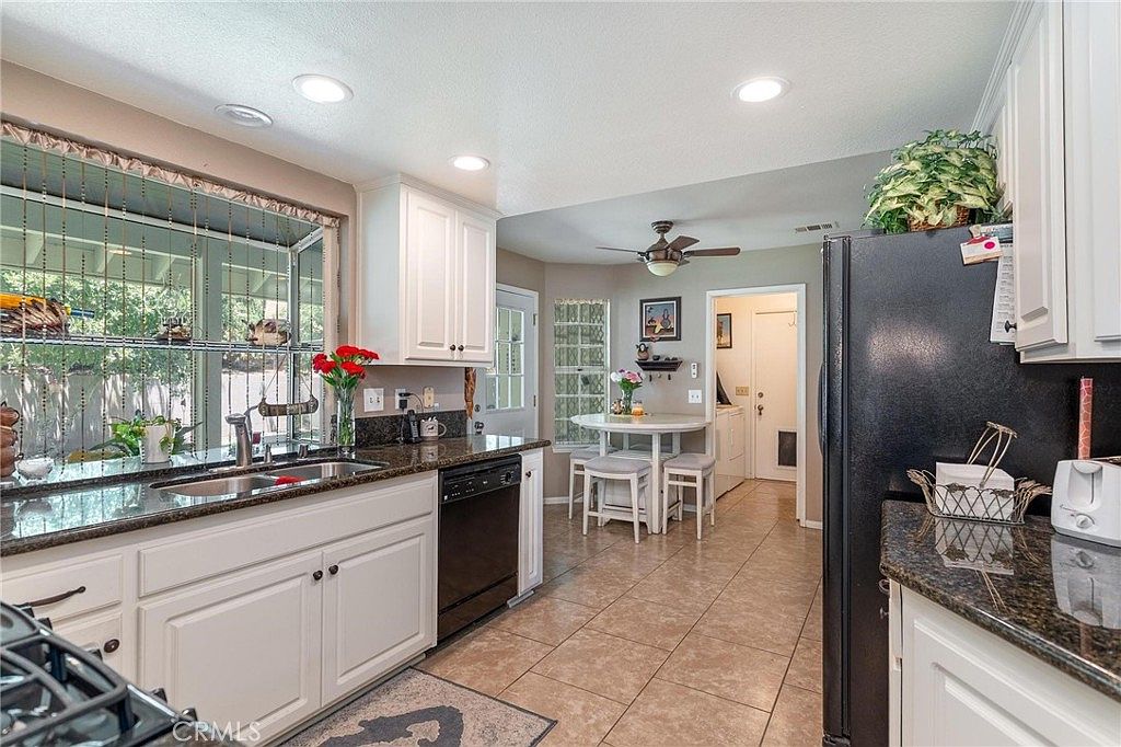 Inside, natural light fills the inviting family room, highlighted by a cozy brick-hearth fireplace. The remodeled kitchen is just steps away, featuring recessed lighting, an eat-in breakfast nook, and a picturesque garden window with tranquil backyard views.