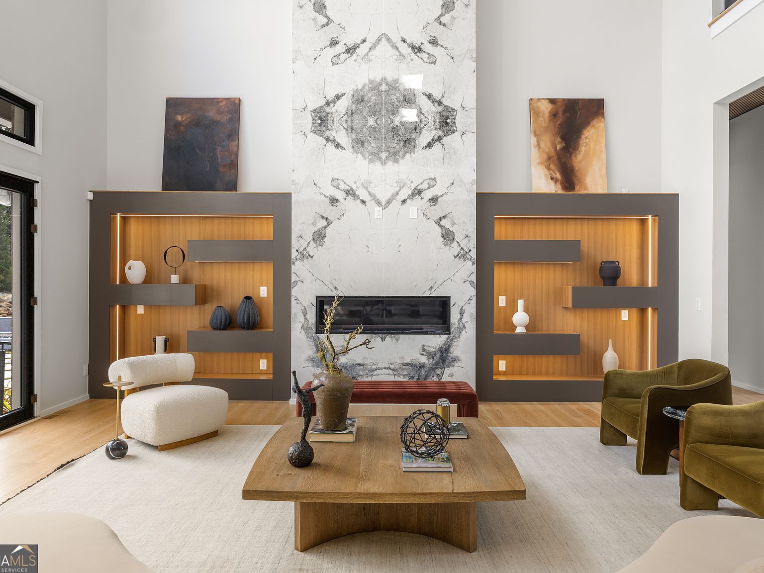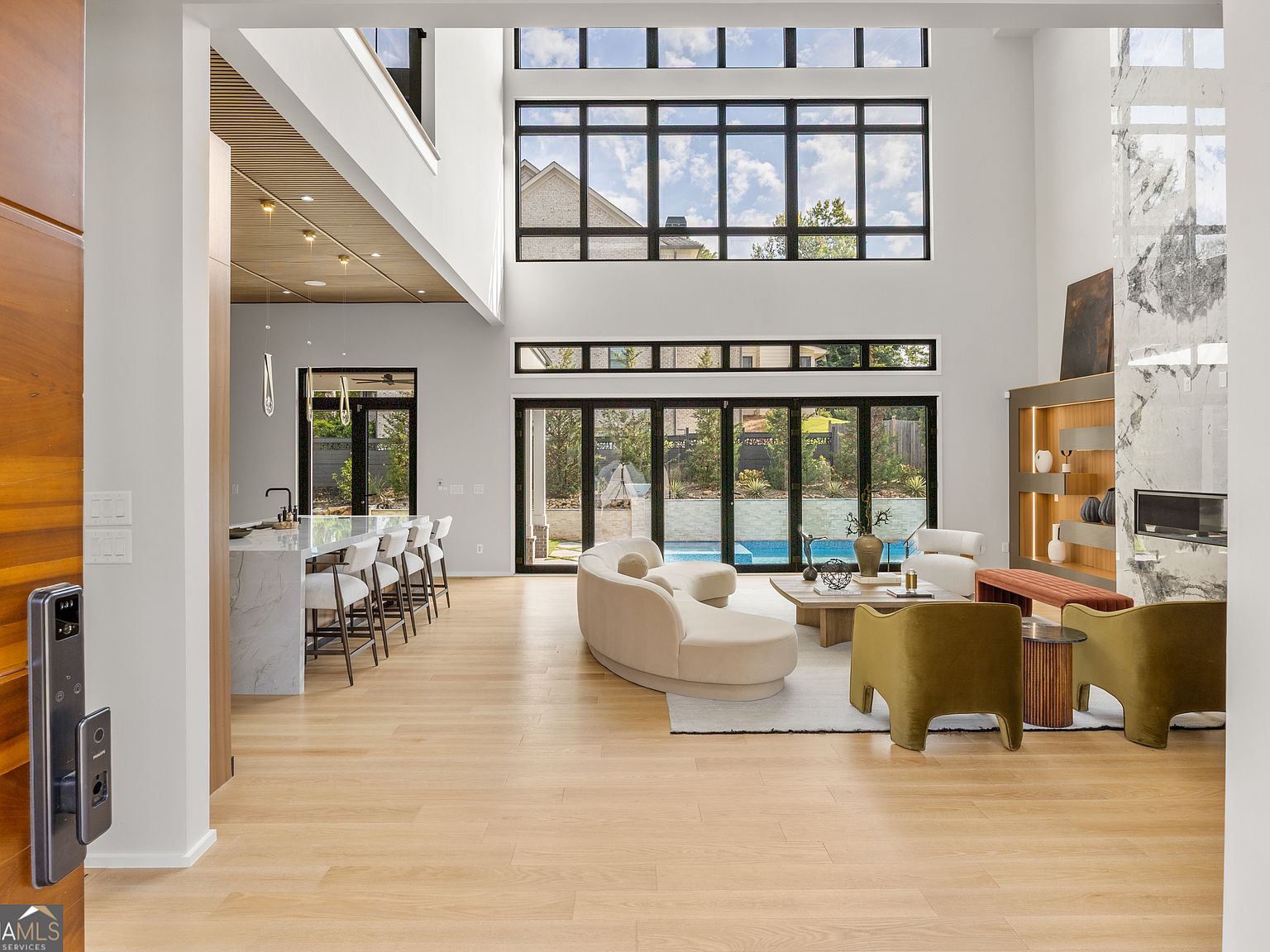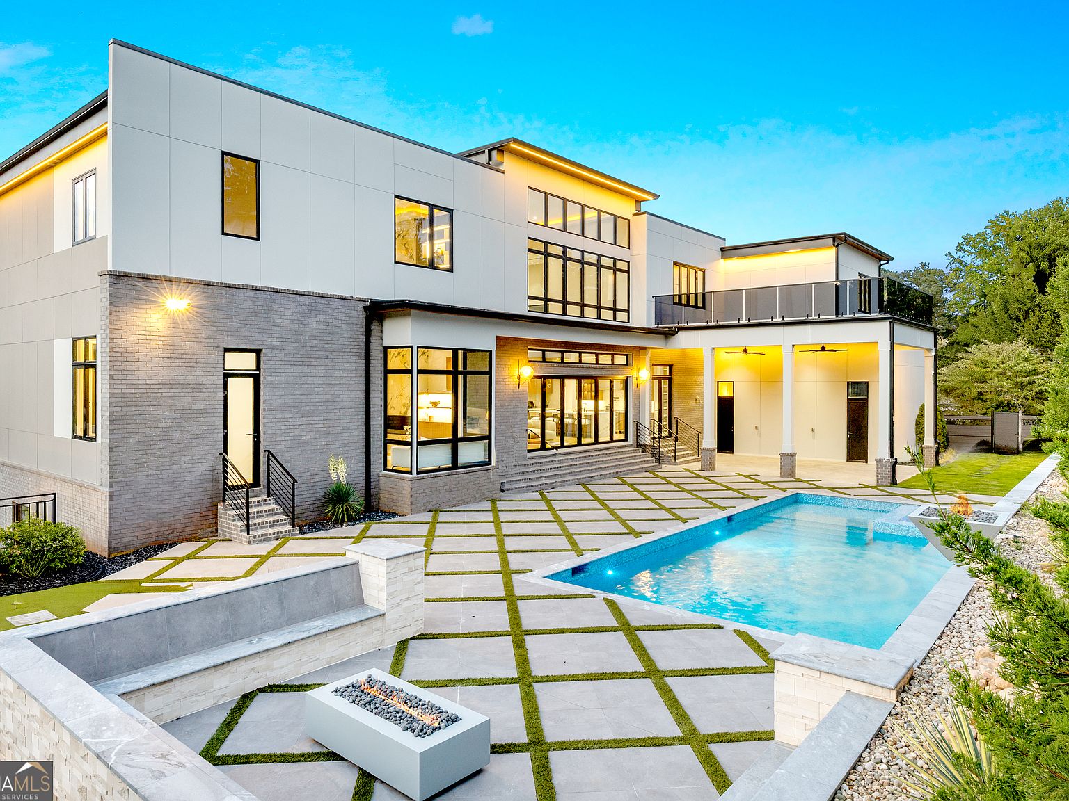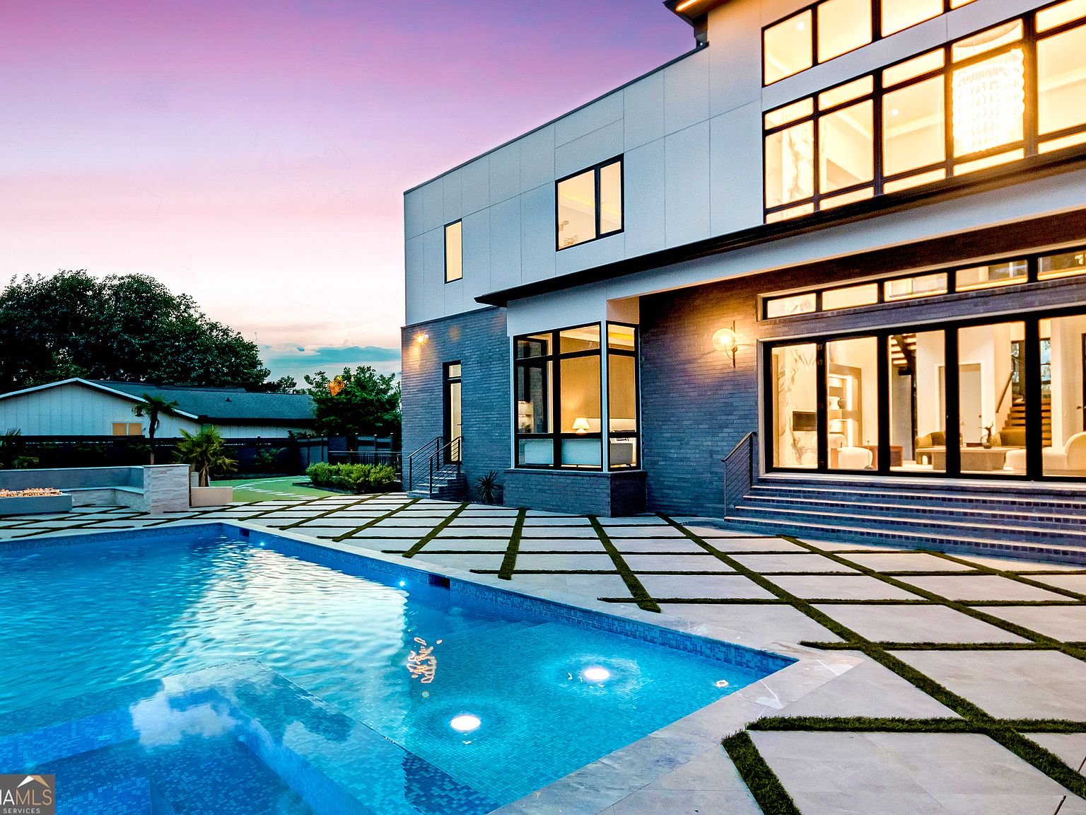 A modern masterpiece of distinction, 4232 Edgewood Court is nestled on a rare 0.75-acre corner lot-one of the largest within the prestigious Indian Hills Country Club-and located in the highly sought-after Walton High School district. Offering six bedrooms, seven full baths, two half baths, and approximately 9,200 square feet across three levels, this newly completed residence pairs sculptural architecture with a full suite of resort-style amenities. From its commanding curb appeal and manicured grounds to sleek casement windows with wood-look panels and curated architectural lighting, every detail reflects thoughtful design and modern luxury. Beyond the grand pivot door, soaring ceilings frame a dramatic foyer and family room where a floating steel staircase with motion-sensor lighting becomes the architectural centerpiece. Premium chandeliers, bespoke built-ins, and a striking fireplace set an atmosphere of elegance and sophistication. The state-of-the-art kitchen blends performance and artistry with custom cabinetry, quartzite waterfall countertops, acoustic wood panels, and commercial-grade appliances. A concealed scullery ensures effortless entertaining, while sleek nano accordion doors expand the living space seamlessly to the outdoors. The main-level primary suite serves as a private retreat, complete with bespoke closets and a lavish spa bath featuring a sculptural stone soaking tub, dual vanities, and designer finishes. Upstairs, the secondary suites are equally impressive, each generously scaled with private en- suite baths. For convenience, two laundry rooms with custom cabinetry are located on both the main and upper levels. Everyday ease is further enhanced by a three-stop elevator and an expansive four-car garage. The finished terrace level lives like a private club, showcasing a temperature-controlled wine cellar, media lounge, state-of-the-art glass-enclosed gym, fully equipped sauna, powder room, and a beautifully appointed guest suite that opens to a tranquil courtyard. Outdoors, the home transforms into a private resort. A saltwater pool with integrated spa and dramatic waterfall feature anchors the backyard, complemented by a cabana, fire pit, and lush green lawns. The setting is both intimate and expansive, designed for gathering, relaxation, and year-round enjoyment. Indian Hills Country Club offers a lifestyle as remarkable as the home itself, with a 27-hole golf course, newly renovated clubhouse, eight tennis courts, and three pools-all moments from shopping, dining, parks, and both public and private schools. A rare convergence of modern architecture, curated amenities, and resort-style living-4232 Edgewood Court is more than a home, it is a private retreat in one of East Cobb's most prestigious enclaves.