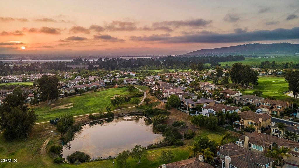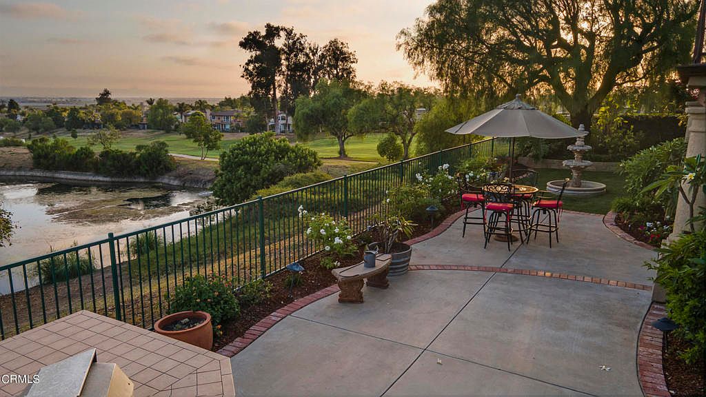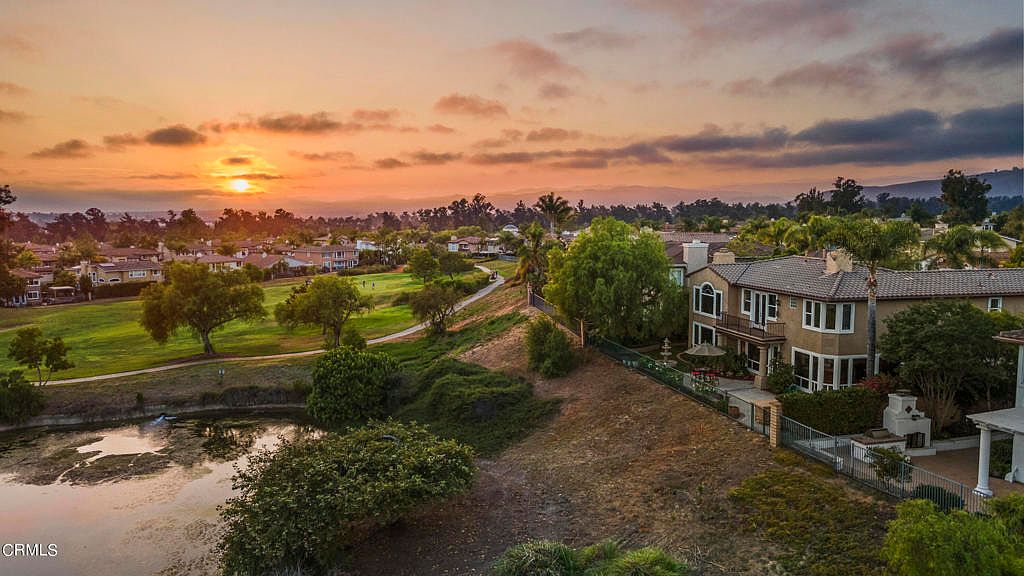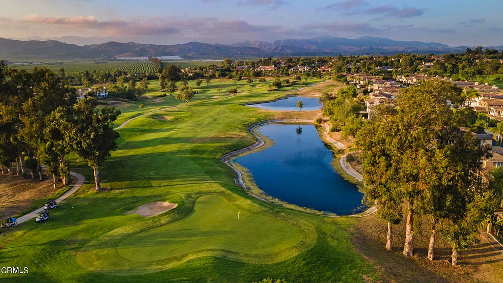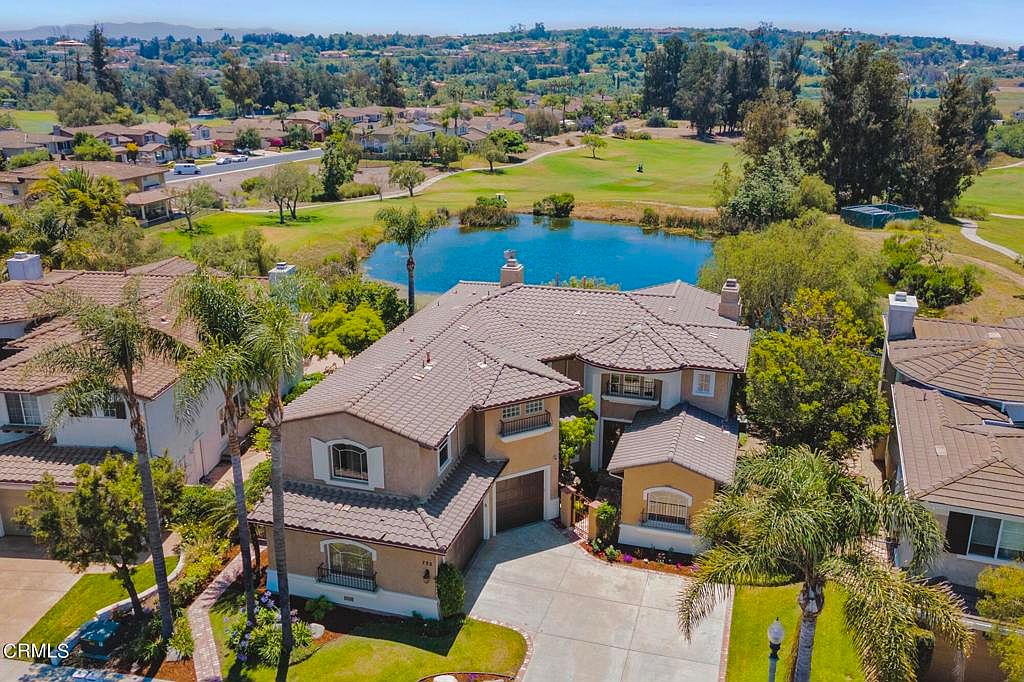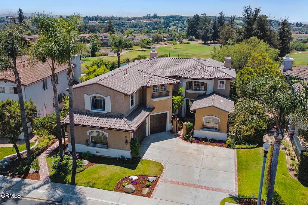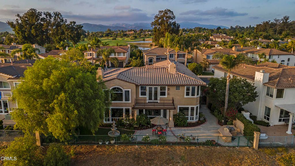 Elegant Masters Plan 2 home in the highly desirable, gated, golf course community of Sterling Hills with beautiful elevated views of the 17th and 18th fairways, Spanish Hills, the city lights of Oxnard, and the Channel Islands. Soaring ceilings and oversized windows gives an abundance of light. Desirable downstairs bedroom/optional office with full bathroom and courtyard access. Spacious master bedroom with huge walk-in closet with organizers,his & her sinks, jacuzzi tub, and balcony off the bedroom. Every bedroom has its own full bathroom. the 5th bedroom at the end of the hall is almost like another master bedroom. The home features many upgrades including granite counters & kitchen island, wood, travertine and tile flooring, upgraded fixtures, custom paint, crown moldings, built-in entertainment center that is wired for surround sound, alarm system, and more. There is a huge 3-car garage with a Life Souce soft water system & built-in cabinets. Located in one of the top 8 locations with amazing southwesterly views of the golf course and all the way out to the ocean. This home is VERY clean and has so many wonderful features. Your clients will love this home.