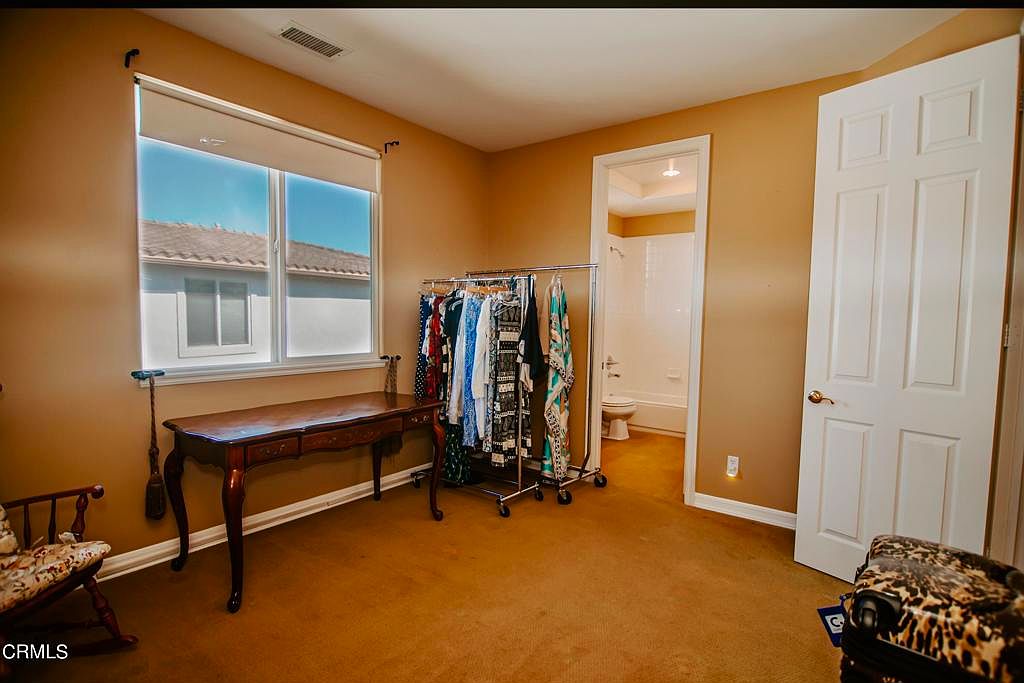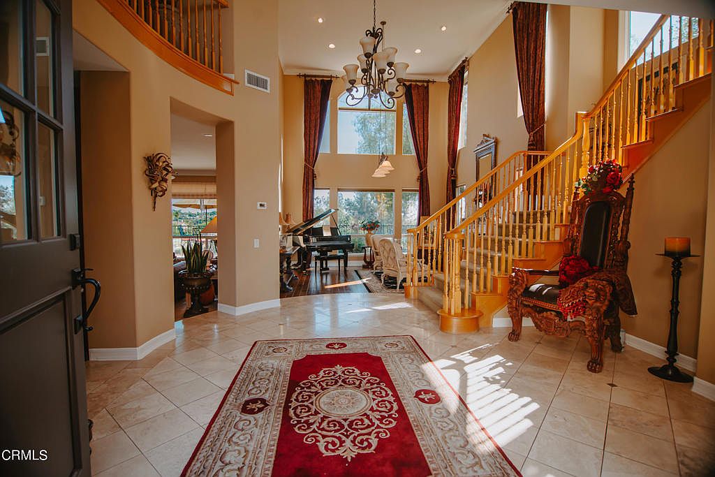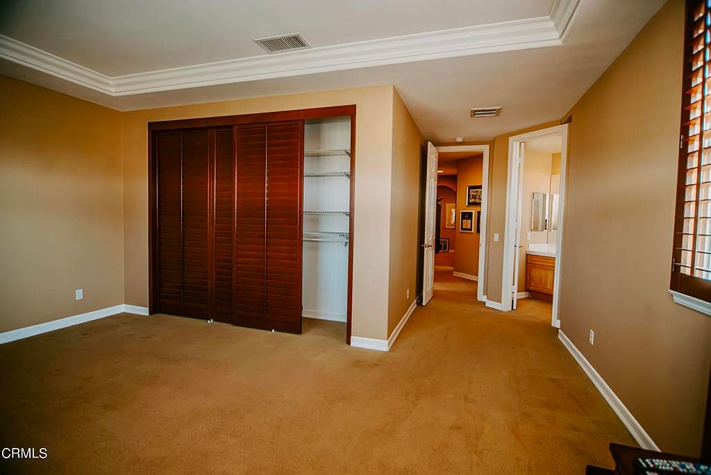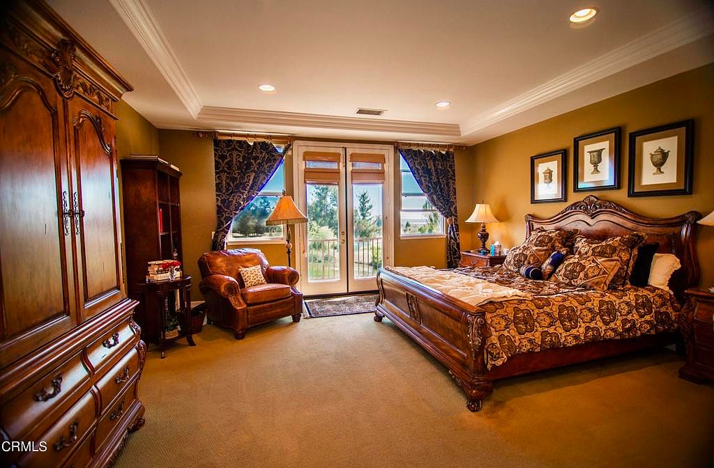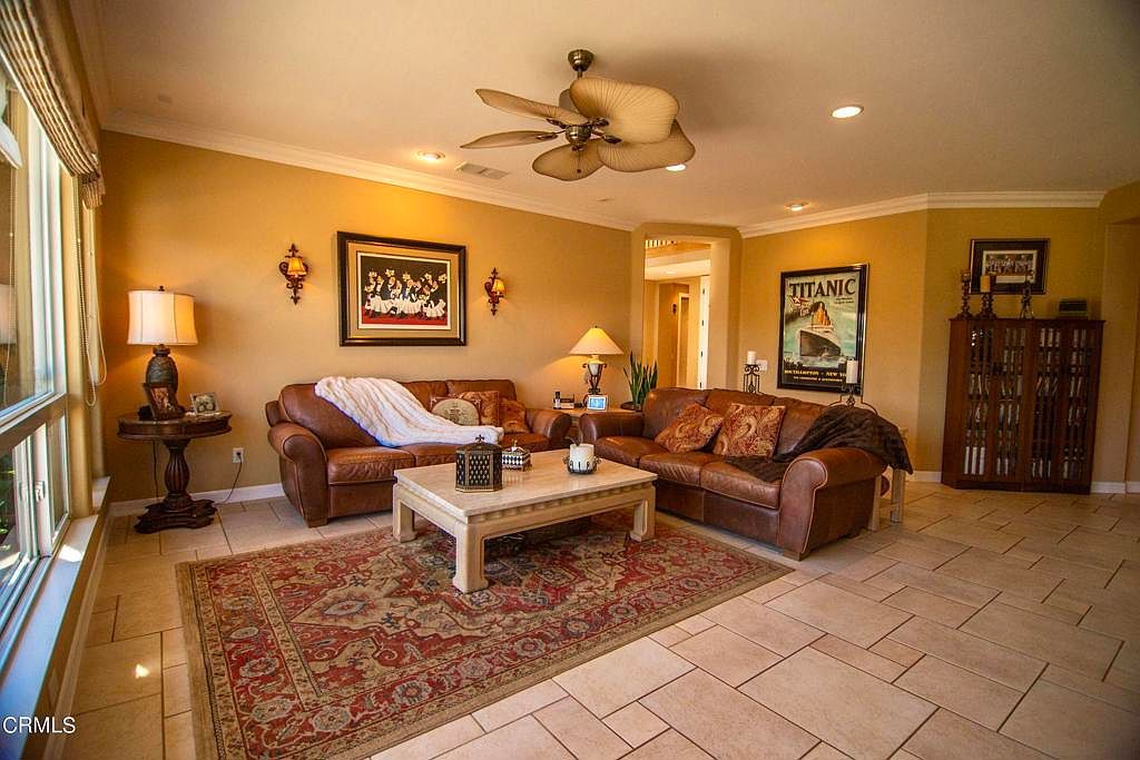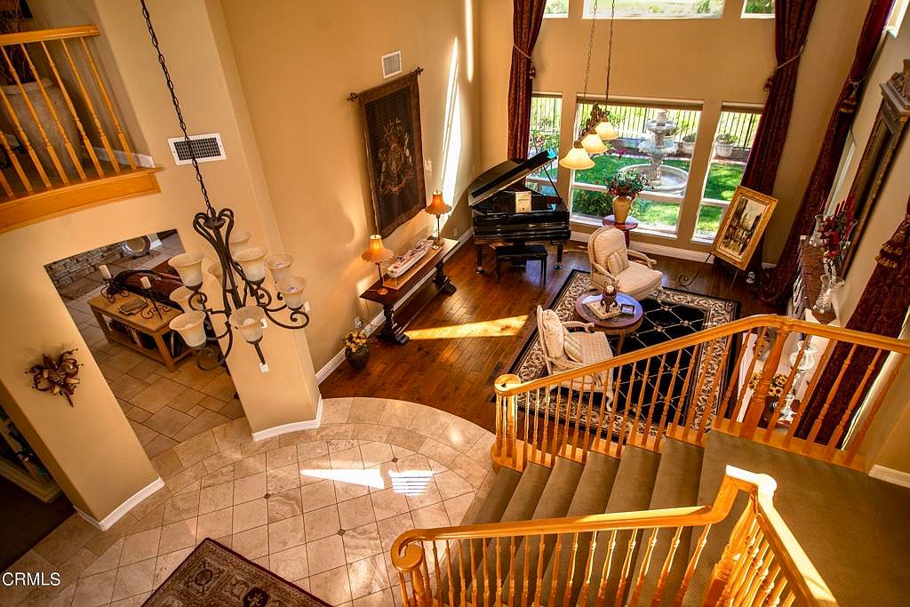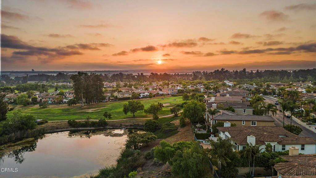 Elegant Masters Plan 2 home in the highly desirable, gated, golf course community of Sterling Hills with beautiful elevated views of the 17th and 18th fairways, Spanish Hills, the city lights of Oxnard, and the Channel Islands. Soaring ceilings and oversized windows gives an abundance of light. Desirable downstairs bedroom/optional office with full bathroom and courtyard access. Spacious master bedroom with huge walk-in closet with organizers,his & her sinks, jacuzzi tub, and balcony off the bedroom. Every bedroom has its own full bathroom. the 5th bedroom at the end of the hall is almost like another master bedroom. The home features many upgrades including granite counters & kitchen island, wood, travertine and tile flooring, upgraded fixtures, custom paint, crown moldings, built-in entertainment center that is wired for surround sound, alarm system, and more. There is a huge 3-car garage with a Life Souce soft water system & built-in cabinets. Located in one of the top 8 locations with amazing southwesterly views of the golf course and all the way out to the ocean. This home is VERY clean and has so many wonderful features. Your clients will love this home.