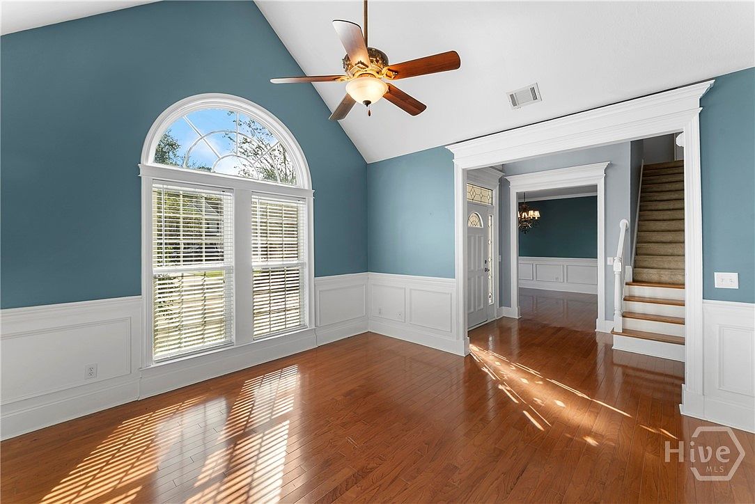 SELLER MOTIVATED. BRING ALL OFFERS ! This stunning home features engineered wood floors throughout the main living areas and a flexible layout with a spacious living room, or office and a formal dining room accented with chair rail trim. The inviting family room includes built-in bookcases and a gas fireplace, opening to a bright tiled kitchen with ample white cabinetry, a granite island with built-in cooktop, and stainless-steel appliances including a large refrigerator, dishwasher, and microwave. A large closet off the kitchen provides additional pantry or storage space.