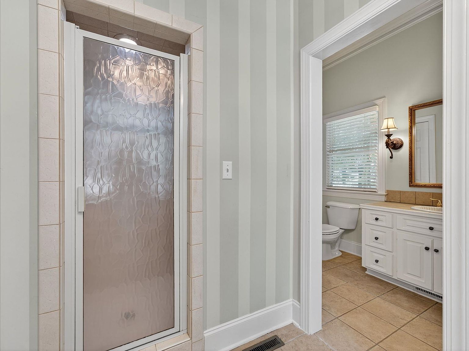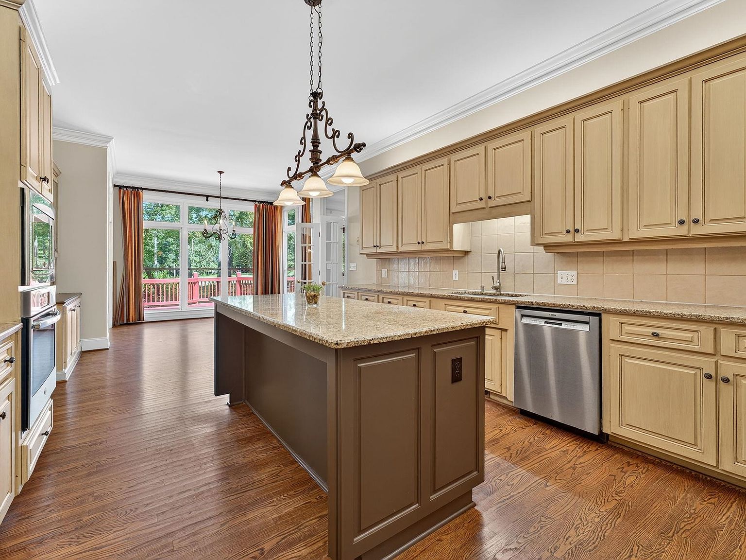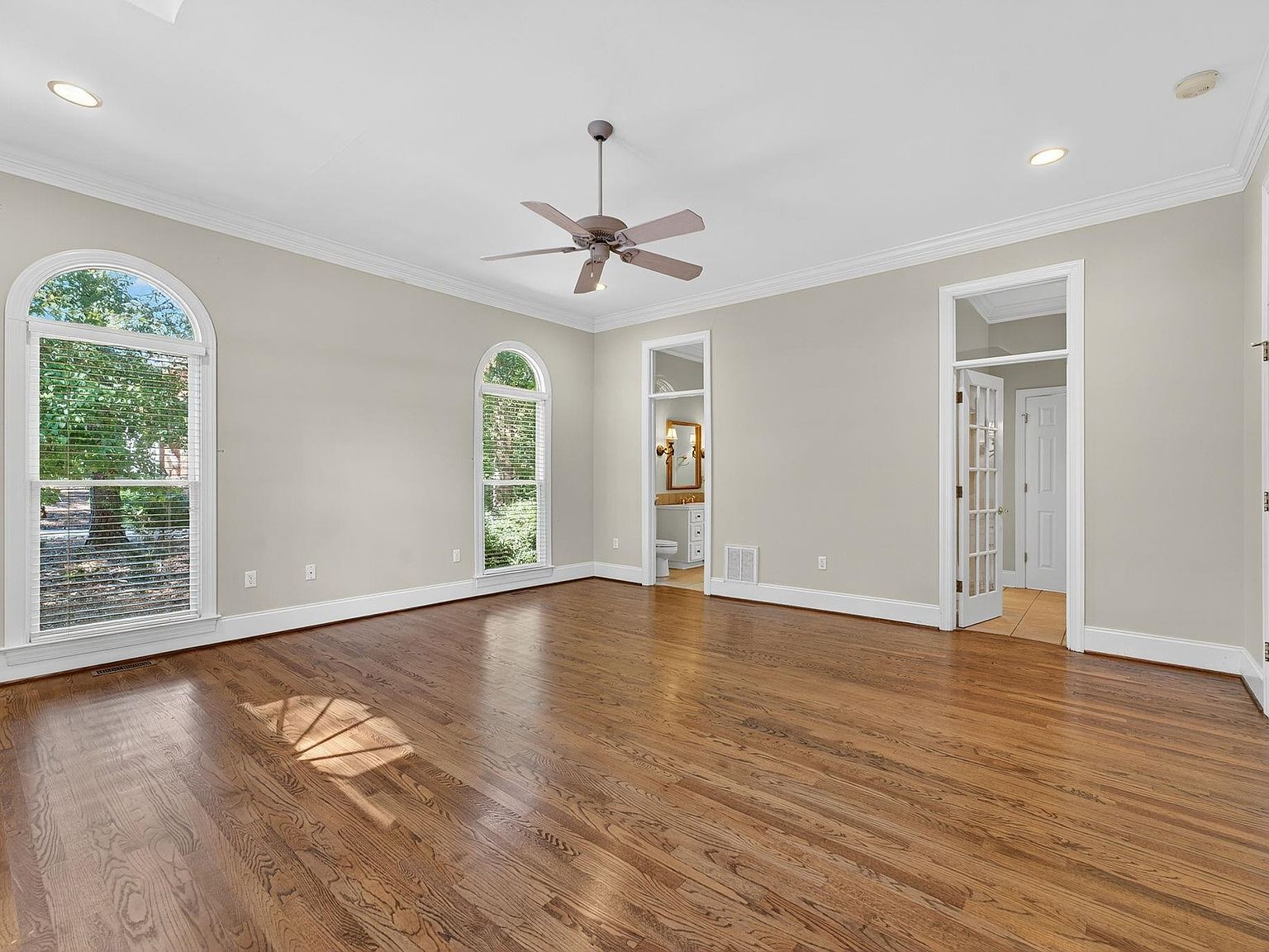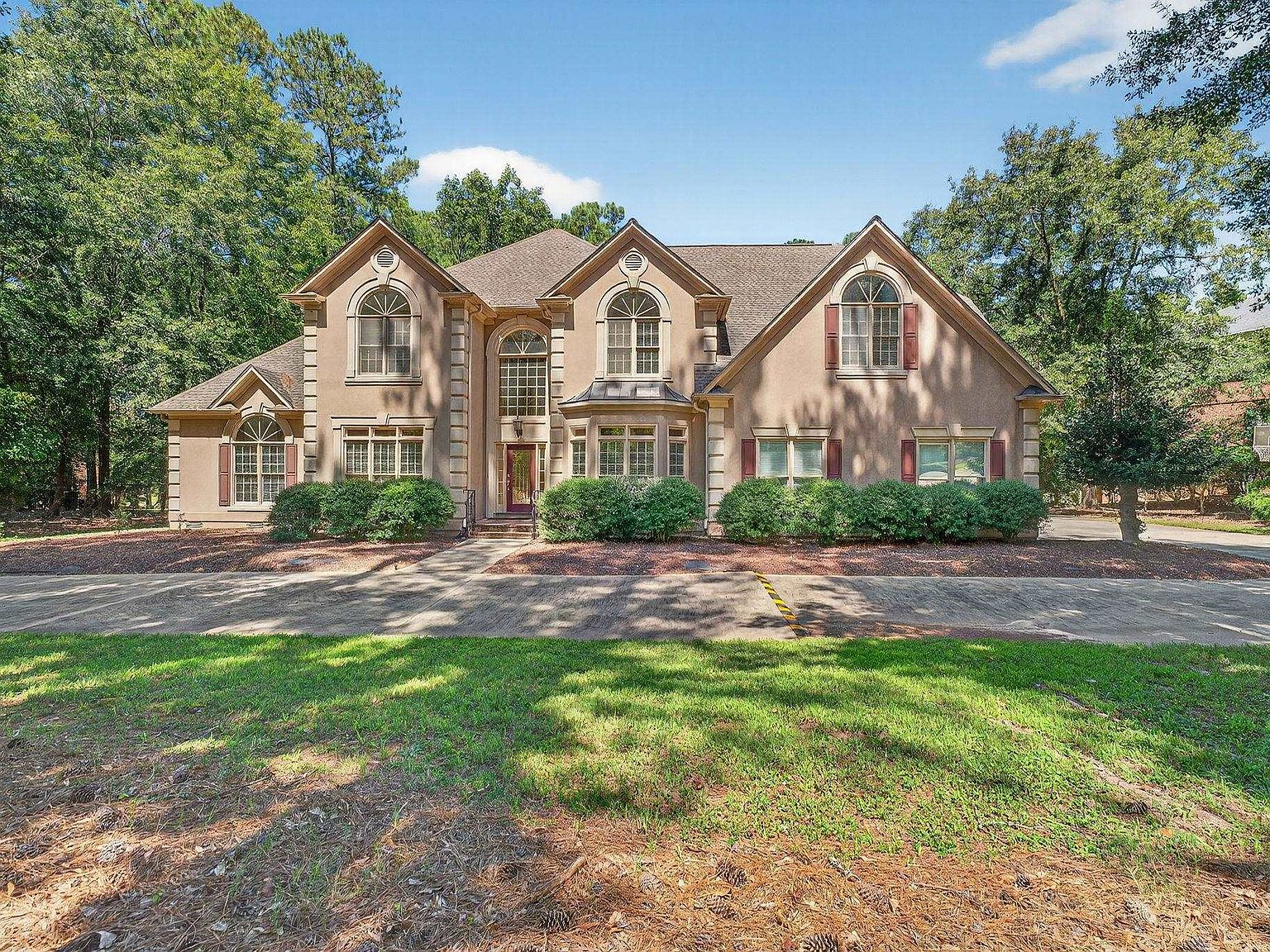 Welcome to refined luxury living in the prestigious Carolina Country Club! Nestled within a gated and 24/7 guarded community, this exceptional 5-bedroom, 4.5-bath estate offers over 5,000 square feet of timeless elegance, perfectly positioned along the 13th hole of the golf course. Step inside and be greeted by gleaming hardwood floors and a grand, open layout. To your right, a stately dining room easily accommodates 12+ guests, ideal for hosting unforgettable dinner parties. To the left, a cozy den offers the perfect setting for a private library or your Baby Grand piano. The heart of the home unfolds in the spacious living room, where a double-sided fireplace connects seamlessly to the light-filled sunroom. With soaring ceilings and walls of windows, the sunroom opens to a deck that overlooks the rolling fairways—an ideal backdrop for entertaining or quiet relaxation. The expansive kitchen is a chef’s dream, featuring granite countertops, stainless steel appliances, abundant cabinetry, and generous prep space for all your culinary creations. The main-level primary suite is a true retreat, complete with dual walk-in closets and separate his-and-hers bathrooms for the ultimate in comfort and privacy. Upstairs, you’ll find four additional bedrooms, including two with en suite bathrooms and two sharing a convenient Jack-and-Jill bathroom. An office with built-in bookcases provides the perfect work-from-home environment. Above the extended three-car garage, a spacious recreation room awaits—perfect for a pool table, game nights, or a workout studio. A set of back stairs offers easy access to the kitchen and rear entry, enhancing the home’s thoughtful design. Living here means more than owning a beautiful home—it’s a lifestyle. Enjoy golf, tennis, pickleball, swimming, fine dining at the Clubhouse, wine tastings, and a vibrant social calendar—all within your own neighborhood. This immaculate property combines classic sophistication with modern comfort, making it a rare opportunity in one of the area’s most sought-after communities. Schedule your private tour today and experience Carolina Country Club living at its finest!