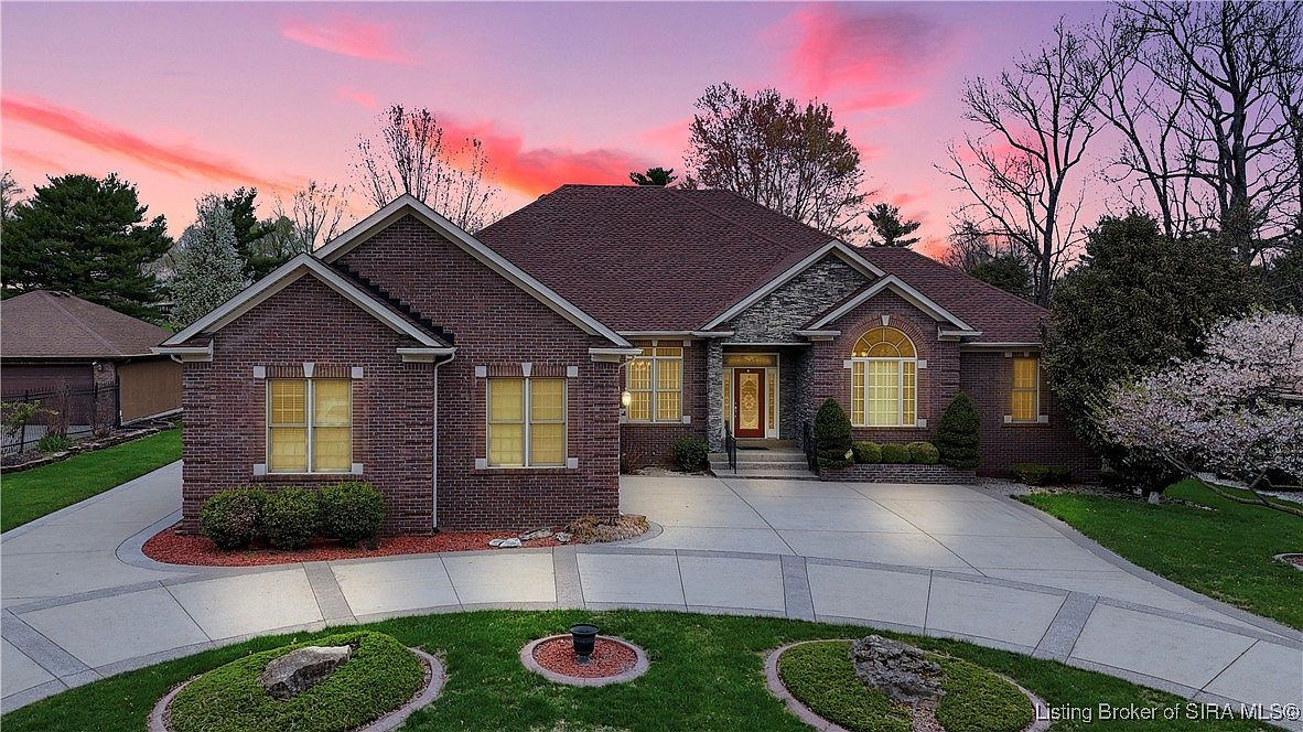 Square footage like this doesn't come along often...Discover the perfect blend of luxury, comfort and breathtaking GOLF views in this CUSTOM 3200 sq. ft. All-brick RANCH. The moment you walk into the foyer with inlaid hardwood floors you are immediately drawn to the expansive views of the golf course from the large vaulted Great Room with custom built-ins, gas fireplace, wet bar, and crown molding. The kitchen is flooded with natural light and the views continue. The kitchen is a chef's dream featuring custom cabinets, double oven, warming drawer, gas cooktop and is perfect for entertaining. The home features a formal dining room, 4 bedrooms and 2 1/2 baths on the main level. Retreat to the primary bedroom with a sitting room and en-suite bath, featuring double sinks, jetted tub, walk in shower, 2 large closets. The lower level offers a sprawling living room with a full bathroom and large cedar closet. Tall ceilings throughout the home. Outdoors, enjoy the continued views of the golf course with a large Trex deck with water feature. Additional items: RV hookup, security system, roof approx. 2 years old, 2 new hot water heaters, central vacuum, interior safe, utility garage and sump pump with water backup. The home is conveniently located to shopping, restaurants and interstates. This is an EXCEPTIONAL opportunity to own a golf course property with UNMATCHED upgrades and views.