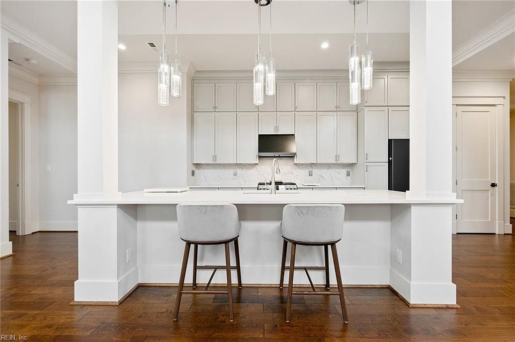 This stunning luxury home, located within the prestigious Kingsmill Resort, offers unparalleled elegance and sophi8stication. Set against the backdrop of a scenic golf course, the property boasts breathtaking views that can be enjoyed from nearly every room. As you step inside, you're immediately struck by the grandeur of the soaring cathedral ceilings which create a sense of openness and light. The open nconcept living space is designed with meticulous attention to detail, featuring high end finishes, custom millwork and large windows that flood the home with natural light. The gourmet kitchen is a chef's dream, quartz countertops and a spacious island, ideal for both meal preparation and casual entertaining. The outdoor living spaces are equally impressive with a large porch overlooking the lush greens of the golf course. Whether hosting guests or enjoying a quiet moment, the backyard provides the ideal setting for relaxation and entertainment.