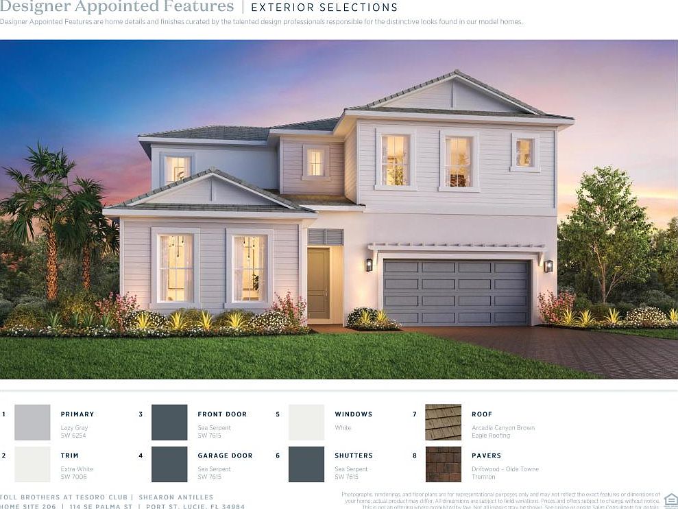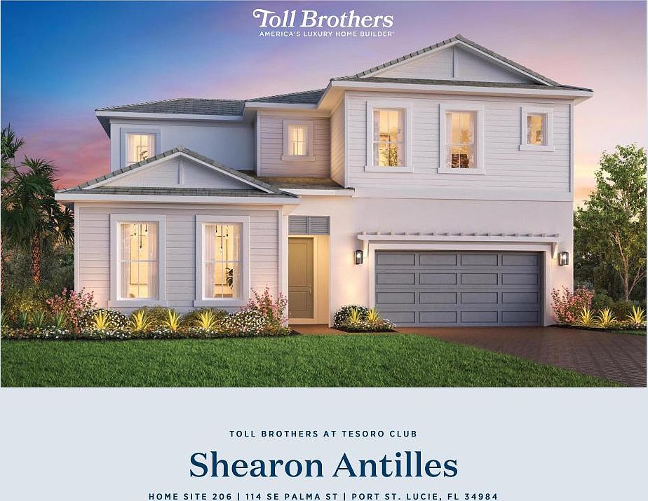 The Shearon Antilles home offers 3,636 sq ft. featuring four bedrooms, three full baths, and one half bath. The elegant foyer leads to an open-concept design with a spacious great room highlighted by a sophisticated tray ceiling and views to the expansive covered lanai with tranquil preserve views. Luxury vinyl plank flooring runs throughout the main living areas, primary suite, and upstairs loft. The gourmet kitchen includes a large center island with breakfast bar, wraparound countertops, and a spacious casual dining area. The first-floor primary suite offers a tray ceiling, dual walk-in closets, and a spa-like bath with soaking tub, oversized shower, dual vanities, and private water closet. An oversized secondary en-suite bedroom is ideal for guests. On the second floor, two additional bedrooms share a dual-sink bath. A custom pool completes this elegant retreat, for you to enjoy the Florida lifestyle right in your backyard. Disclaimer: Photos are images only and should not be relied upon to confirm applicable features.