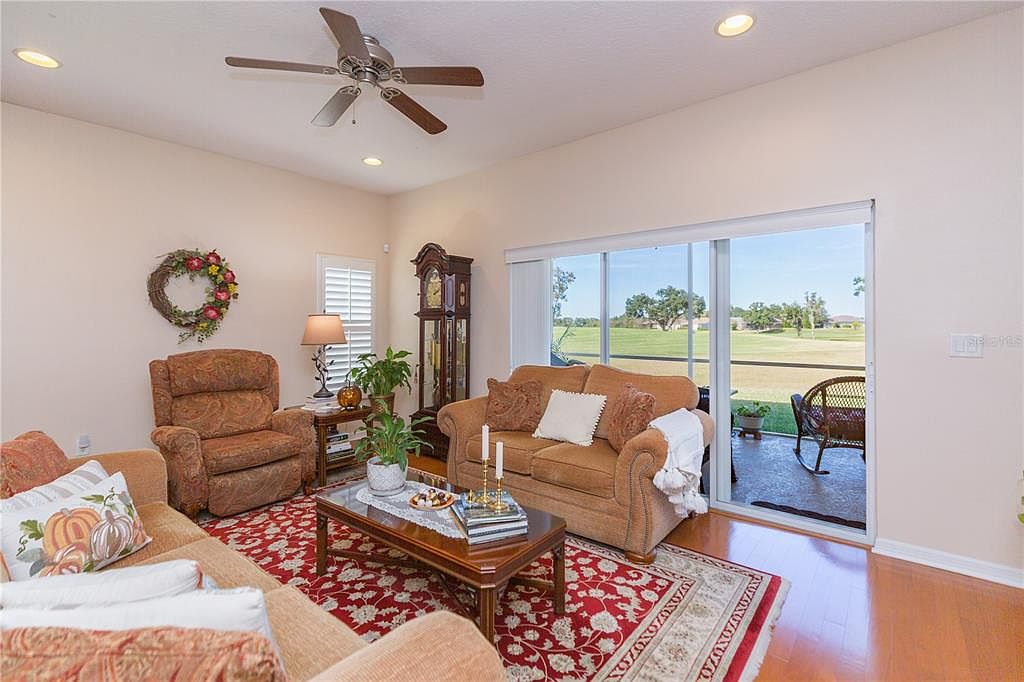 Welcome to Diamond Hill, Valrico’s premier gated golf course community, where elegance, convenience, and resort-style living come together. This well thought out Ryland St. John model home was built in 2005 and has been meticulously maintained. It is perfectly placed on a beautifully landscaped lot overlooking the scenic eighth hole of the Diamond Hill Golf Course. The outside has exceptional curb appeal which is made even more impressive by a brand-new roof completed in 2025, fresh exterior paint, and lush, manicured grounds maintained by the homeowners’ association. Inside, graceful archways, soaring ceilings, and rich honey wood flooring create an immediate sense of warmth and flow. A flexible front room provides space for a private office or quiet sitting area, while the large dining room offers the ideal setting for formal entertaining or casual family dining beneath a contemporary chandelier. The chef-inspired kitchen is both functional and inviting, featuring solid wood cabinetry, Corian countertops, recessed lighting, a large center island with long bar seating, and a spacious corner pantry. The adjoining breakfast nook creates a cozy space for casual meals and easy conversation. The expansive great room is pre-wired for surround sound and opens through double sliding glass doors to a large screened lanai, which has been pre-plumbed for an outdoor kitchen. This tranquil retreat invites year-round gatherings with friends and family while enjoying sweeping views of the golf course. The luxurious primary suite continues the warm tones and natural light, offering oak wood floors, a huge walk-in closet, and a private bath with double-sink vanity, ceramic tile flooring, and a glass-enclosed shower. Two additional guest bedrooms have large closets and share a guest bathroom which includes a tub/shower combination. Every update has been thoughtfully selected for ease of living, including a Trane 14 SEER HVAC system with added UV light (2018), water heater (2020), plantation shutters (2020) and new interior paint (2023). Top of the line hurricane panels (2020) and Guardian Protection system for peace of mind. Residents of Diamond Hill enjoy a wealth of community amenities, from the 6,920-yard par-72 course designed by Chic Adams to a heated pool, pickleball and basketball courts, and a modern fitness center. On-site restaurant for a quick lunch after 9 or 18 holes adds to the memory making camaraderie of friends and neighbors. HOA-maintained landscaping ensures a worry-free lifestyle, perfect for busy families or retired folks who just want to relax and enjoy a simpler life. The community is pet-friendly and ideally located just 12 minutes from Brandon, which offers multitudes of restaurants, shopping and entertainment. There is quick access to I-75, the Crosstown Expressway, and top-rated schools are nearby. Tampa International Airport is only 40 minutes away, and Florida’s world-renowned beaches and Orlando’s attractions are within an hour’s drive. This exceptional home at Diamond Hill blends timeless design, modern convenience, and resort-inspired amenities—an opportunity to experience the best of Florida living in a setting you’ll love to call home. Relax, enjoy and meet new friends in this friendly community and at the nearby clubhouse. Love where you live!!