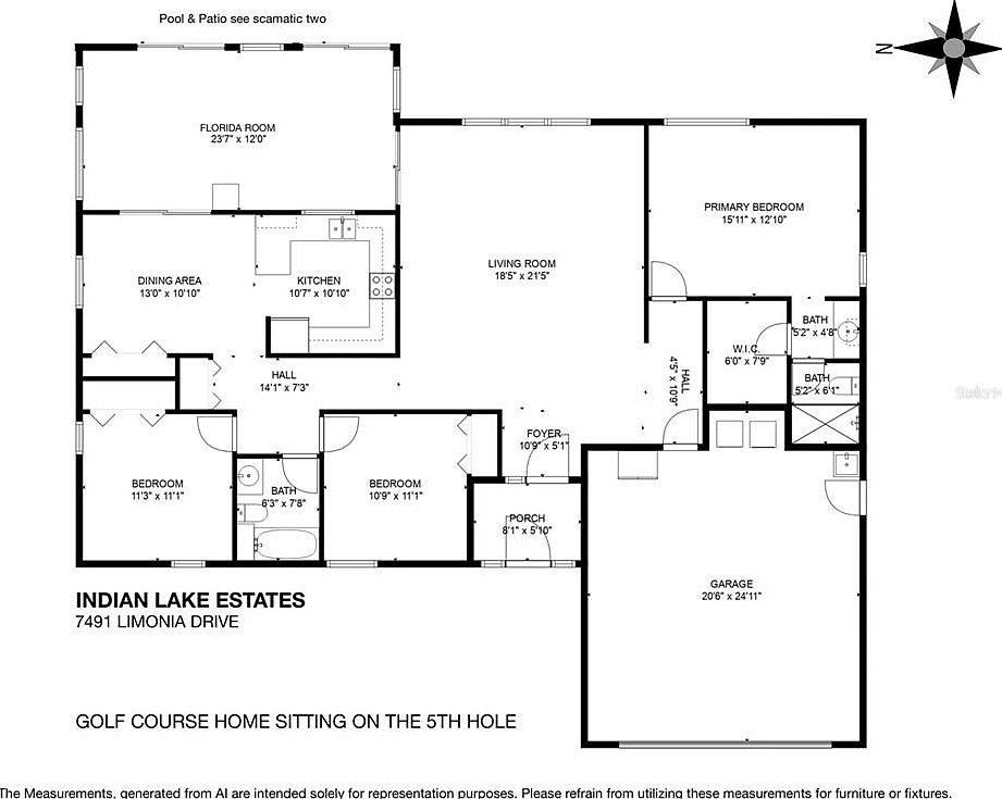 Awesome pool home in the lake and golf community of Indian Lake Estates, Polk County's best kept secret! This charmer is in a great location backing up to the golf course at hole number 5 and just a few minutes drive from the community clubhouse. There is also a golf course access just two lots down from the home! When you walk into this home, you will love the large living room and amazing views! Lots of natural light pours into the living room! The master bedroom has more than ample space and will accommodate all of your furniture pieces. The full ensuite bathroom and walk-in closet rounds out this space. On the other side of the home are two bedrooms and full guest bath. The layout offers space and privacy for family and friends. The kitchen has a serving window that opens out to the Florida room and sliders that also access the Florida room that provides a wonderful space to entertain! The pool and lanai area are screened and will sure to be a favorite gathering spot on those warm Florida days! Notable features and upgrades include a new metal roof installed in 2019, house painted in 2021, pool resurfaced and new salt system in 2021, new pool heater in 2022. The Florida room was updated in 2019 with new windows, sliding doors, ceiling fan and lights. Washing machine replaced in 2023, dryer in 2019. The hot water heater and garage door replaced in 2022. New guest bath toilet installed in 2023. The refrigerator replaced in 2022. The septic cleaned and pumped in 2023. When you are not enjoying this sweet home, Lake Walk In Water is just a 10-minute drive away where you can enjoy boating and fishing and the most magnificent sunsets while sitting on the longest fresh water pier in the State of Florida! If you want to enjoy Florida living at its best, this is where you want to invest! Located about 20 miles east of Lake Wales, the community surrounds the 7,500 acre lake locally known as Lake Walk In Water and considered to be one of the best fishing lakes in all Florida. The community has a beach, boat ramp, boat marina and pavilion. The pavilion is located at the front of the pier and is complete with propane grills and covered picnic tables. Amenities include an 18 and 9-hole golf course, basketball and tennis courts, playground, 23,000 sq.ft. clubhouse, cafe, post office, churches, library, fitness room and pro shop. If you love nature and the peace and quiet of the country you're in luck. Wildlife is plentiful! You will see deer, raccoon, turkey, turtles, eagles, cranes and various species of birds that call Indian Lake Estates their home. Orlando and Disney is only about an hour's drive north and Tampa, Busch Gardens, and the Gulf's pristine beaches only a little over an hour west. Historic Bok Tower, a National Landmark, is in nearby Lake Wales and the Westgate River Ranch Resort and Rodeo is just six miles away. An authentic Florida dude ranch and full-service resort offering guests the opportunity to experience "Old Florida." Enjoy camping, hiking, fishing and boating at Lake Kissimmee State Park. Come out and see how great life can be at Indian Lake Estates! Live the country life, experience the tranquility, but never be more than an hour away from it all.