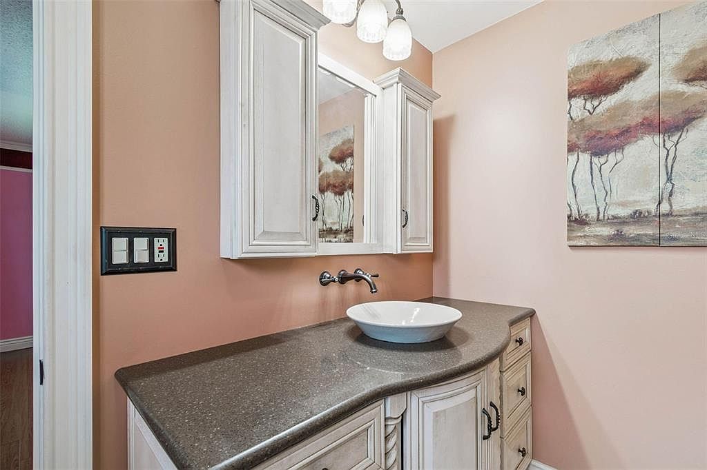 Welcome Home to Tamarac by the Gulf! Discover this beautifully renovated 2-bedroom, 2-bathroom Skipper model in the sought-after 55+ community of Tamarac by the Gulf. With nearly 1,600 sq. ft. of living space, this home has been thoughtfully transformed from top to bottom with meticulous attention to detail. Step inside to a spacious living room featuring wood-look laminate flooring, elegant crown molding with decorative corner blocks, and plenty of natural light. The formal dining area continues the refined look with a chair rail and custom trim work. At the heart of the home, the updated kitchen boasts stainless steel KitchenAid appliances, granite countertops, a tile backsplash, and wood cabinetry finished with crown molding and under-cabinet lighting — a perfect blend of function and style. The large rear family room offers additional space for relaxing or entertaining, accented by custom window valances and modern ceiling fans with remotes. Even the guest bath is a showpiece, featuring a frameless glass walk-in shower, exquisite tile work, granite vanity with a vessel sink, and a decorative ceiling with crown molding. The owner’s suite is a peaceful retreat with frosted glass French doors, matching trim details, laminate flooring, and crown molding with an accent border. The ensuite bath includes a deep soaking tub/shower combo, oversized granite vanity, and a second vessel sink. Additional highlights include: Hurricane-rated windows throughout, with custom Hunter Douglas blinds and plantation shutters in the guest room. Updated light fixtures, switches, and outlets. One-car garage with laundry area, sink, storage cabinets, and pedestal washer/dryer. Gutters and downspouts around the entire home and a concrete patio perfect for enjoying Florida’s sunshine. This home is high and dry, located outside the evacuation zone, and sustained no damage from Hurricanes Helene or Milton. Tamarac by the Gulf offers exceptional amenities including a heated and cooled pool (kept at 85° year-round), a clubhouse with kitchen, library, and billiards, shuffleboard courts, outdoor picnic areas with gas grills, and a full calendar of social activities. For just $239/month, the association covers lawn care, irrigation, exterior painting, trash, and recycling — making maintenance a breeze. Walk through the 3D model from the comfort of your own home via the Virtual Tour, then make your appointment to see this house today!