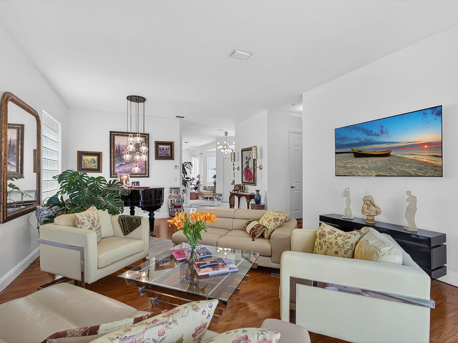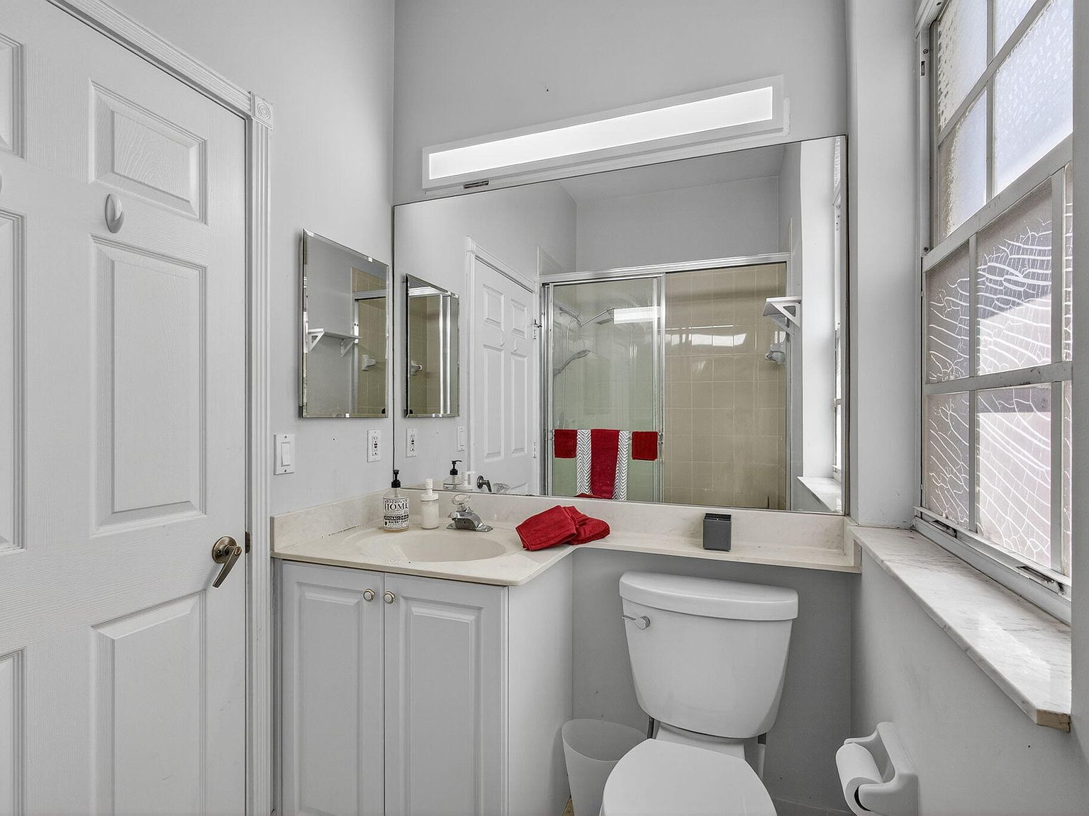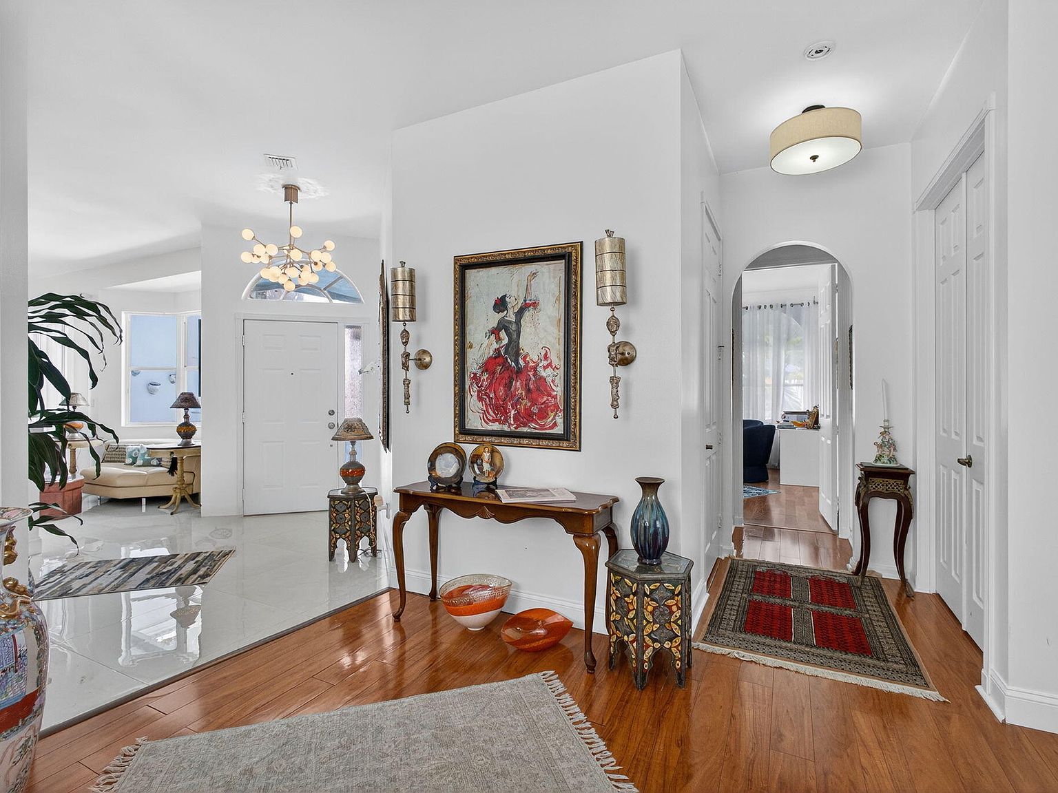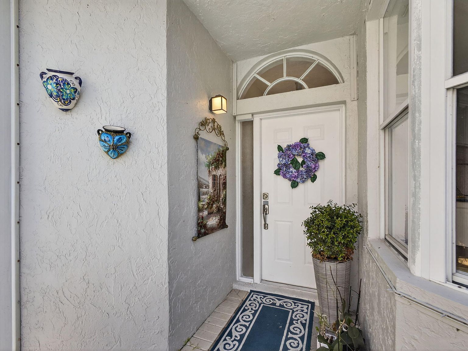 Rarely available single-story courtyard home perfectly situated on a private golf course lot! Experience the best of South Florida living with this distinctive floor plan, where the heart of the home opens to a private courtyard and sparkling pool surrounded by lush tropical landscaping. Start your mornings with coffee overlooking the tranquil fairways or unwind poolside in total privacy. The main residence boasts 2 bedrooms and 2 bathrooms, filled with natural light and highlighted by wood and tile flooring (no carpet!) The open airy design seamlessly blends indoor comfort with picturesque golf course views, creating a home that is both inviting and unique. The kitchen has been tastefully updated with plenty of cabinetry, Corian countertops, and an oversized stainless steel Kitchen Aid refrigerator - ideal for everyday cooking or hosting family and friends. A cozy breakfast nook with bay window, light-filled dining area, and spacious living room with sliders to the outdoor patio make the home feel open and welcoming. The primary suite is a relaxing retreat with 2 closets, direct access to the pool and a large bathroom featuring dual vanities, a Roman tub and separate shower. A comfortable guest bedroom and updated bath with a frameless glass tile shower complete the main home's generous living space.