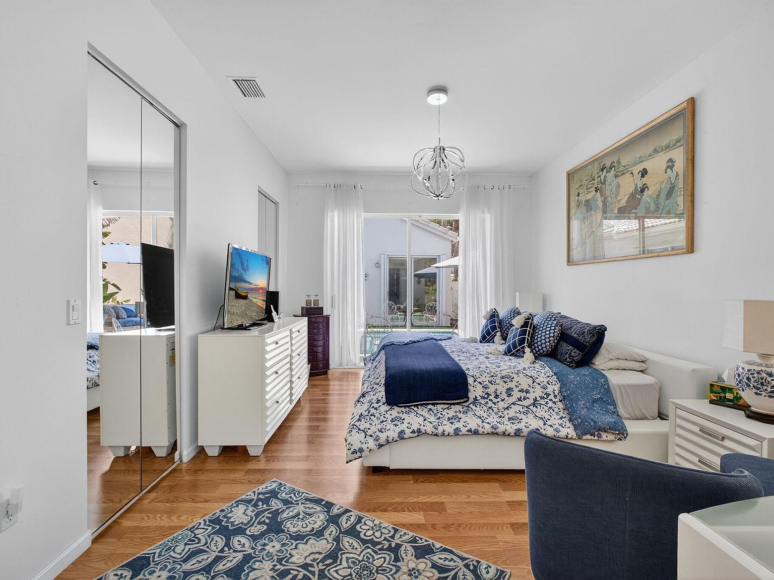 The charming guest house offers a private retreat with 1 bedroom, 1 full bath, its own entrance, and sliders leading to the pool - perfect for in-laws, teens, guests, or even a home office. The peaceful back and side yards are finished with low-maintenance artificial grass and provide plenty of room for seating and entertaining. All of this comes fully fenced and ideally positioned along the 1st hole of the Lakes Course at Bear Lakes Country Club, offering serene views and a rare opportunity to own such a distinctive layout. This unique courtyard floor plan rarely comes on the market - don't miss your chance to call it come!