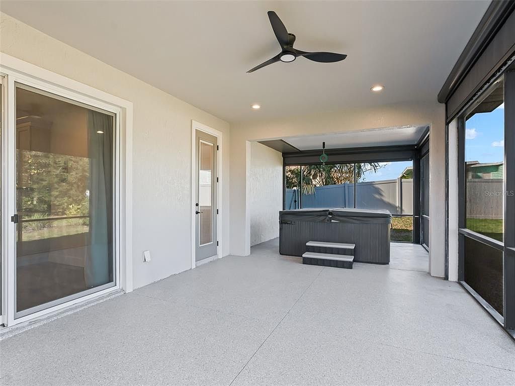 BETTER THAN NEW, 2022 PRIVATE SETTING, Featuring ELEGANT upgrades in a FAMILY friendly, GATED, GOLF COURSE community! This home is STUNNING with beautiful, exterior decorated, STONE ACCENT WALLS and is a MUST SEE! 3 Bedrooms, 2 Bathrooms plus a Den/Office. It is Immaculate, in LIKE NEW condition with an OPEN and BRIGHT concept and split bedroom floorplan. It boasts thoughtful upgrades and tasteful design. Crown molding frames the main living area, while the GORGEOUS KITCHEN showcases shaker-style, soft close cabinetry with an abundance of large drawers, a walk in PANTRY, SS Appliances, (New Microwave 2024) extended breakfast bar, and a charming dinette area. The main Dining room also offers CROWN MOLDING and is large enough to host holiday meals and entertaining! The primary ensuite is private and inviting. It features an elevated, TRAY CEILING framed with CROWN MOLDING and two spacious walk-in closets! The adjoining bath is amazing with separate dual Raised Vanities, granite tops, private commode closet and a large WALK IN SHOWER which has one piece Wilson Art Solid Surface flooring for maintenance free care ( No Grout Joints ) The second and third bedrooms located on the opposite side of the home share a hall bath that offers access to the Lanai. (perfect for a future pool bath) The 7-person SPA is located on the expanded Lanai which has been completely upgraded by the owners. Enjoy the convenience of remote-control blinds providing privacy while relaxing in the high-tech spa with Bluetooth speakers, fountain feature and so much more! It really is a resort worthy experience and setting! The laundry room is a wonderful size and has a raised vanity with granite top and large utility sink for hand washables. Just off this room is a "dream" storage closet! The two-car garage offers an oversized 18x8 garage door with opener and keypad. The floor is epoxy for easy maintenance. There is a side utility exit door also. A few additional features are: Spray Foam R21 insulated ceilings for energy efficiency, 8" Masonry construction with foam injected insulated R13 Exterior Walls, Carrier High efficiency HVAC system with Humidity control, a 60 amp CHARGING STATION FOR ELECTRIC CARS! This is truly a move in ready home located in a gated, family, golf friendly community located minutes from The Villages, Shopping and Restaurants!