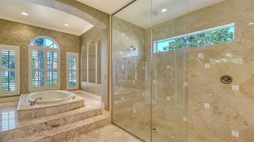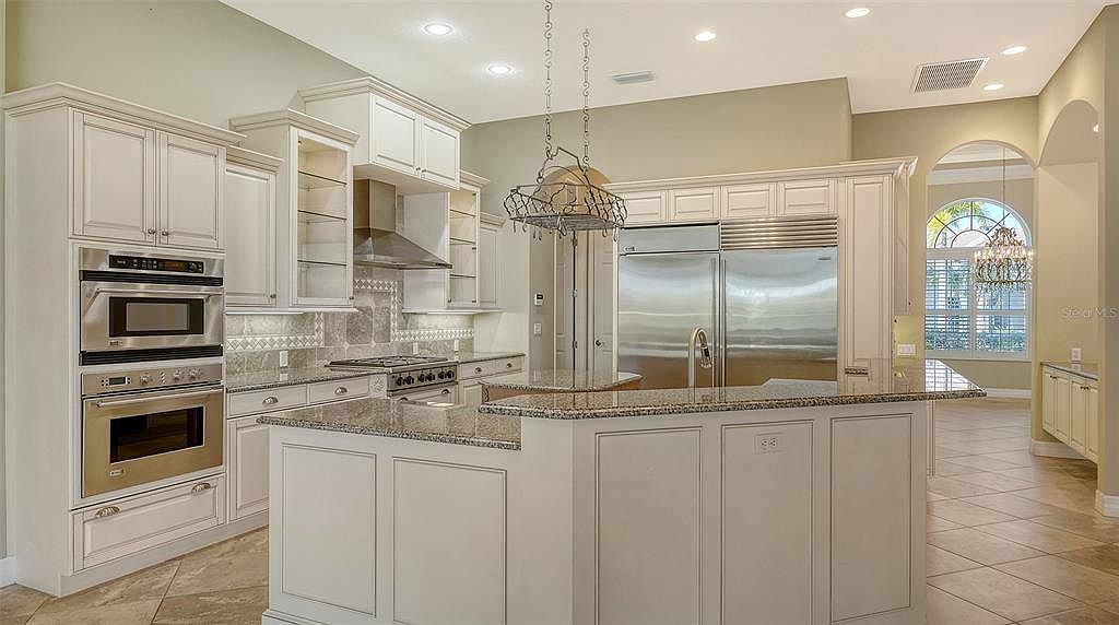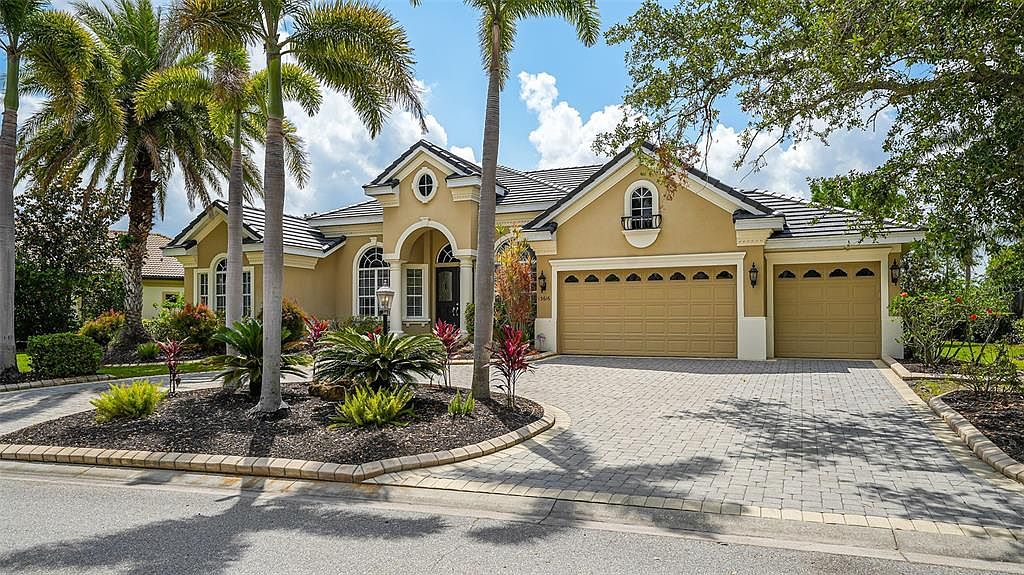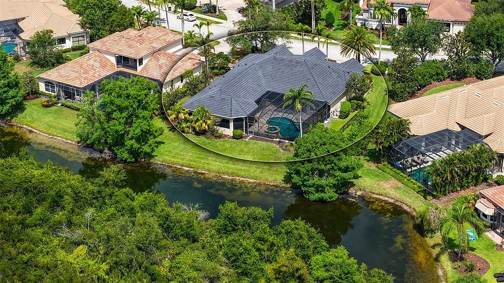 Brand new beautiful flat tile roof has been installed (May 2025). In the sought-after Legends Walk neighborhood of the prestigious Lakewood Ranch Golf and Country Club, this former Peregrine model home offers just under 3,800 square feet of casual elegance and provides the ideal country club and Lakewood Ranch lifestyle. The Neo-Classical style elevation with its lush landscaping and a brick paver circular driveway provides a welcoming curb appeal. Upon entering its bright, open and spacious Hampton floor plan with soaring ceilings, you are immediately captured by its charm. This gem offers three bedrooms, three full and one half-bath, a three-car 23-by-28-foot garage, an office/study that boasts built-in book shelves and a desk, a bonus/flex room in the rear of the home affording serene lake and preserve views, a formal living room with a granite and stone-facing fireplace, a formal dining room, a family gathering room in the heart of the home with tall sliders opening to the pool for inside and outside blending, and a gourmet chef's delight kitchen with maple raised panel white cabinets, a 36-inch Sub-Zero refrigerator and 36-inch freezer, a double wall oven with Advantium convection, conventional and microwave cooking options, a walk-in pantry, stainless steel appliances and a distinctive center island with 1.25-inch neutral granite counter tops. Accents throughout the home include 20-by-20-inch porcelain tiles, custom wood flooring in the bonus room and the office, wood flooring in the bedrooms, detailed architectural appointments, crown molding, plantation shutters, designer lighting fixtures, decorative ceiling fans and high ceilings with even higher tray ceilings making the rooms feel even larger. Other features include a new water heater in 2024, two air-conditioning units with one replaced in 2022, a wet bar between the kitchen and dining room with glass display cabinetry and a wine refrigerator, a fenced dog run, tall sliders which provide seamless access to the expansive outdoor private retreat that offers a heated pool and spa, a built-in GE Monogram grill, a stone fireplace, and extensive open and undercover spaces all overlooking a private and peaceful lake with a preserve setting behind it. The owner’s retreat has its private wing with a door to the lanai, two California customized walk-in closets, dual sinks, and features a luxurious spa-like bath with an opulent Roman tub area with a marble deck. Lakewood Ranch Golf and Country Club offers non-mandatory memberships at different amenity levels including four 18-hole championship courses, tennis, pickleball, fine and casual dining, two restaurants, a clubhouse, fitness center and lap pool. Close to shopping, restaurants, public golfing, cultural venues of Sarasota and its award-winning beaches. This home is a must-see!