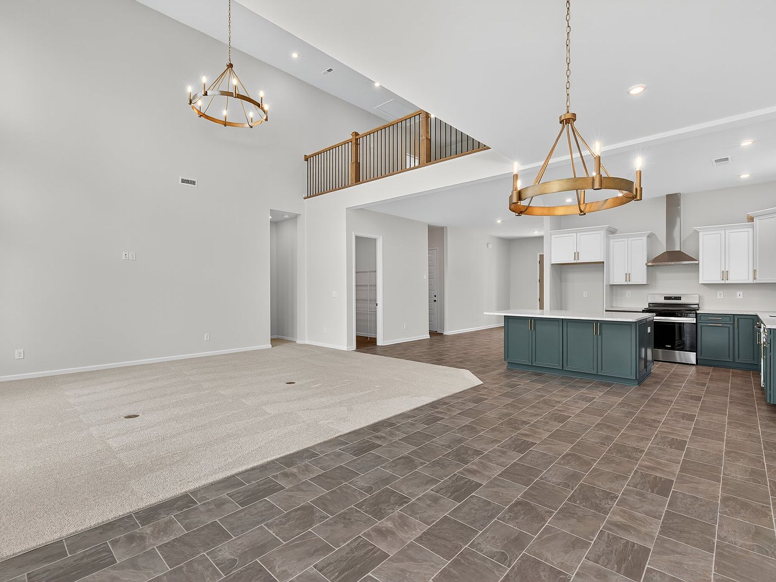 The Savannah features an open floorplan with a 1.5-story Family Room and vaulted ceiling along with a first-floor Owner's Suite. Inside the Foyer, there is a Study and stairs to the second floor. The hallway leads to the main living space with Kitchen, Dining Area, and Family Room. The Kitchen features an eat-in island and double-door closet. The Entry Area off the Kitchen has a double-door closet, Powder Room, and access to the 2-car Garage. The first-floor Owner's Suite has a spacious bathroom and large walk-in closet. The Laundry Room is conveniently located across from the Owner's Suite on the first floor. Upstairs, there is a Loft overlooking the Family Room below, 3 additional bedrooms with walk-in closet, a large linen closet, and full bathroom.