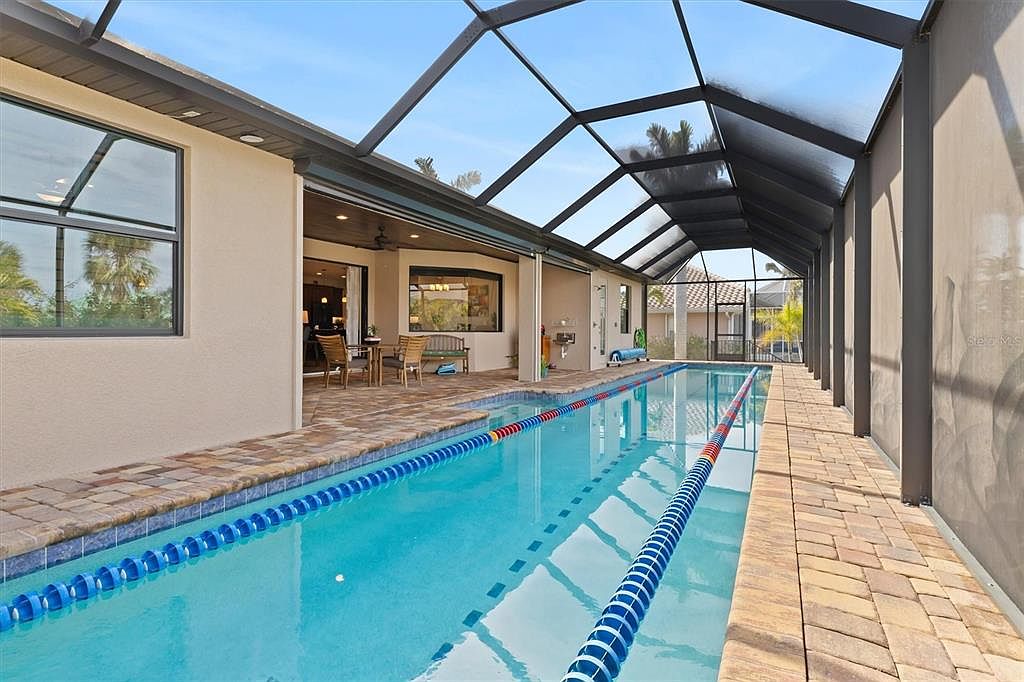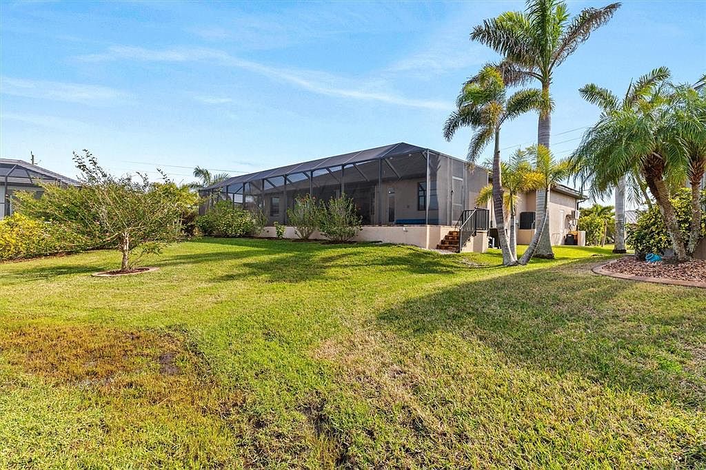 Discover the perfect blend of luxury, comfort, and Florida living in this custom-built 3-bedroom, 3-bathroom, 3-car garage pool home with an office, ideally situated in the sought-after Punta Gorda Isles community. Overlooking the 14th hole of St. Andrew’s Golf Course, this home sits on an oversized corner lot, offering breathtaking views and a peaceful ambiance. The home entrance is located off Suzi St., though it carries a Bal Harbor Blvd. address. A brick-paved, expanded 30-foot driveway leads to a 3-car garage, designed to city maximum limits with a 24-foot width through the covert and right-of-way. Lush landscaping, highlighted by numerous trees and bushes beyond the builder’s original city requirements, is beautifully enhanced with paver-surrounded garden beds finished with 1-1/2” brown and red stone. Landscape lighting in the front yard adds to the home's striking curb appeal. Inside, the thoughtfully designed layout features an expansive great room with double tray ceilings, wood-grain tile flooring, and a wall of sliders that open to the lanai, creating an effortless connection between indoor and outdoor spaces. The gourmet kitchen is a chef’s dream, complete with granite countertops, solid wood cabinetry with crown molding, a center island with prep sink and storage, high-end stainless steel appliances, and a cozy breakfast nook offering stunning golf course and backyard views through a panoramic window. A formal dining room provides the perfect space for entertaining, while the dedicated office/den offers a private retreat. The primary suite is a peaceful escape, featuring tray ceilings with crown molding, custom walk-in closets, plush carpeting, and private access to the pool area. The en-suite bath is elegantly designed with dual granite-topped vanities and a spacious Roman-style walk-in shower. Guests will appreciate two well-appointed bedrooms and two additional bathrooms, one with direct pool access. Step outside to an incredible outdoor living space featuring a 60-foot heated saltwater lap pool with custom tile and marked measurement lines for serious swimmers. A large Hayward pool heat pump ensures year-round comfort. The lanai is finished with a stunning wood ceiling and includes a convenient outdoor sink. An additional water faucet in the backyard adds ease for gardening and maintenance. The 3-car garage is designed for function and comfort, featuring an epoxy-coated floor, insulated ceiling, and a dedicated split A/C unit for climate control. A whole-house solar system helps maintain a lower energy bill. For added convenience, a 12,500-watt portable generator is connected via an outdoor outlet to the main electrical panel (available for purchase outside of sale). Located just minutes from Fishermen’s Village, historic downtown Punta Gorda, Charlotte Harbor, and the new Sunseeker Resort, this home is surrounded by top-rated restaurants, boutique shopping, and entertainment. For outdoor enthusiasts, enjoy world-class boating, fishing, sailing, and pristine Gulf beaches, all just a short drive away. Golfers will love the proximity to championship courses, making this home an ideal retreat for those seeking the ultimate Florida lifestyle.