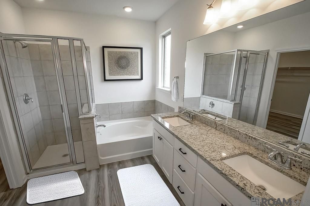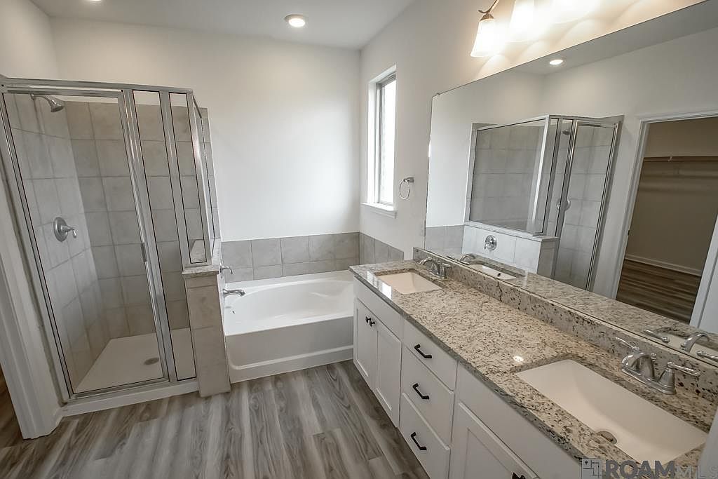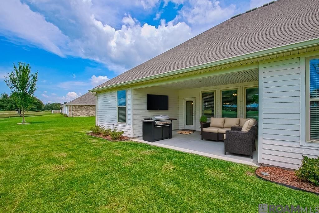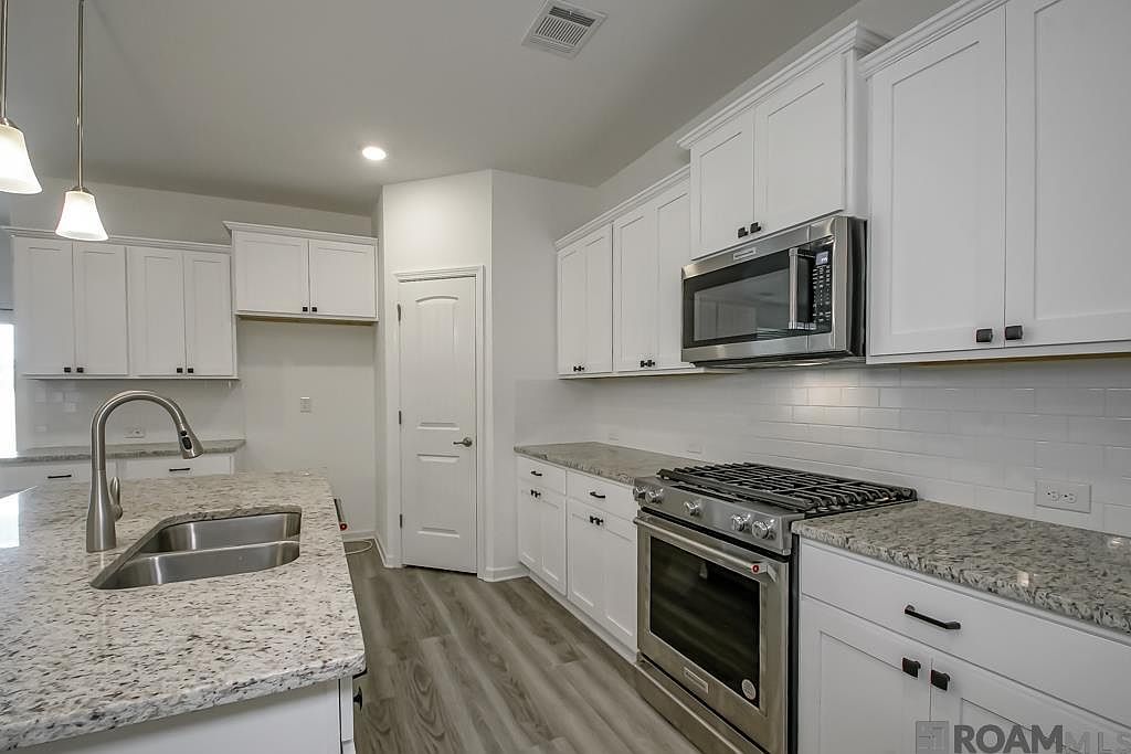 Nestled on the scenic fairways of The Island golf community, this stunning 3-year-old, 2,646 sqft home offers move-in-ready appeal with 5 bedrooms, 3 full baths, and a versatile study/office area. Step inside to wood-like flooring throughout—no carpet—and a spacious kitchen featuring granite counters, a large island, subway tile backsplash, gas range, and ample storage for all your culinary needs! The large primary suite boasts a double vanity, separate tiled shower, and an oversized closet. Beautifully landscaped with gutters, this home is as practical as it is stylish. Enjoy community perks like pool access, a fitness center, pool house, and vibrant events year-round. Don’t miss this chance to live on the golf course! Flood Zone X - no flood insurance required. Schedule a showing today! *Some photos contain virtual staging that is no representative of the furniture in the house.