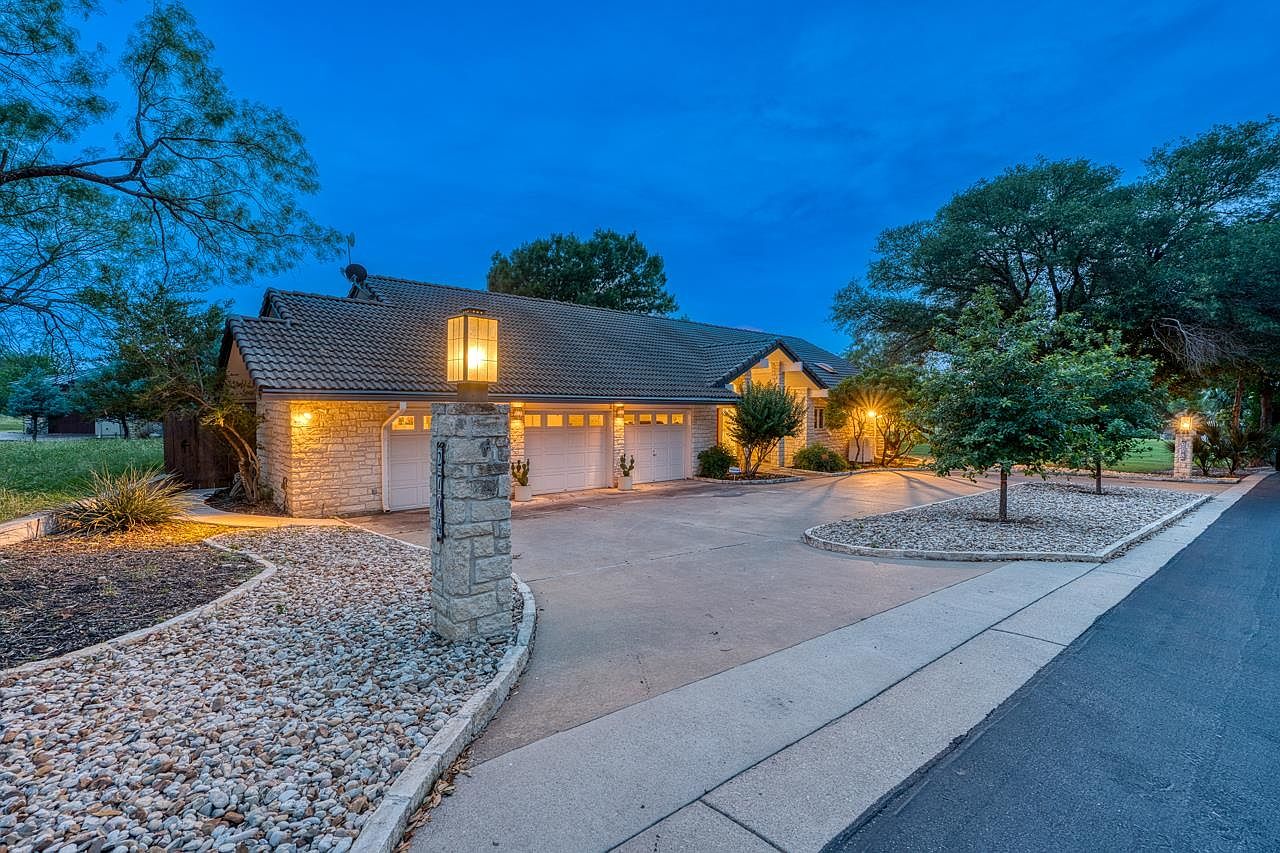 Exquisite and stylishly updated golf course home with enclosed private pool overlooking the 11th green of Horseshoe Bay’s Slick Rock golf course. Resort life enjoyment and entertaining envisioned, this home has fantastic room flow and built around 3 sides of an screen enclosed private pool with windows and doors for beautiful views and easy access. Dream kitchen with island, double oven, gas cooktop, newer microwave, dishwasher, and refrigerator. The adjoining quaint breakfast area with built in cabinets looking out to the patio and golf course. Relish the expansive living area featuring a vaulted ceiling, built-in bookcase wall, floor to ceiling stone gas fireplace, walk-in wet bar with refrigerator, open access to the dining room and extra sitting area or workspace next to the primary suite, all with views of pool and golf course. Relax in the spacious primary suite with bed and sofa, tv and double doors leading to the patio and view of the 11th green. The ensuite bath entails a large shower, spa tub and walk-in closet with built-ins, and private door to the pool area. You’ll love the oversized 2 car garage and golf cart storage area plus the included 2022 EZGO Elite lithium battery golf cart. Home has lots of storage space. Meticulously maintained, this home is being offered mostly furnished with exception of art, books, and some personal items. Horseshoe Bay Resort amenities available with paid and approved membership.