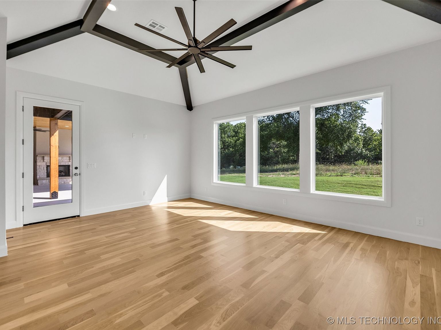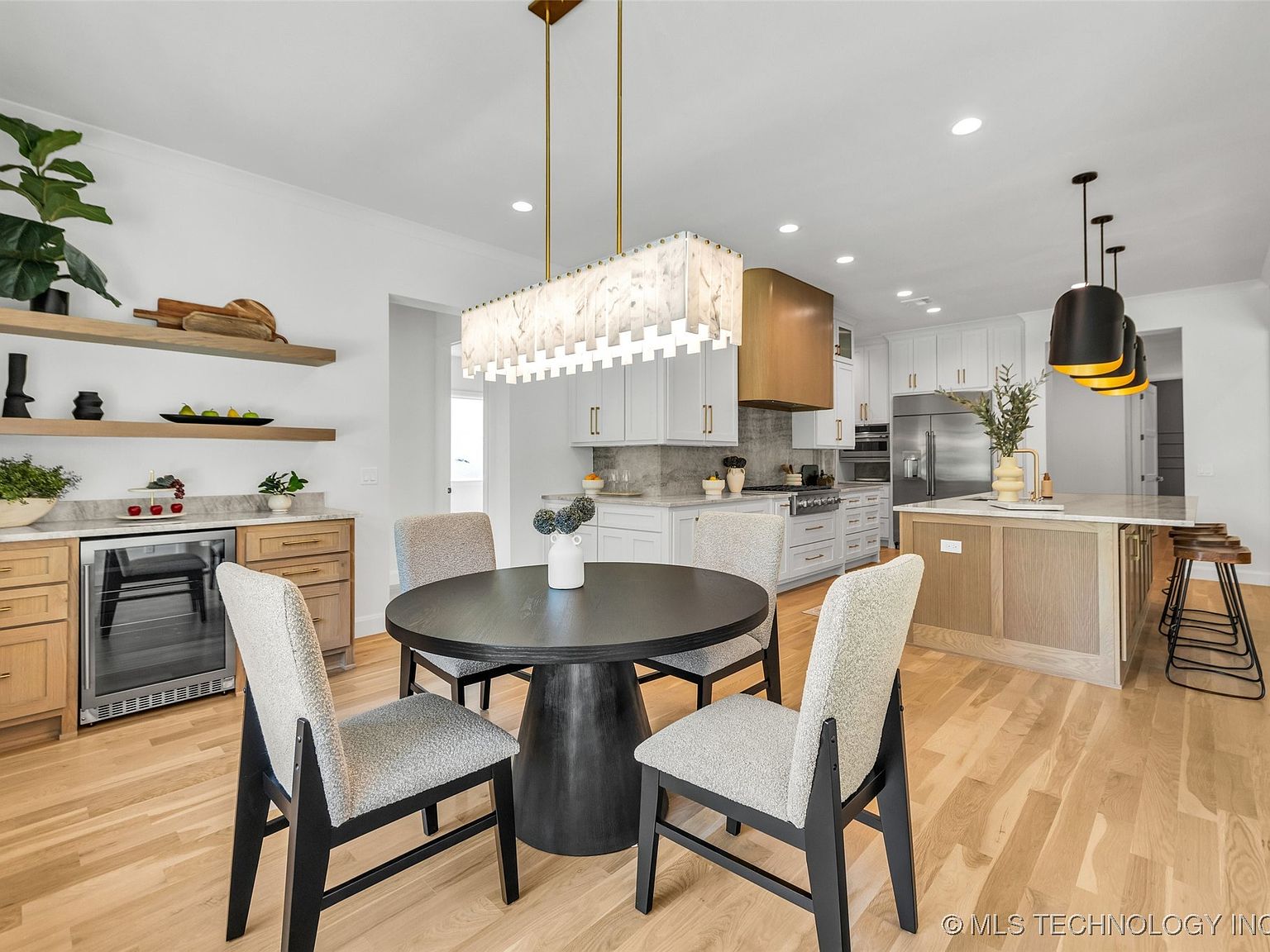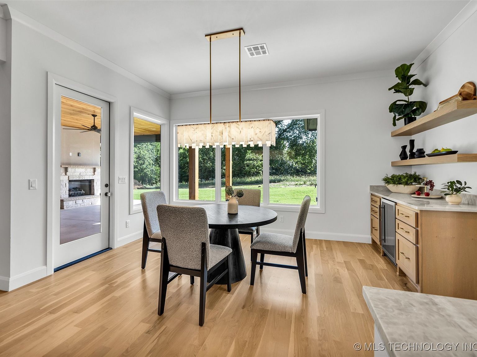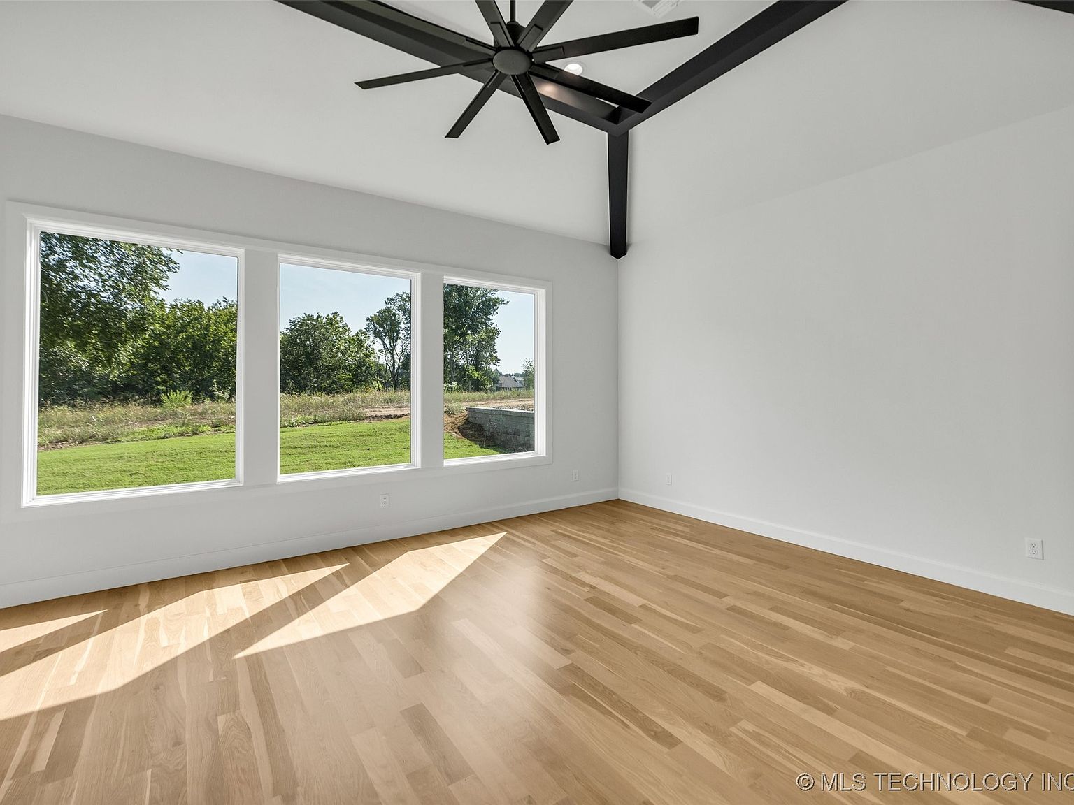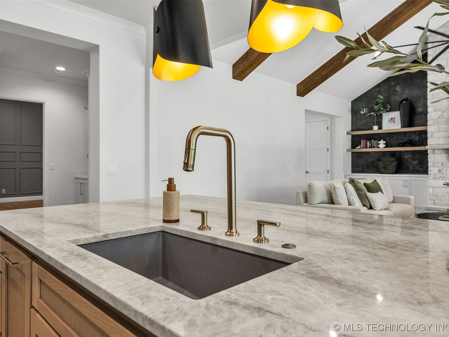 Brand-new golf-course living in Stone Bluff at Forest Ridge. On an 85’x135’ professionally landscaped lot backing the #8 tee box, this 3,779 SF home blends elevated finishes with everyday function: white-oak floors, custom white-oak cabinetry, designer accent walls with beam details, and professional lighting. The chef’s kitchen showcases GE Café appliances, an oversized island, and a true working pantry with sink and secondary refrigerator. Vaulted ceilings and expansive windows capture private course-side views. Flexible plan delivers 5 bedrooms / 4 baths plus spaces for office or media. Host year-round on the oversized covered patio with a second outdoor fireplace. Full spray-foam insulation and a large attic for storage. Minutes to the clubhouse, trails, and Broken Arrow conveniences. Curated for style, storage, and effortless entertaining. Seller is related to Realtor.