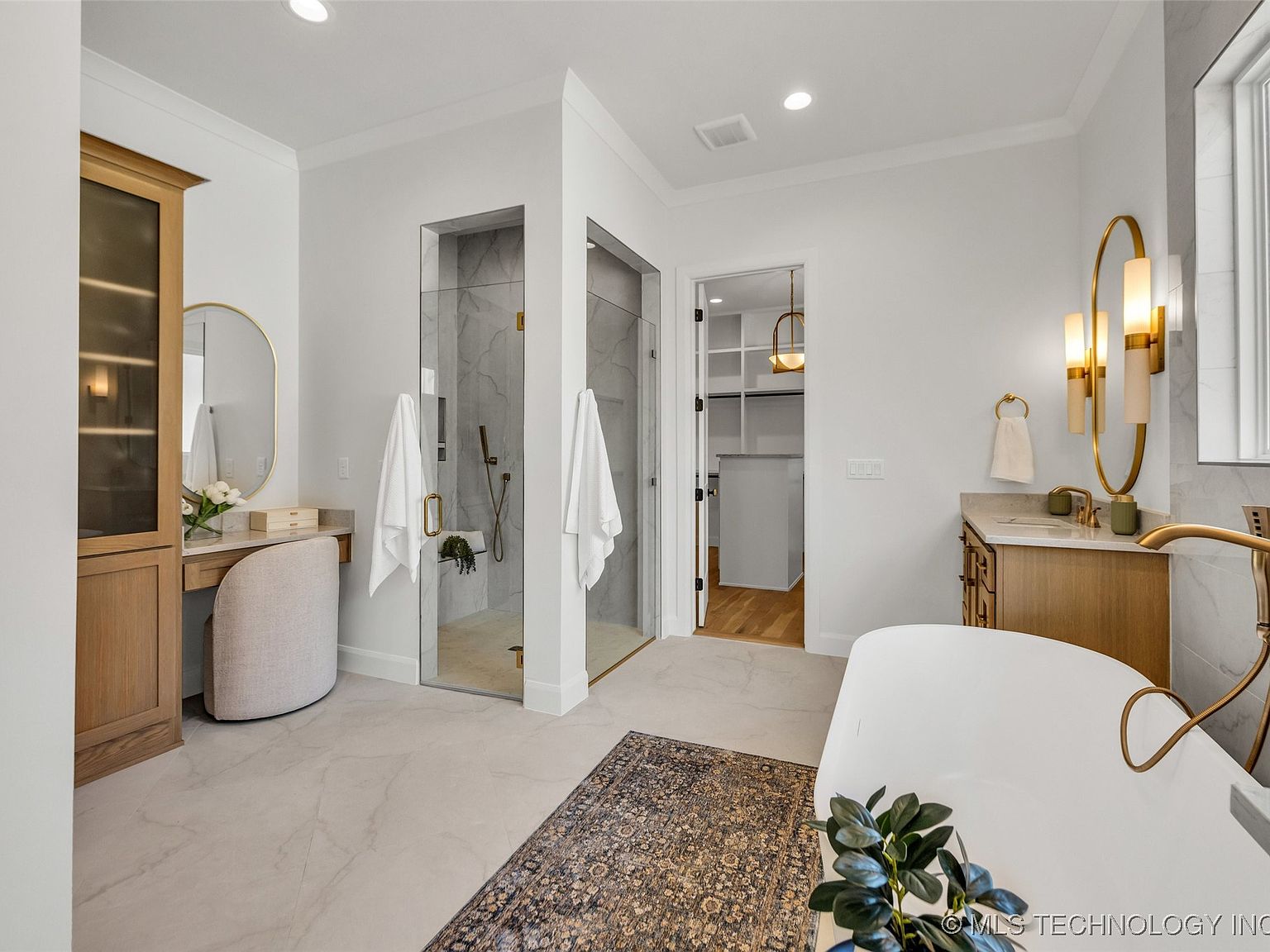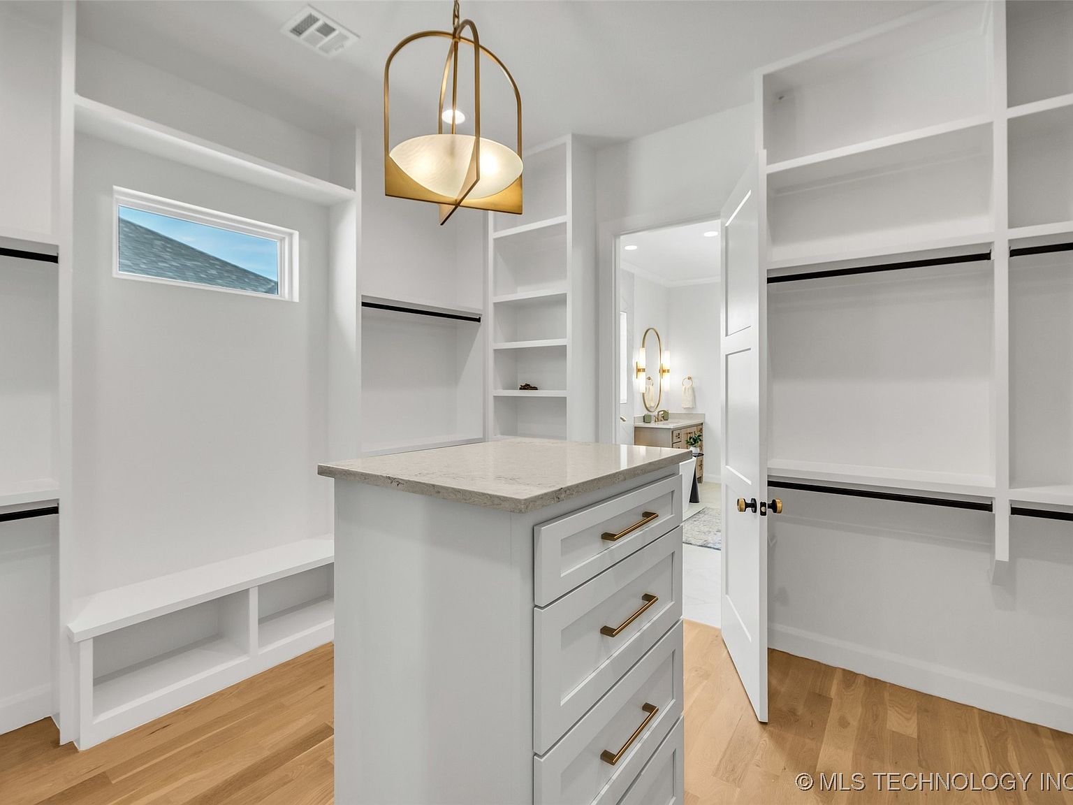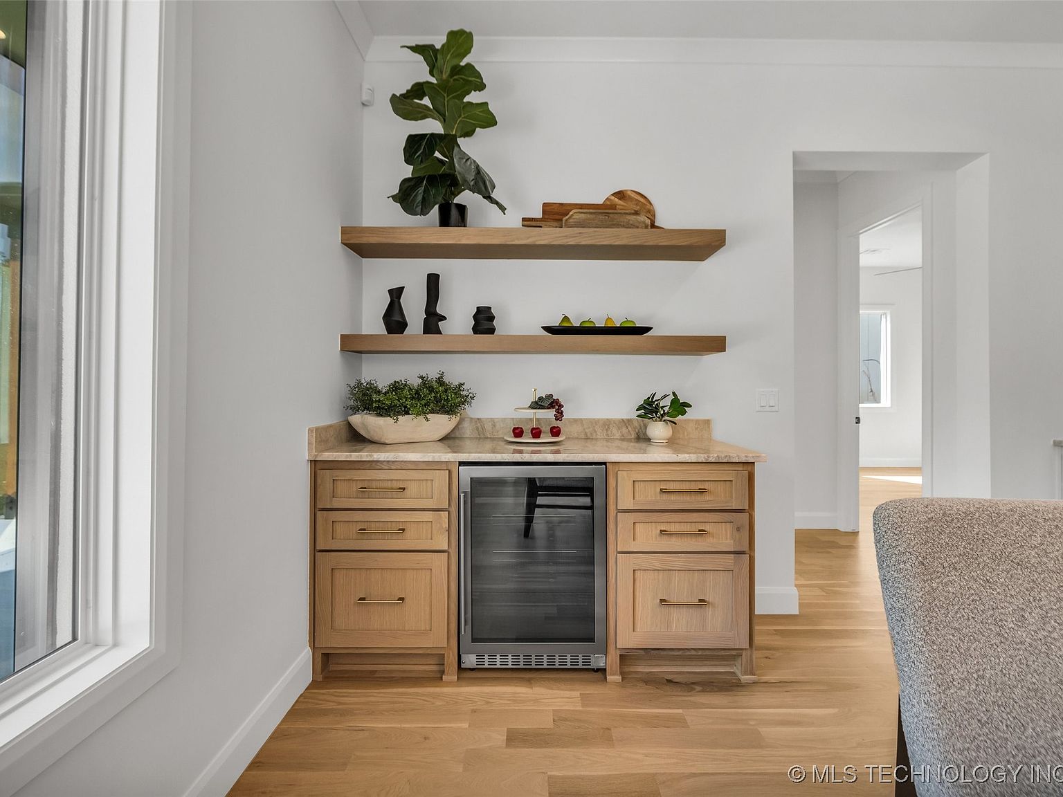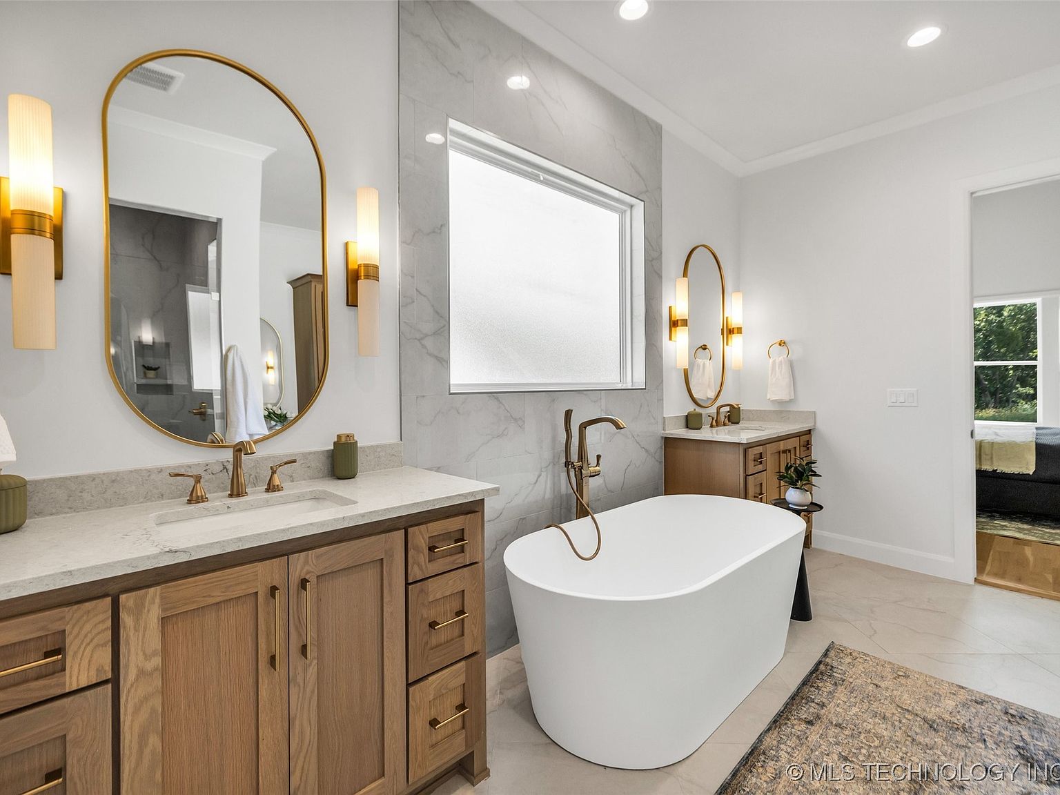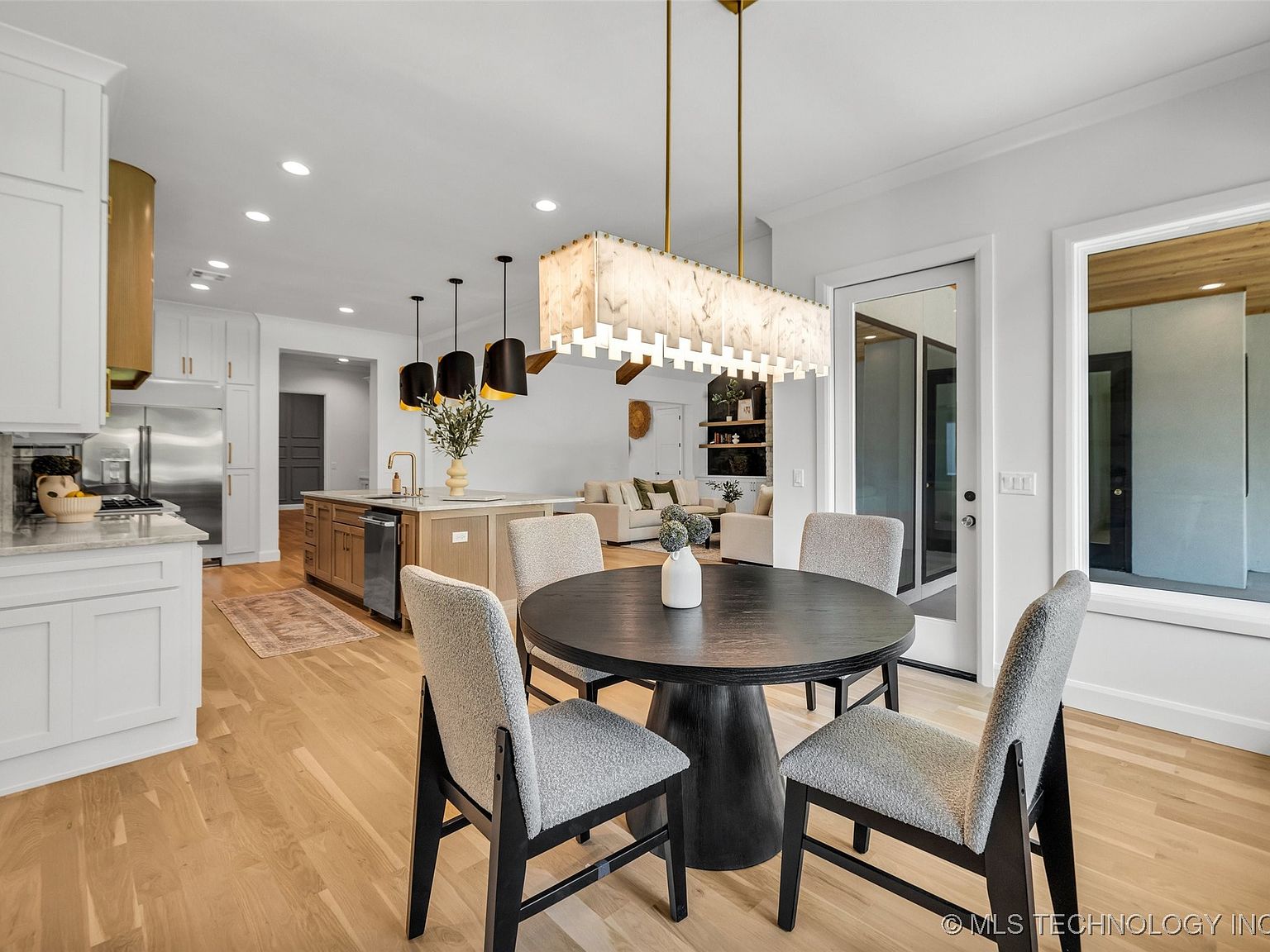 Brand-new golf-course living in Stone Bluff at Forest Ridge. On an 85’x135’ professionally landscaped lot backing the #8 tee box, this 3,779 SF home blends elevated finishes with everyday function: white-oak floors, custom white-oak cabinetry, designer accent walls with beam details, and professional lighting. The chef’s kitchen showcases GE Café appliances, an oversized island, and a true working pantry with sink and secondary refrigerator. Vaulted ceilings and expansive windows capture private course-side views. Flexible plan delivers 5 bedrooms / 4 baths plus spaces for office or media. Host year-round on the oversized covered patio with a second outdoor fireplace. Full spray-foam insulation and a large attic for storage. Minutes to the clubhouse, trails, and Broken Arrow conveniences. Curated for style, storage, and effortless entertaining. Seller is related to Realtor.