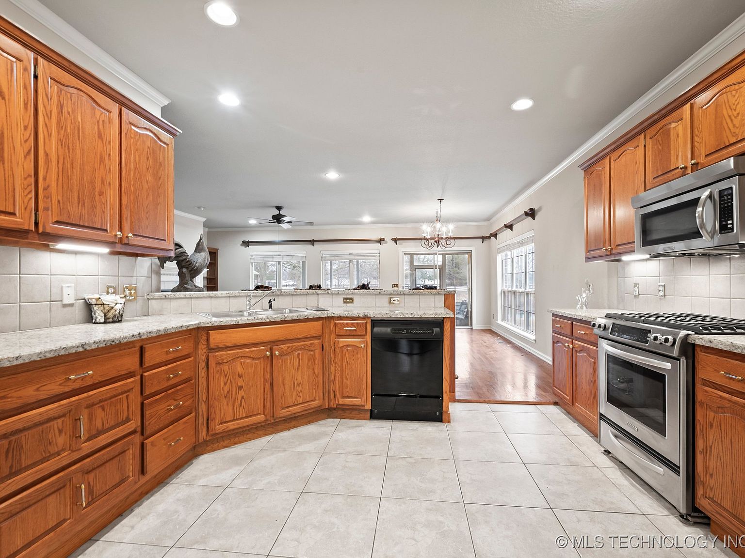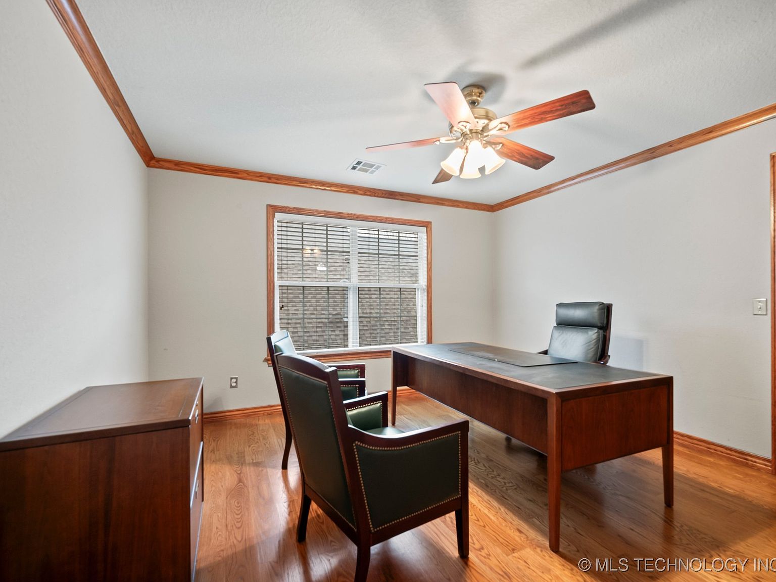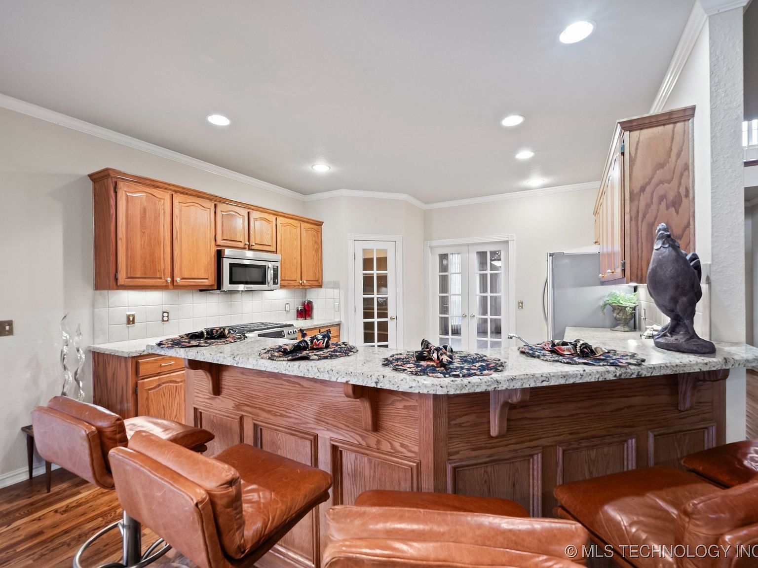 Entertain in Style with 3 Spacious Living Areas. Open kitchen has granite countertops and breakfast bar with custom bar stools. The formal living room has high ceiling with grand bay window & custom crown molding. Recently refinished hardwood floors downstairs throughout, except carpeting in the bedrooms. The master suite includes a Jacuzzi tub and separate walk in shower. The 4th bedroom upstairs has wood flooring and a private library loft. making it ideal for home office or space for physical fitness. The game room is large enough for a pool table. The laundry room has a stainless steel sink and the garage is insulated. There is a spacious enclosed patio that provides a peaceful and picturesque setting of the pond. Recent updates include New Kitchen Aid Refrigerator Summer of 2023, New Dishwasher with 10 year warranty March of 2025, New Thermostat February 2025, and New downstairs AC November 2024. One of Best Locations in Forest Ridge because it is within walking distance to The Ridge Country Club with large pool, tennis courts and The Ranch House Restaurant as well. Additionally there are several miles of walking/jogging trails throughout this Master Planned Award Winning Private Community.