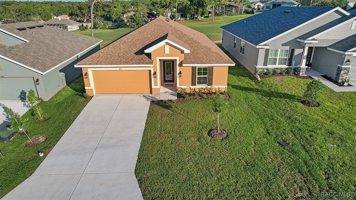 Builder Blowout – Limited Time. Enjoy lasting golf course views from this thoughtfully designed 3-bedroom, 2-bath home with 1,512 square feet of easy, open living. The north-facing front door keeps the entry cool and shaded, while the south-facing lanai welcomes in soft afternoon light and overlooks the fairway from an elevated position. Situated on a golf course lot with no fencing allowed, the backyard remains open to nature, with an established neighboring community beyond the course—offering permanent, unobstructed views. With a smart layout and 2-car garage, this home blends comfort, sunlight, and scenery in a low-maintenance package. Text listing agent for more information.