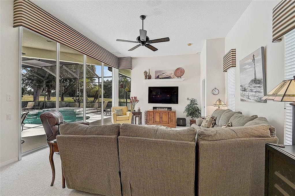 BRAND NEW ROOF being completed by the end of the month on this 4 bedroom 3.5 bathroom golf course home in Calusa Lakes Nokomis FL. Nestled on the 11th fairway of the Calusa Lakes Golf Course in Nokomis Florida this 2996 square foot residence blends luxury and comfort with an open concept floor plan featuring high ceilings and oversized sliders framing sunlit pool and golf course views. The chef inspired kitchen with butlers pantry flows to expansive entertaining areas while a central vacuum system simplifies upkeep and a circular driveway welcomes guests to the elegant entrance. Four spacious bedrooms include a primary suite with Roman shower and second primary with en suite bath ideal for guests or in law suite plus a three car garage with one stall sized for a golf cart or smart car. Residents enjoy exclusive access to the 18 hole championship golf course pristine Nokomis beaches Oscar Scherer State Park and the vibrant shopping dining and cultural scenes of nearby Venice and Sarasota. Schedule your private showing today this gem wont last in todays market. BE SURE TO VIEW THE 3D WALKTHROUGH AND AERIAL TOURS.