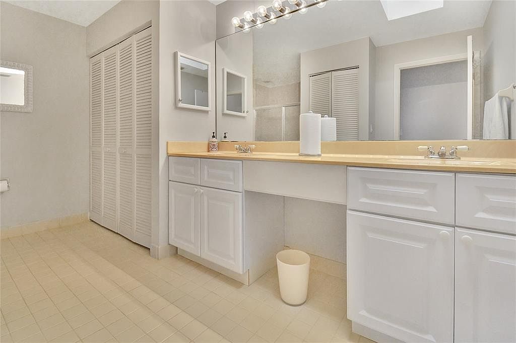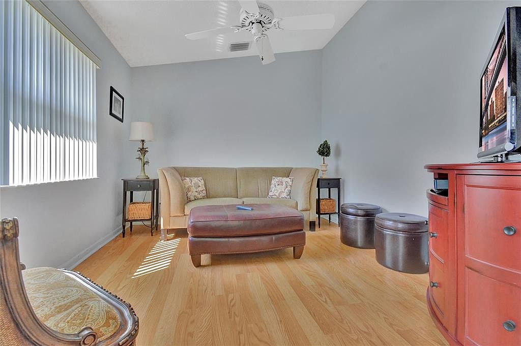 55+ Community - Discover this beautifully maintained 3-bedroom, 2-bath Lakeridge home, where comfort meets connection. Vaulted ceilings and a skylight fill the open layout with natural light, illuminating warm laminate floors throughout. The kitchen shines with sleek black lacquer countertops, double stainless sink, Frigidaire appliances, and abundant cabinetry. The spacious primary suite offers private patio access, dual vanities, and a generous walk-in closet. Relax on the screened, covered patio overlooking lush garden views. Additional features include a 1-car garage, 2022 A/C, 2018 roof, and low $295 HOA covering cable, lawn, and exterior care. Minutes to beaches, shopping, and dining — a serene retreat with timeless Florida charm.